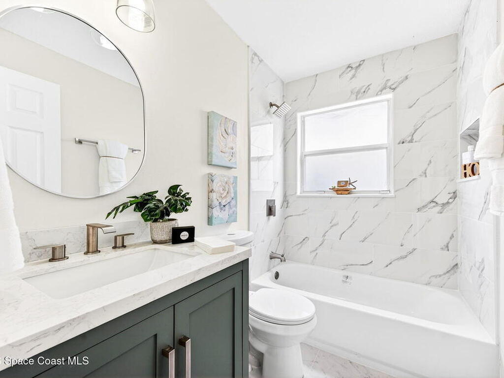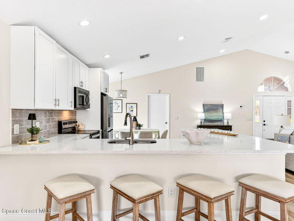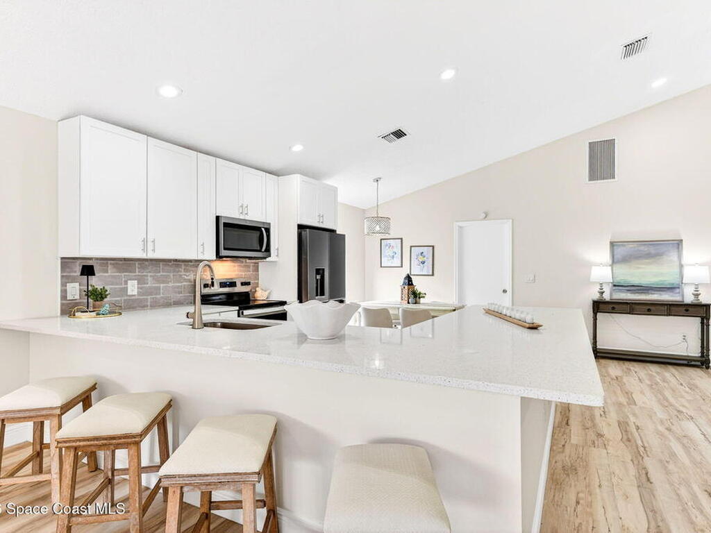 FULLY UPDATED & MOVE IN READY! This beautifully renovated concrete block home delivers style, comfort and peace of mind from the moment you arrive. Featuring a brand NEW roof, NEW AC and NEW water heater! The OPEN floor plan flows into a spacious NEW kitchen with generous QUARTZ counter space and cabinetry, perfect for everyday living and entertaining. Relax in the stunning primary bath or enjoy a quiet night on the back covered patio. Located in the welcoming Pebble Creek community, with sidewalks, a two-car garage and extended driveway. UNBEATABLE LOCATION - close to stores, restaurants, only 15 min from our amazing BEACHES. See it in person - it only gets better!