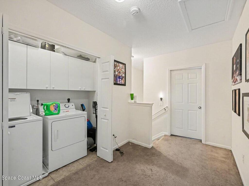 Beautifully maintained townhome in the desirable gated community of Villas of Lake Washington in Melbourne. The main level features an open-concept living and dining area with tile flooring, a kitchen with granite countertops, breakfast bar, and lots cabinet space, plus a convenient half bath downstairs. Upstairs you'll find all bedrooms together with the laundry on the same level, and a comfortable primary suite with walk-in closet. Step outside to a low-maintenance outdoor space with a peaceful view toward the wooded area across the road, perfect for relaxing and enjoying a bit of privacy. Residents enjoy community amenities including a pool, playground, and gated entry. The HOA covers exterior maintenance, roof, lawn care, plus cable and internet, making this a true lock-and-leave lifestyle. The home is currently tenant-occupied through the end of April, making it a great option for an investor seeking a low-maintenance rental, while also offering flexibility for an owner-occupant.