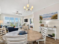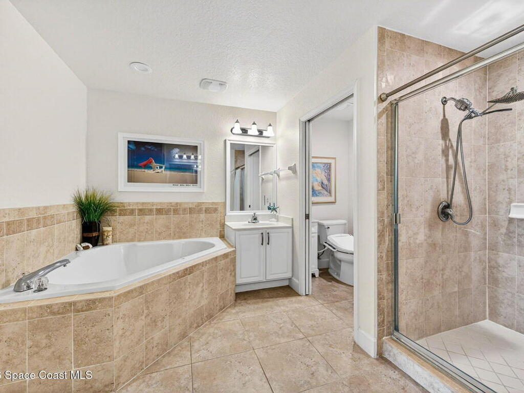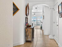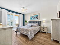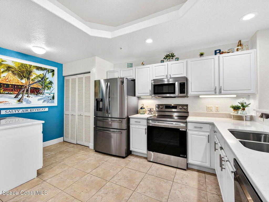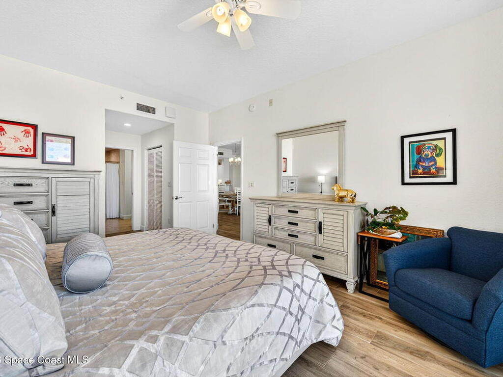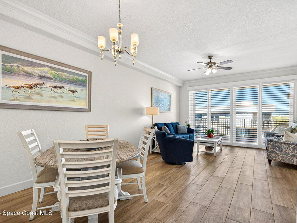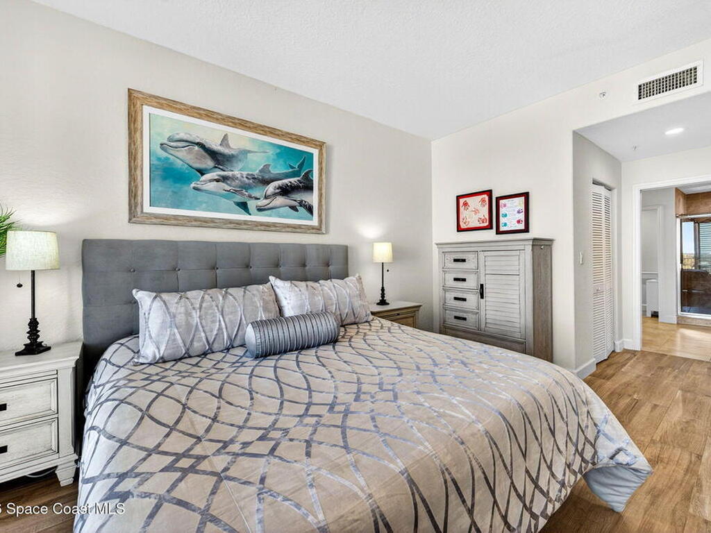 5th FLOOR--Top-floor BEACHFRONT living at Mystic Vistas with DIRECT CRUISE SHIP and ROCKET LAUNCH VIEWS! This light-filled condo features soaring ceilings, open floor plan, and tile throughout. Expansive sliders lead to a private north-facing balcony with stunning views. The kitchen offers quartz countertops, modern appliances, island, and breakfast bar. The primary suite includes dual walk-in closets and a spa style bath with soaking tub. A secondary bedroom with ensuite provides guest privacy, while the third bedroom offers flexible space for office or guests. Laundry room, ample storage, and storm shutters add convenience. HVAC 2026; Tankless Water Heater 2023 and energy efficient windows. Gated community amenities include secure lobby, garage parking, four heated pools, fitness center, tennis, racquetball and private beach access. Recent updates: paint, elevators, lobby flooring, and roof. Close to Port Canaveral, Jetty Park, Beaches, and Orlando attractions. Schedule your showing!