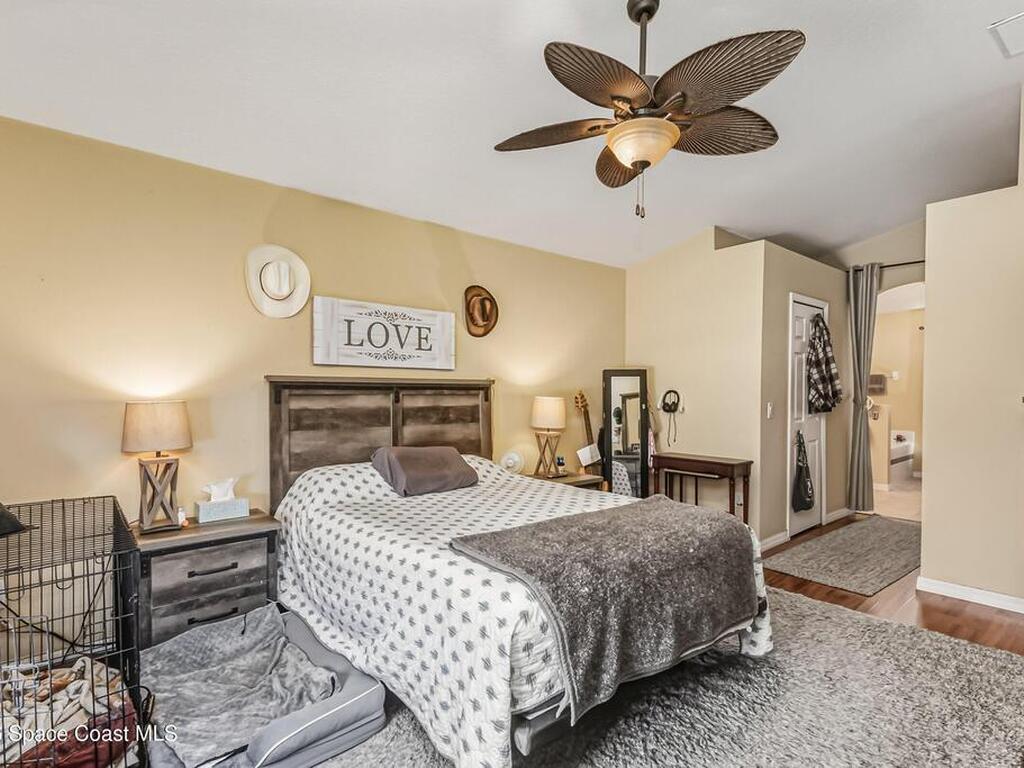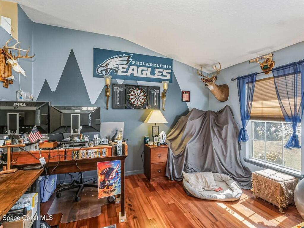 The Ultimate POOL Home Move-In Ready Oasis: New Roof & Prime LocationStop worrying about rising energy costs or future maintenance. This meticulously maintained POOL residence in the heart of SW Palm Bay offers the ultimate peace of mind and modern flair. Situated in a high-growth area surrounded by beautiful new construction, this home allows you to enjoy the benefits of a fresh, developing neighborhood with the added value of a fully established property.The home features a brand-new roof and solar panels that will be paid off in full at closing, allowing you to enjoy near-zero power bills and maximum insurance savings from day one. Inside, the floor plan is designed for both function and style, beautiful exotic wood floors, home is highlighted by a versatile den--perfect for a home office or media room--featuring a stunning, custom-built barn door that serves as a true designer focal point.Step outside to your private backyard retreat an