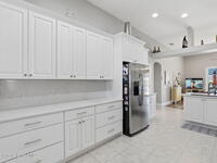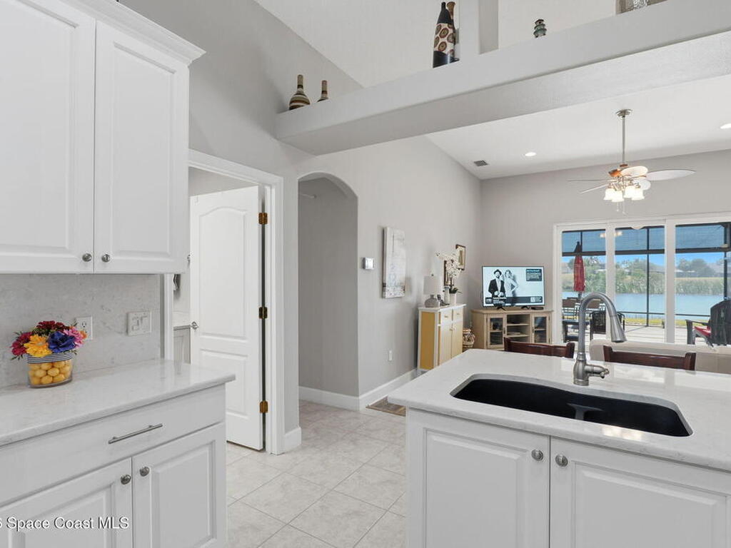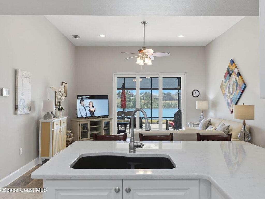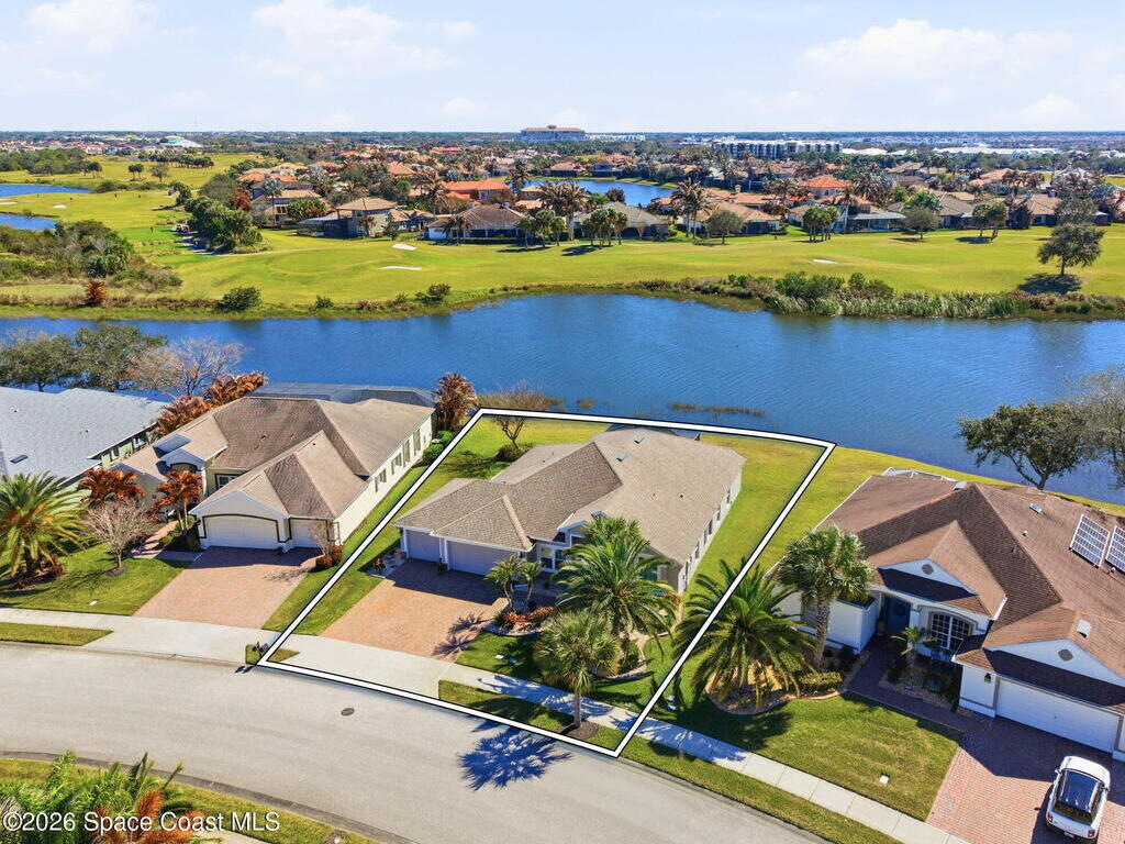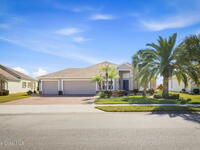 Welcome to this beautifully maintained one of a kind 3-bedroom, 2-bath Estate home located in sought after 55+ Heritage Isle Community. Enjoy serene waterfront and golf course views from your backyard and abundant natural light throughout the home. The updated kitchen and bathrooms feature modern finishes such as quartz countertops, under cabinet lighting and soft close cabinet doors. Tile and laminate flooring throughout home complemented by impact glass windows enhanced with thoughtfully appointed plantation shutters for peace of mind and energy efficiency. Spacious three car garage offers ample storage and convenience. Gain the confidence you deserve with professionally installed hurricane screens, offering quick and convenient storm protection with a touch of a button while enjoying shade and privacy the rest of the year. This home combines comfort, style, and low maintenance living in a prime location perfect for relaxing and entertaining.