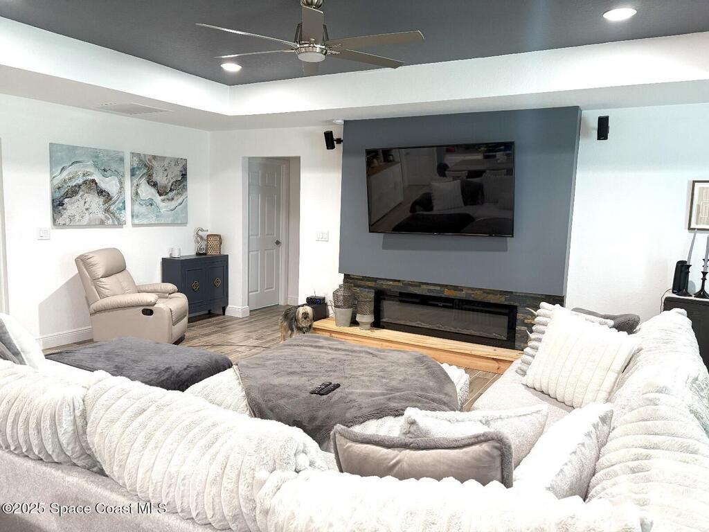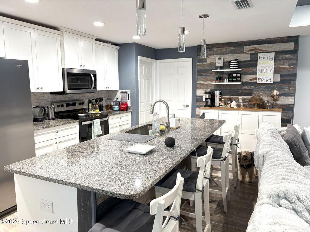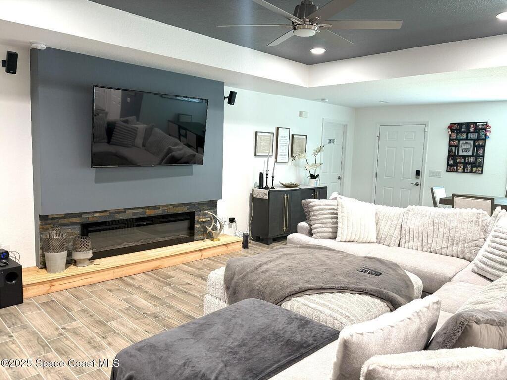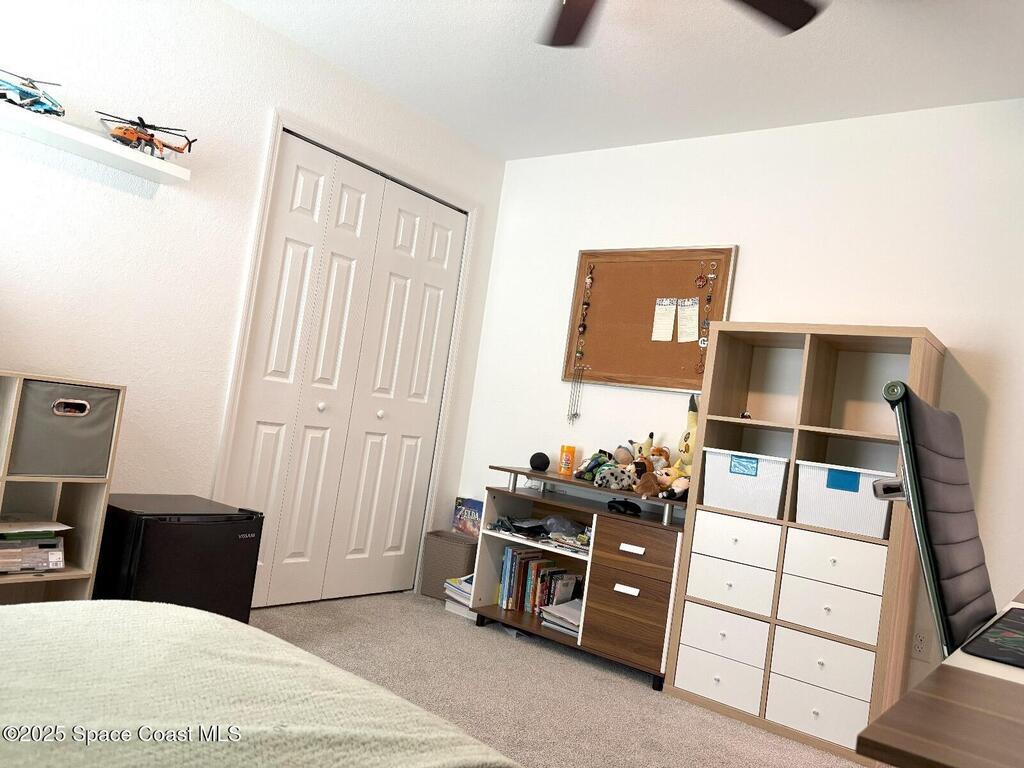 Welcome to this spacious and upgraded residence in SW Palm Bay. This beautiful 2022 home features 5 bedrooms and 2 full bathrooms. The 5th bedroom is smaller but features a built in closet and night stand. The open concept welcomes a gorgeous kitchen with stainless steel appliances and beautiful countertops. The fireplace located in the living room, gives this home the ultimate cozy feel. With double sinks in the main bathroom and custom closets for his and hers, this home is what you've been waiting for. Enjoy this conveniently located home in a quiet neighborhood, close to shoppings, schools, restaurants and mayor highways. Don't wait to come view this beautiful property!