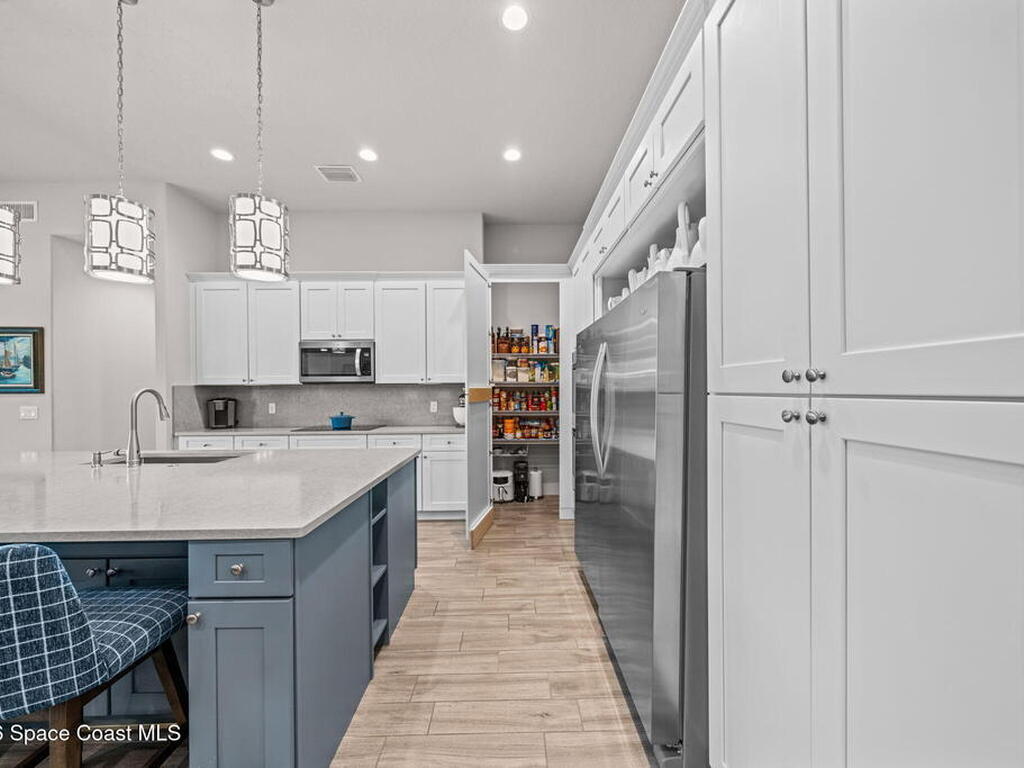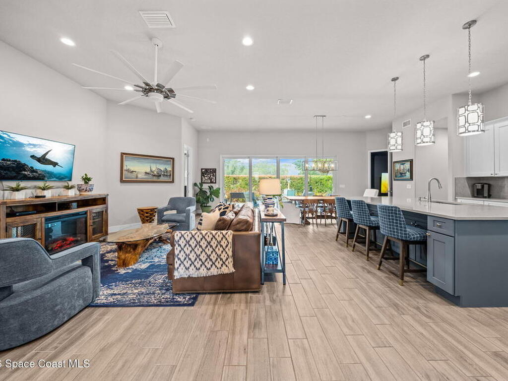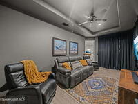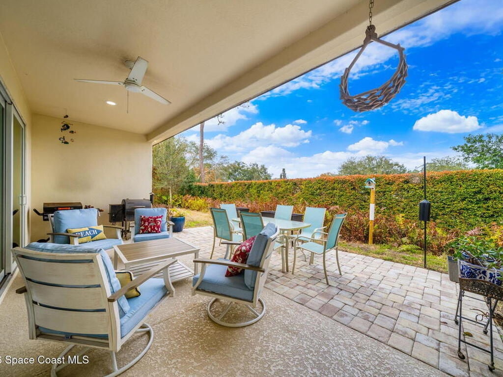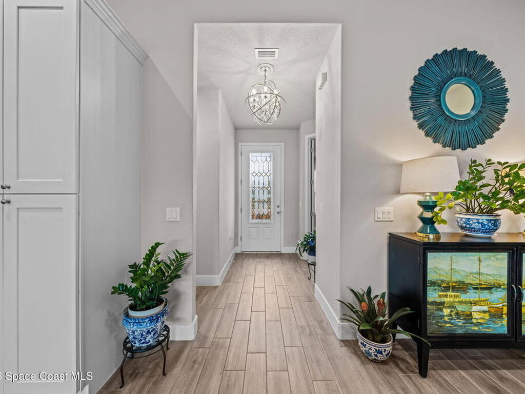 If you're looking for newer construction, thoughtful upgrades, and an unbeatable Space Coast lifestyle, this one has it all. Built in 2021, this meticulously maintained 4-bedroom, 3-bath home with a dedicated office and separate media room and chef's kitchen offers the flexibility today's buyers are searching for. Whether you need space for multigenerational living, a true work-from-home setup, or a private retreat for movie nights, this floor plan delivers. The standout feature? A true three-car garage plus extended paver driveway with designated RV/boat parking, a rare find in a gated community. The expanded pavers not only elevate curb appeal but provide practical space for a third vehicle, recreational toys, or guests. Inside, you'll appreciate impact-rated windows and sliders, providing peace of mind, energy efficiency, and storm protection without the hassle of shutters. High Capacity tankless HWH, closet built-ins, hidden pantry, extended pavers w/Shed, and so much more!