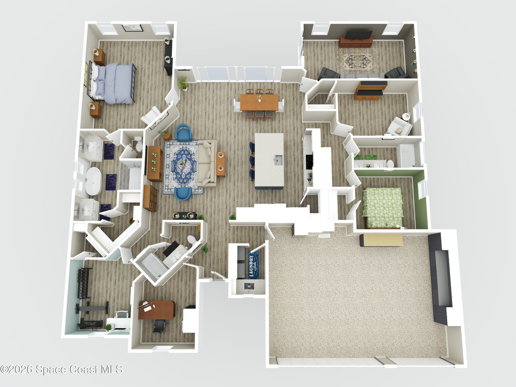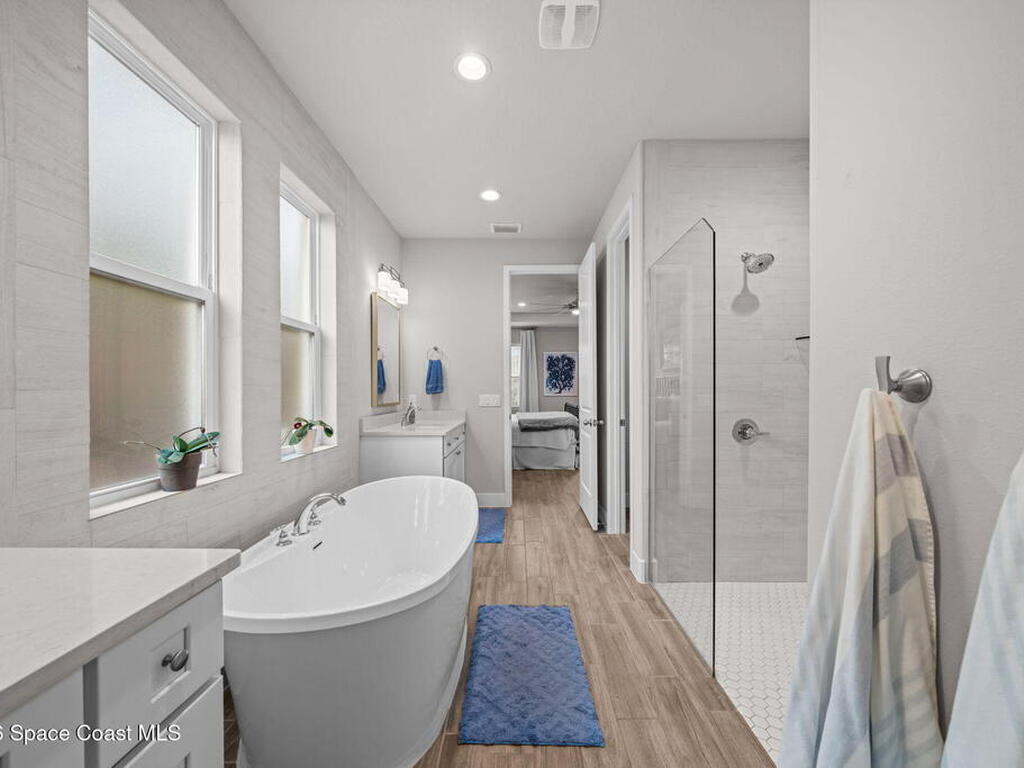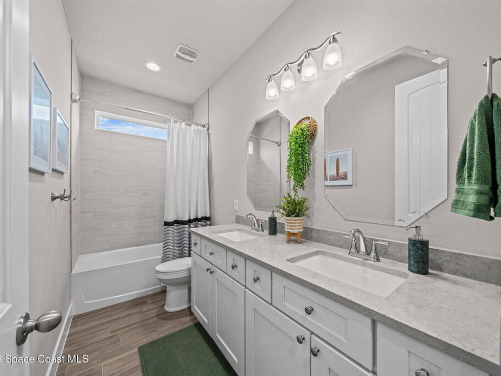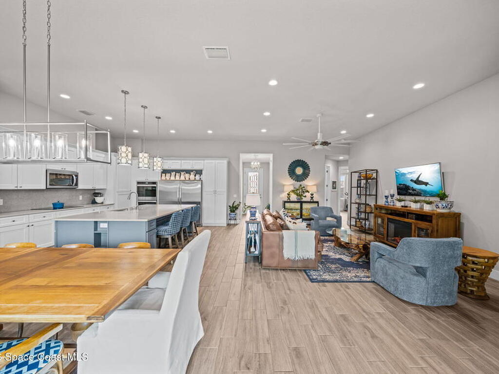 If you're looking for newer construction, thoughtful upgrades, and an unbeatable Space Coast lifestyle, this one has it all. Built in 2021, this meticulously maintained 4-bedroom, 3-bath home with a dedicated office and separate media room and chef's kitchen offers the flexibility today's buyers are searching for. Whether you need space for multigenerational living, a true work-from-home setup, or a private retreat for movie nights, this floor plan delivers. The standout feature? A true three-car garage plus extended paver driveway with designated RV/boat parking, a rare find in a gated community. The expanded pavers not only elevate curb appeal but provide practical space for a third vehicle, recreational toys, or guests. Inside, you'll appreciate impact-rated windows and sliders, providing peace of mind, energy efficiency, and storm protection without the hassle of shutters. High Capacity tankless HWH, closet built-ins, hidden pantry, extended pavers w/Shed, and so much more!