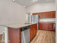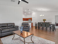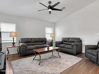 This beautifully crafted, 2021 3BR, 2BA, 2-car garage, concrete block home in the desirable Bayridge community offers the perfect blend of modern comfort and peaceful living. Home offers an open layout, vinyl flooring in main living areas, with carpet in the bedrooms, and a spacious kitchen with a large island perfect for prepping and gathering. The kitchen also includes 36'' cabinets and stainless steel appliances. The primary suite boasts a vaulted ceiling, a walk-in closet, a double vanity with ample counter space, Moen fixtures, and a tiled shower. The family room opens to a spacious, enclosed patio, ideal for relaxing or entertaining. Other features include an inside laundry room, pantry, ceiling fans, and recessed lighting, For peace of mind, the home is equipped with Low-E double-pane windows and a programmable thermostat. A great neighborhood near schools, shopping & dining.
