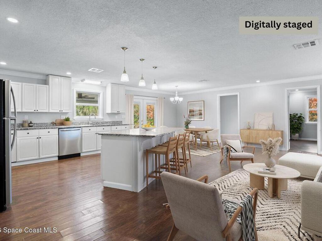 Situated on a spacious .85-acre lot w/ a new 2026 septic, this charming West Melbourne home is a rare find. Inside, laminate flooring flows throughout the open-concept layout, creating a comfortable & modern living space, and the primary bdrm offers dual access. The kitchen boasts lots of cabinets, SS appliances, a central island & a new sink with a drying rack & cutting board, overlooking the main living area. Step outside to a large covered porch & a supersized backyard, complete with dual RV hookups for septic & electricity--offering incredible income-producing potential, a private space for guests, or versatile multi-use flexibility. Families will appreciate the property's location within a highly sought-after A-rated school district. Enjoy the perfect blend of country living within city limits, with local shops, grocery stores, & I-95 just a short drive away. Plus, the beach is only 8.8 miles from your doorstep. This home offers a rare combination of space, flexibility, and value.