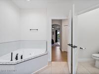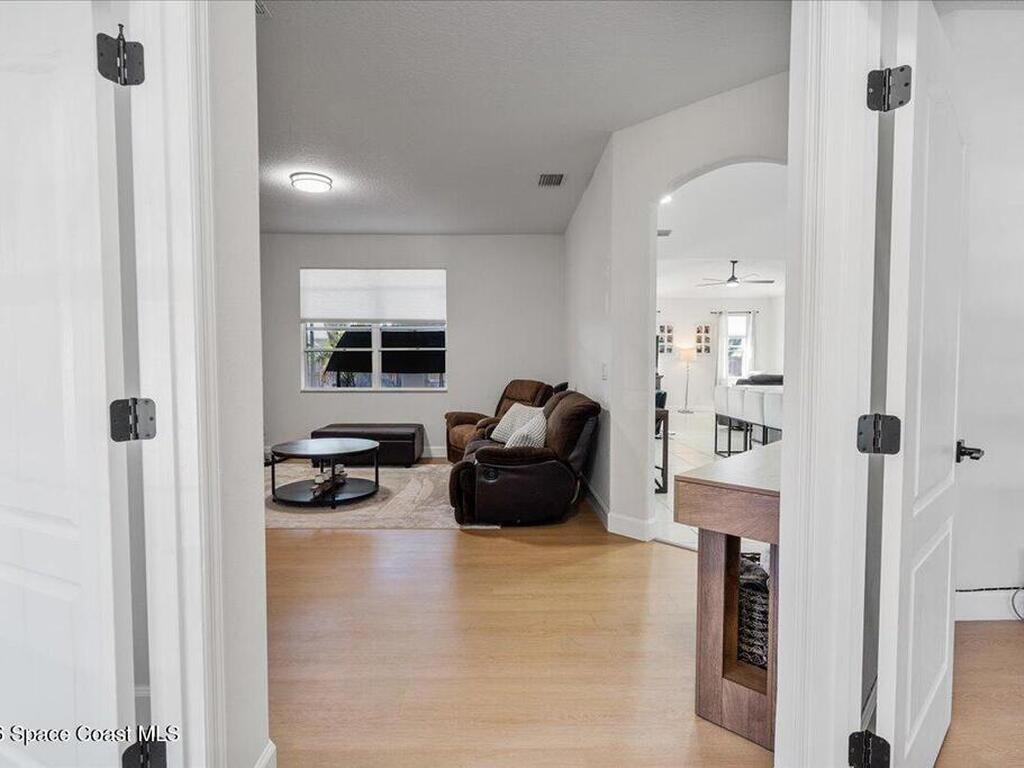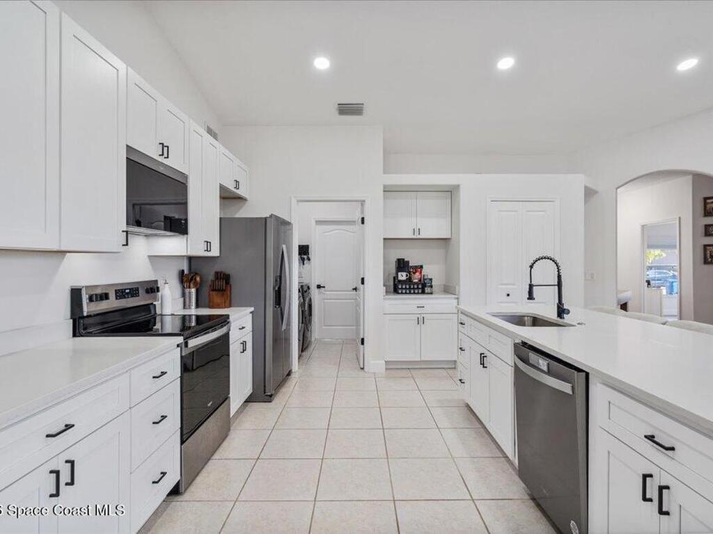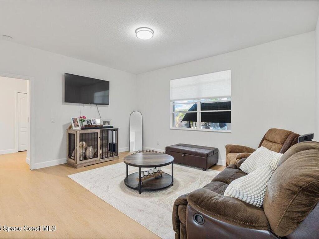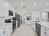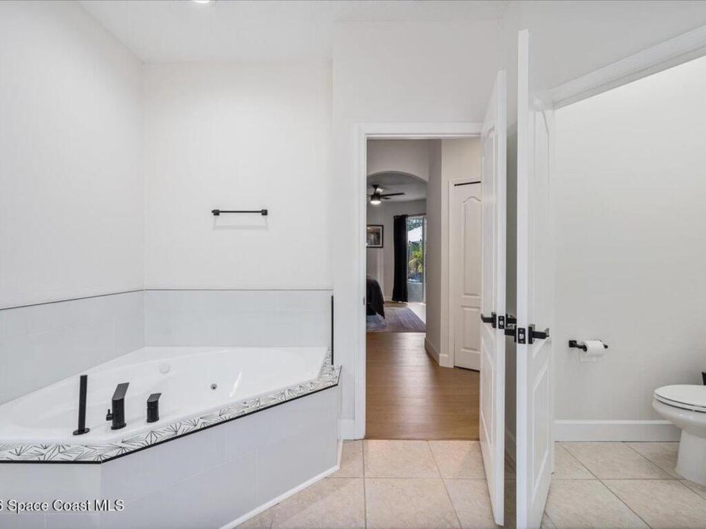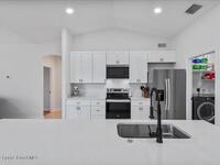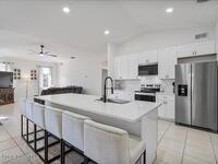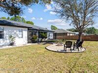 Fully remodeled 5BR/2BA home in Palm Bay with **NO HOA!** Major 2025 upgrades include a new roof, HVAC, water heater, and septic pump for peace of mind. This split floorplan offers privacy plus **two spacious living areas**, perfect for flexible living. Interior features ceramic tile and LVP flooring throughout. The oversized kitchen boasts white shaker cabinets, quartz countertops, stainless smart appliances, and a huge center island ideal for gathering. A whole-house water treatment system is included. The expansive primary suite features two walk-in closets, a walk-in shower, and a jetted tub. Enjoy a fully fenced backyard with a grill area and fire pit--ready for entertaining.