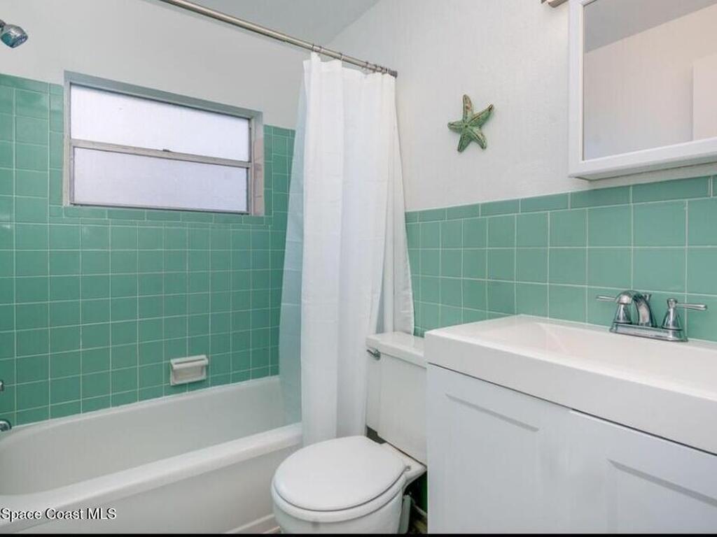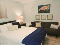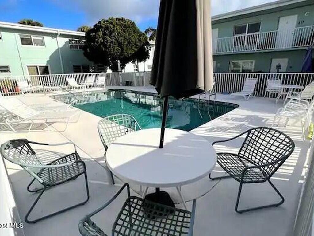 Coastal charm and income potential await just one block from the beach in the heart of Cape Canaveral. This beautifully renovated, fully furnished second-floor condo has operated as a successful short-term rental for the past five years. With a one-month minimum rental requirement, it offers exceptional flexibility as both a vacation home and investment property. Bright, airy, and completely move-in ready, this unit features an oversized primary suite and is fully stocked with home essentials and beach gear, truly turnkey for personal use or continued rental success. Enjoy your morning coffee on the welcoming front porch, then stroll just steps to public beach access where ocean sunrises and rocket launches become part of everyday life. The well-maintained, pet-friendly community offers a sparkling pool, BBQ area, assigned parking directly in front of the unit, on-site laundry, and low HOA dues making ownership even more attractive.