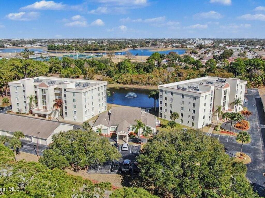 BRAND NEW LISTING! Enjoy peaceful waterfront views from this beautifully maintained 4th-floor 55+ condo, perfectly positioned within a serene, park-like community. This inviting residence features 2 bedrooms, 2 full baths and a 1-car garage, offering both comfort and everyday convenience. Wake up to tranquil water views and embrace a relaxed coastal lifestyle just minutes from Port Canaveral, vibrant Viera, the Space Coast Beaches and easy access to Orlando. Whether you're dining, shopping, cruising, or catching a rocket launch, everything is within reach. The HOA provides exceptional value, including water, internet/WiFi and exterior building insurance, giving you added peace of mind. Milestone inspections are complete and the elevators have been updated--making this a smart and secure choice. Residents enjoy a welcoming clubhouse with a kitchen, library, and exercise room--ideal for social gatherings and maintaining an active lifestyle. This is waterfront living made easy!