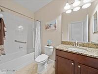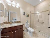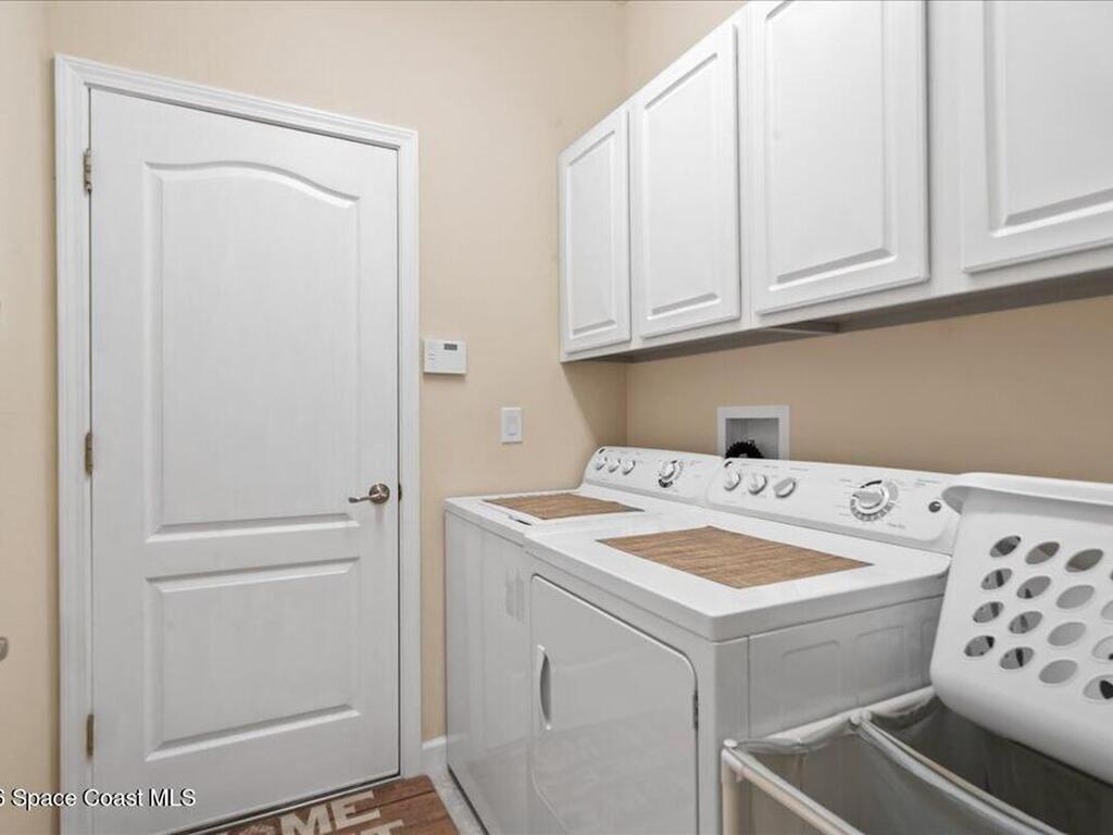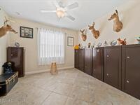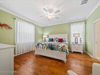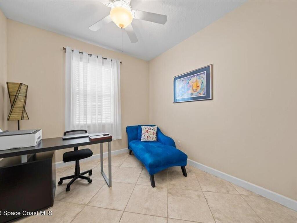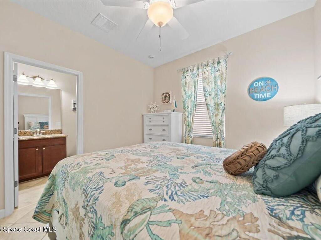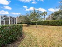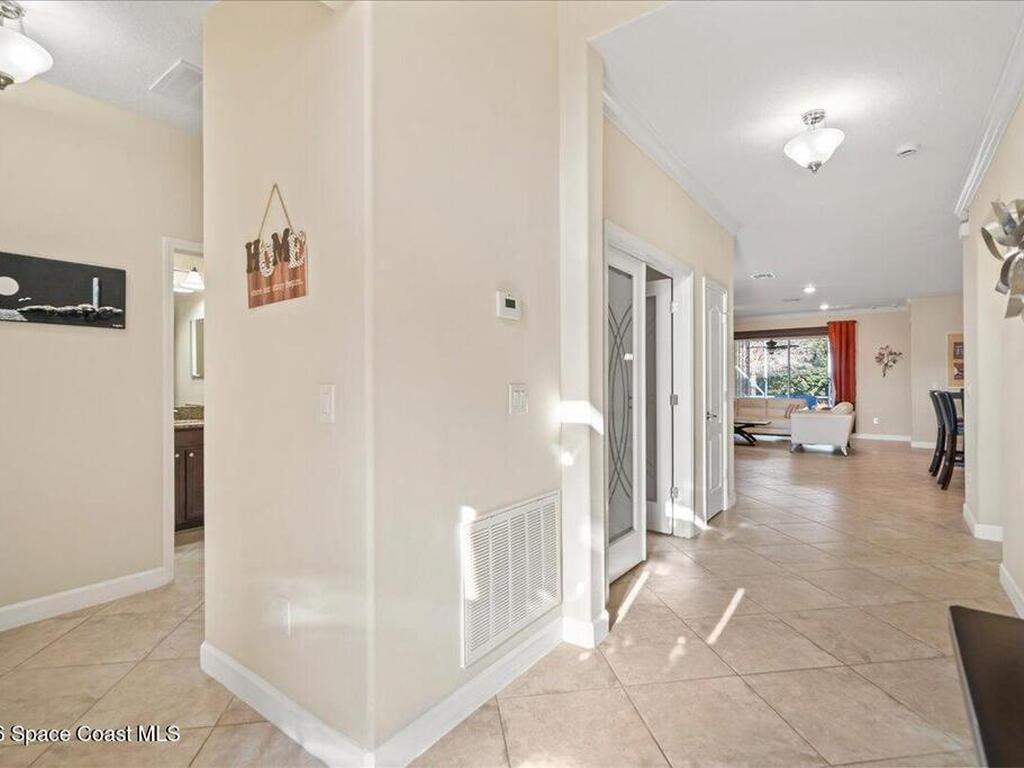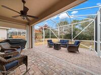 Welcome to one of Brevard County's premier active adult communities. This meticulously maintained Hamilton II model offers 3 bedrooms plus an office/den, 3 bathrooms, and a 2-car garage. Designed with comfort & elegance in mind, this home features 20'' tile flooring, crown molding, custom closet systems, & accordion hurricane shutters for added peace of mind. The kitchen features granite countertops, stainless steel appliances, tile backsplash, & expanded cabinetry for storage, perfect for everyday living & hosting. The primary suite is a true retreat with natural wood flooring, walk-in closets, and a spa-inspired bathroom with a frameless glass shower. Step outside to your paver lanai, fully enclosed for year-round enjoyment, an ideal setting for coffee or evening relaxation. Residents enjoy resort-style amenities in this guard-gated community, including a clubhouse, fitness center, sparkling pool, & various sports courts. Experience low-maintenance living, social activities, & more!