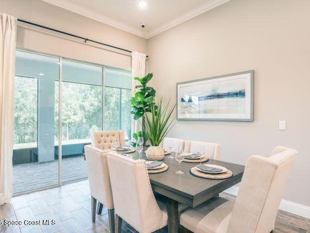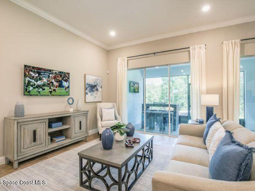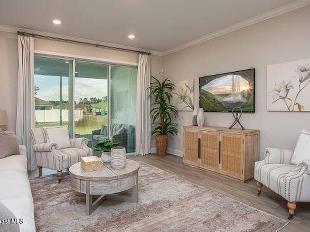 Pre-Construction. To Be Built. Discover refined living in this stunning Huntington floor plan, a beautifully designed new construction home in Palm Bay that blends modern comfort with thoughtful design and exceptional craftsmanship throughout. 9'4'' ceilings throughout the home and elegant crown molding create an open, elevated feel, while abundant natural light highlights the spacious open concept layout designed for both everyday living and memorable gatherings.At the heart of the home, the chef inspired kitchen flows seamlessly into the great room and dining area, creating a welcoming central space. The kitchen is enhanced with granite countertops, contemporary finishes, and direct access to a large screened in lanai with 9'4'' ceilings just off the great room, extending your living space outdoors and providing the perfect setting to relax or entertain year round. Cordless blinds add both style and convenience throughout the home.