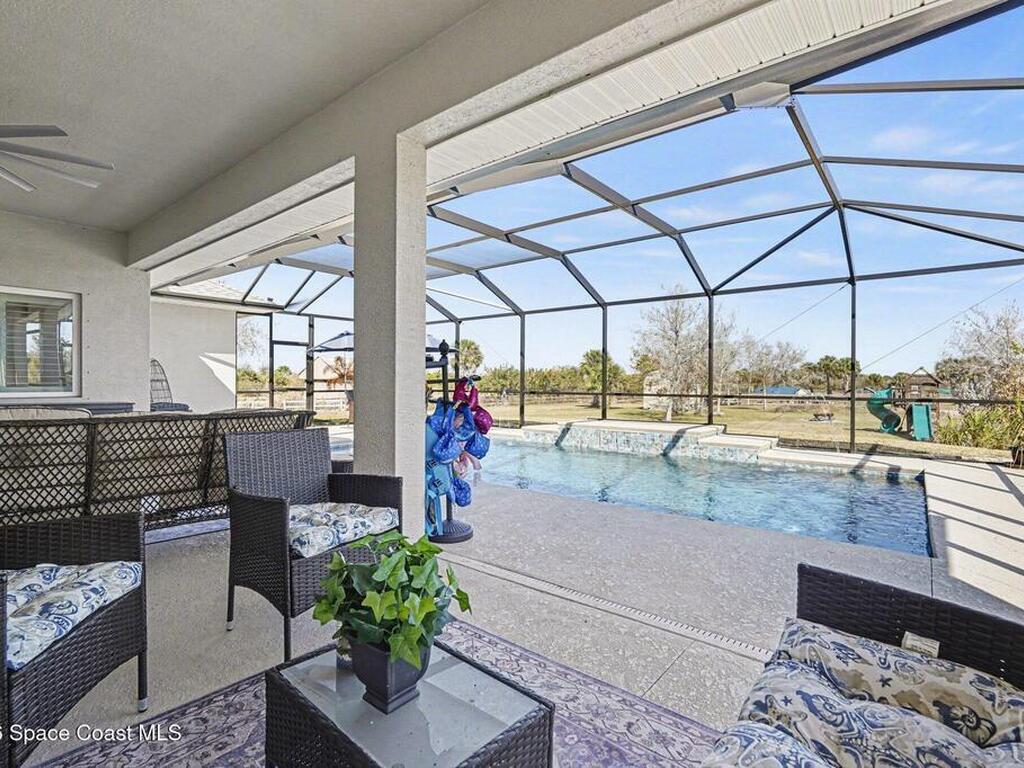 Built in 2021 and set on 2.53 acres in the desirable equestrian community of Deer Run, this 4-bedroom, 3-bath custom home blends modern design with upgraded outdoor living. The open split floor plan features high ceilings, quartz countertops, a large island, gas stove, soft-close cabinetry, and a spacious pantry. Since purchase, the sellers have added a stylish shiplap accent wall in the living area, bringing warmth and character to the open-concept space.The sellers also enhanced the property with a private pool featuring water elements, a screened enclosure, and fencing -- creating the ultimate Florida backyard retreat. Additional improvements include an epoxied garage floor and upgraded tile flooring in one bedroom. Equipped with a whole-house generator and situated on acreage with room to roam, this home offers space, privacy, and convenience near St. Johns Heritage Parkway and I-95.Modern construction. Acreage lifestyle. Poolside living.
