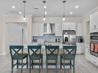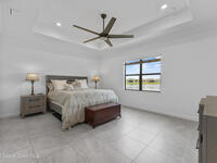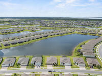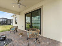 Rare TREVISO floor plan complete with many upgrades including IMPACT WINDOWS and wide waterfront lot with a south facing direction. You will love the views! 3 well separated bedrooms PLUS a generous sized office PLUS a 12 x 12 FLEX ROOM. ! Beautiful tile throughout/no carpet. High ceilings, upgraded kitchen backsplash, lighting, ceiling fans, crown moulding, blinds, and more. Primary bedroom , bath and closet are very spacious and on one side of the home while 2nd and 3rd bedrooms (one is en- suite) plus office /flex room are on the opposite side of the home. Utility room is off the kitchen and opens into very spacious 3 car garage. Come enjoy all that Bridgewater has to offer, from a world class pool to pickleball courts, bocce, billiards, movie theater, coffee lounge to gathering rooms to enjoy community activities with friends. Love the lifestyle; love your new home!