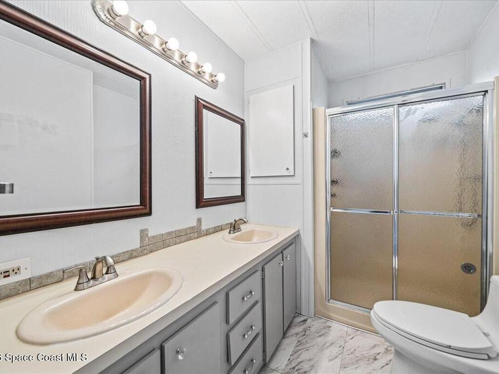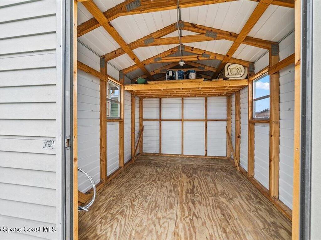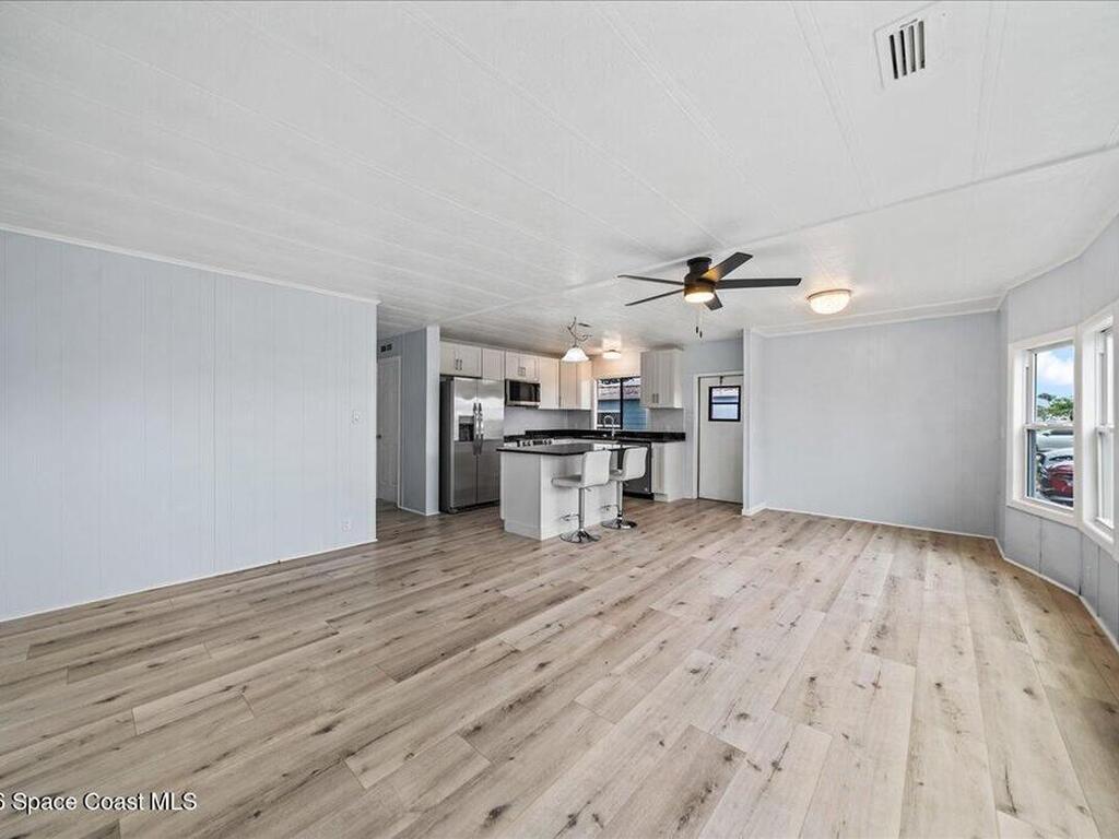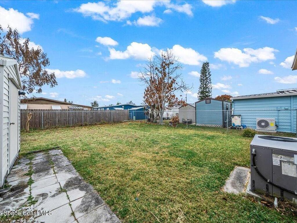 Step into a gorgeously updated kitchen featuring new cabinets, granite countertops, and all-new stainless steel appliances--a standout upgrade you'll appreciate every day. This home also offers a solid 2-year-old metal roof and new double-pane windows for added efficiency and comfort. Inside, you'll find fresh interior paint, gray vinyl flooring throughout, and lots of natural light. Major systems are in great shape with a 2022 HVAC and a new water heater, plus the washer and dryer are included. Outside, enjoy a fenced-in yard and a beautiful storage shed out back for tools, hobbies, or extra space. Move-in ready and packed with updates. Optional HOA membership provides access to a pool, clubhouse, tennis/pickleball courts, fitness center, and more. Just minutes from Turkey Creek Sanctuary, the Indian River, and the beach.
