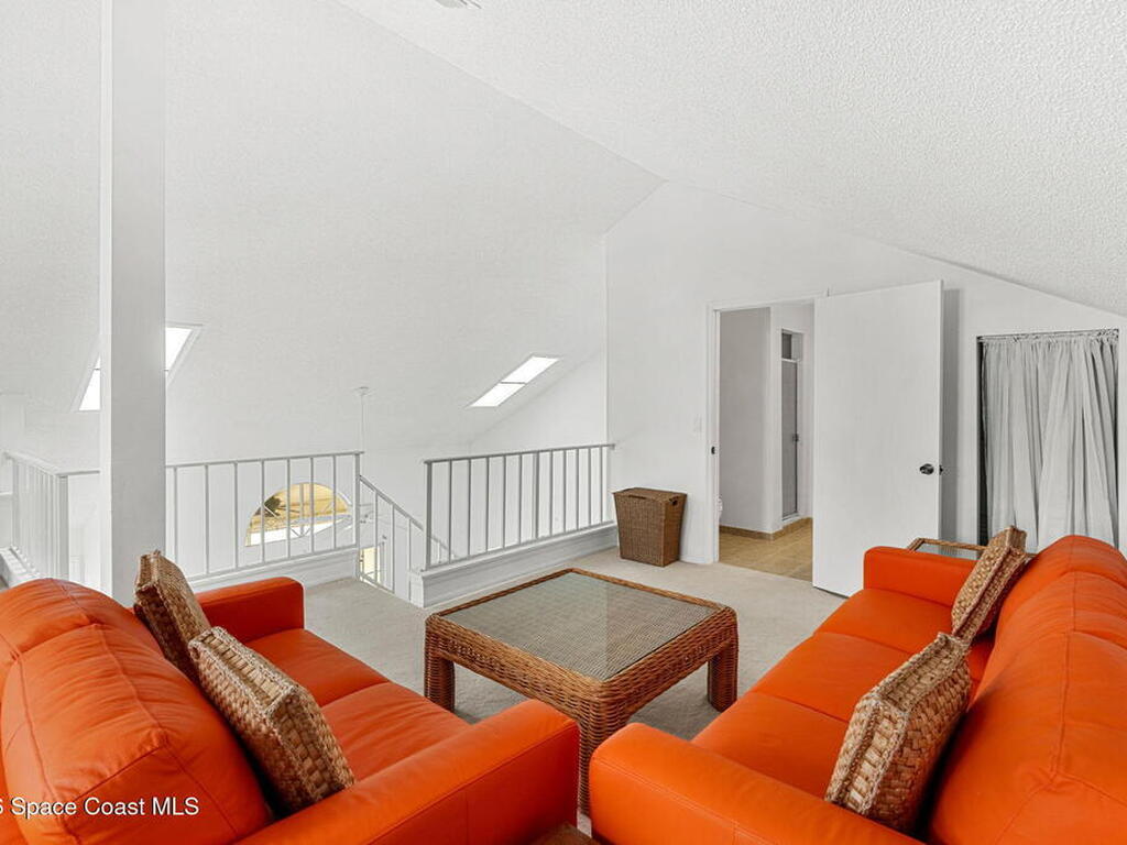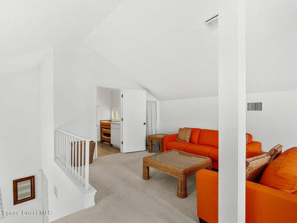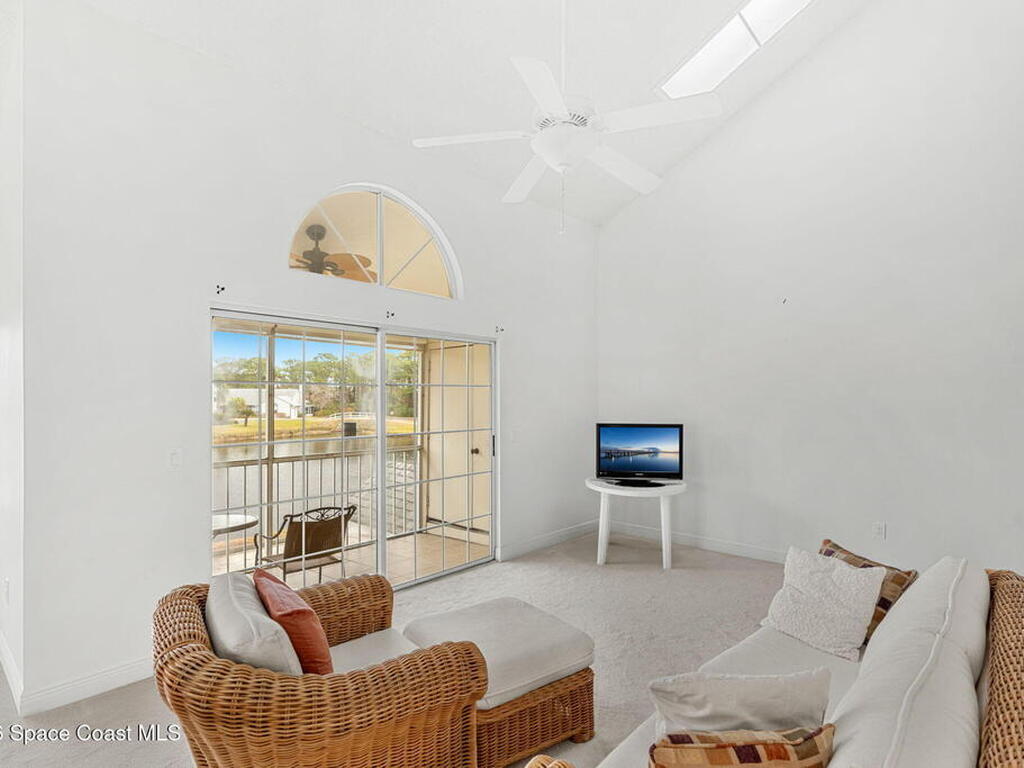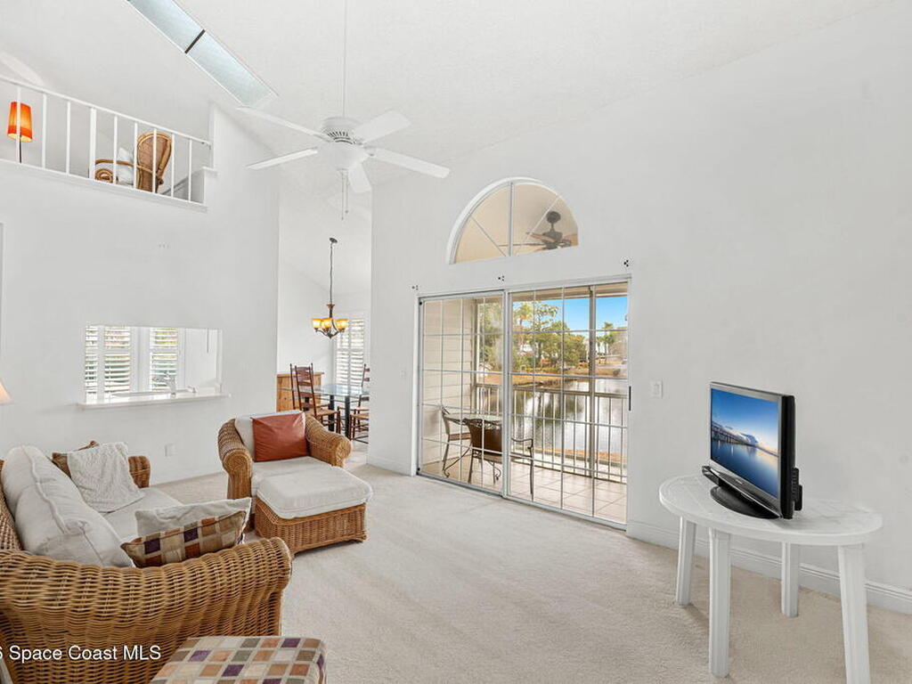 Welcome to this spacious 2-bedroom, 3 full-bath condo with a large loft in desirable Lake in the Woods. This two-story unit offers flexible living with an upstairs loft and full bath--ideal for guests, a home office, or additional living space. Enjoy peaceful pond views from your private balcony and the comfort of newer carpet throughout. The kitchen opens to the main living area for easy everyday living or entertaining. A 1-car garage adds convenience, and the washer and dryer convey (located in the porch storage room). HOA includes basic cable and internet as well as exterior maintenance with optional access to the community pool for an additional fee. A stair lift is already installed for added accessibility. Perfect for downsizers or investors seeking low-maintenance living in a centrally located Melbourne community near shopping, dining, and major roadways.