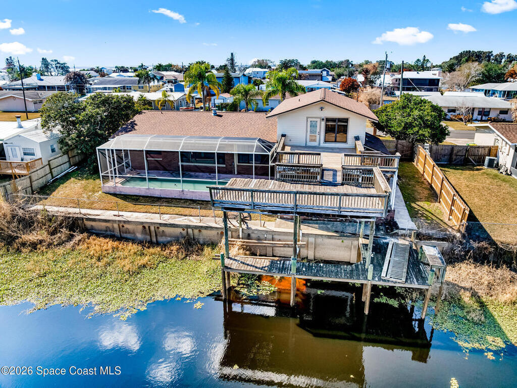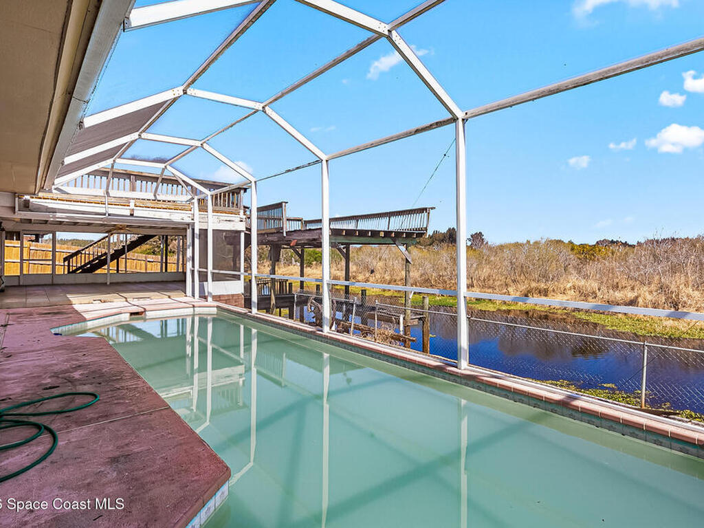 Calling all Fisherman, Hunters and Airboat enthusiasts. Here is your chance to buy a rare canal home that leads to Lake Poinsett and Lake Washington. This 3 bedroom, 4 bath pool home has the essential upgrades you need without paying for the unwanted remodel. New shingle and flat roof within the last year, updated electric panel, huge large upstairs primary bedroom with 2 separate bathrooms. Large Game room / Family room downstairs makes this home very roomy for guests and activities. Fenced in yard, screened pool with new pump & equipment . Covered Dock with Boat Lift. Make this home your own & live the Florida Lifestyle.