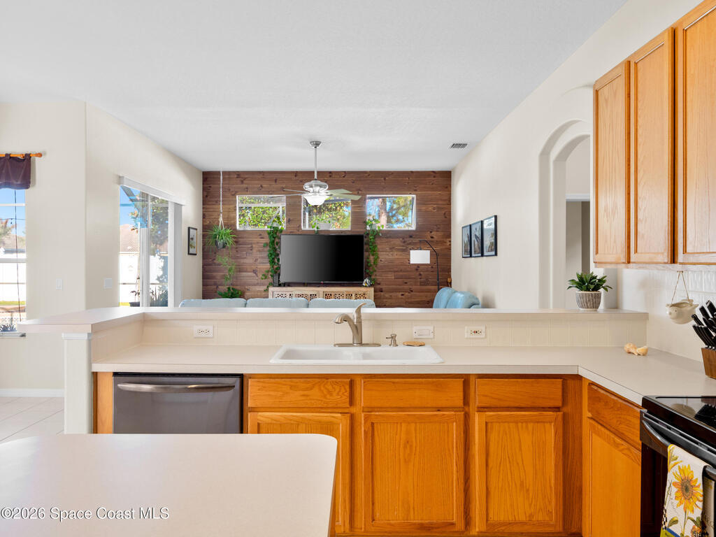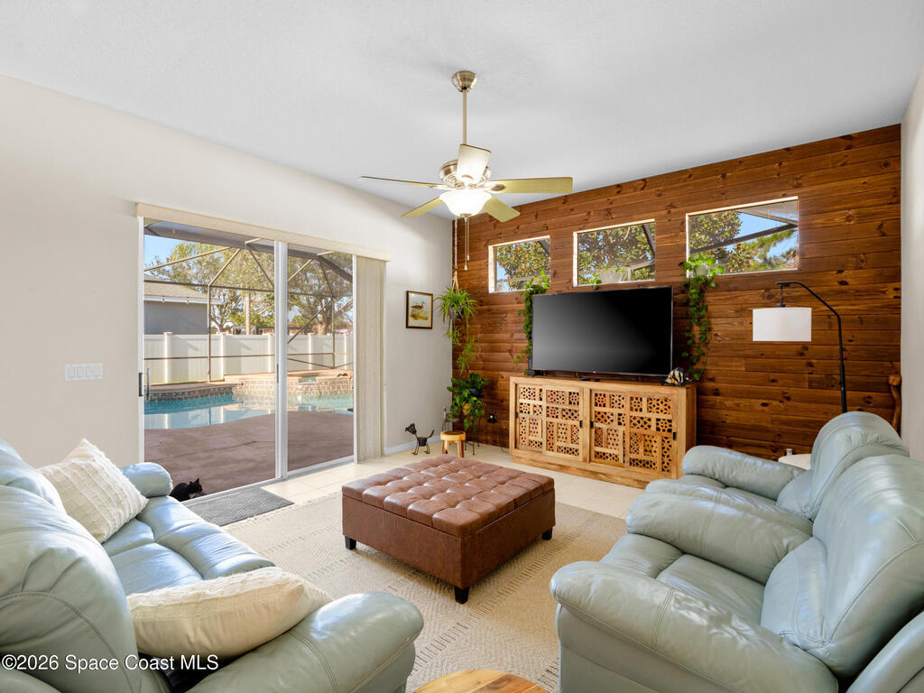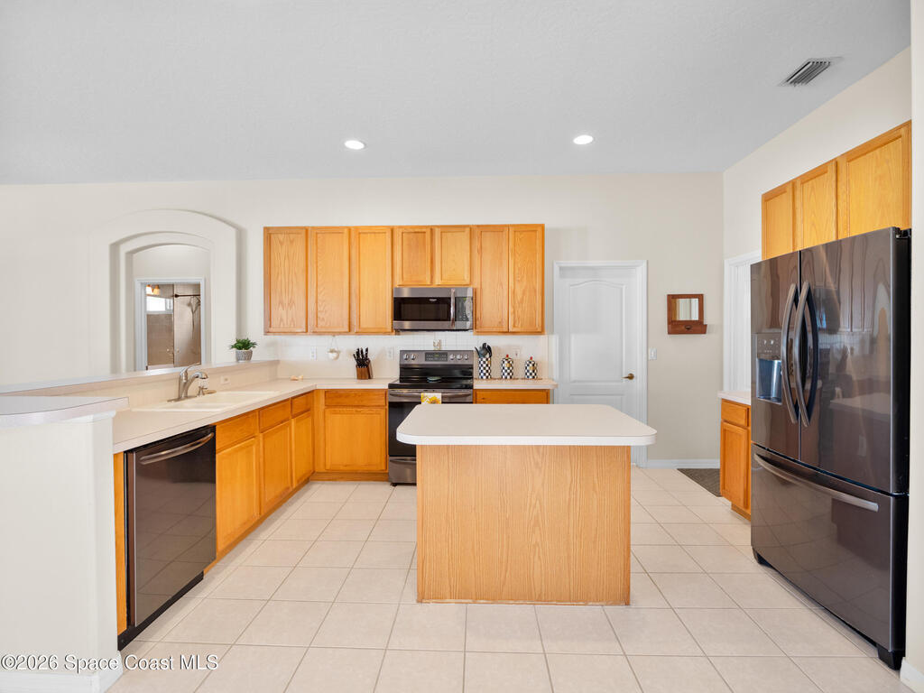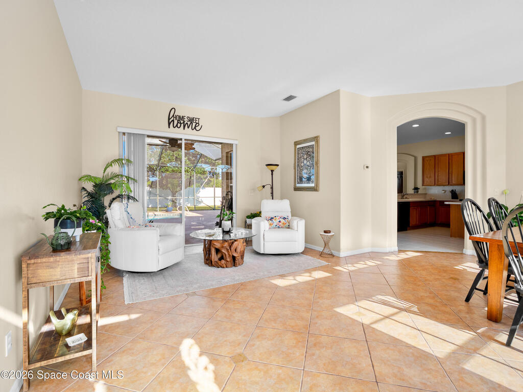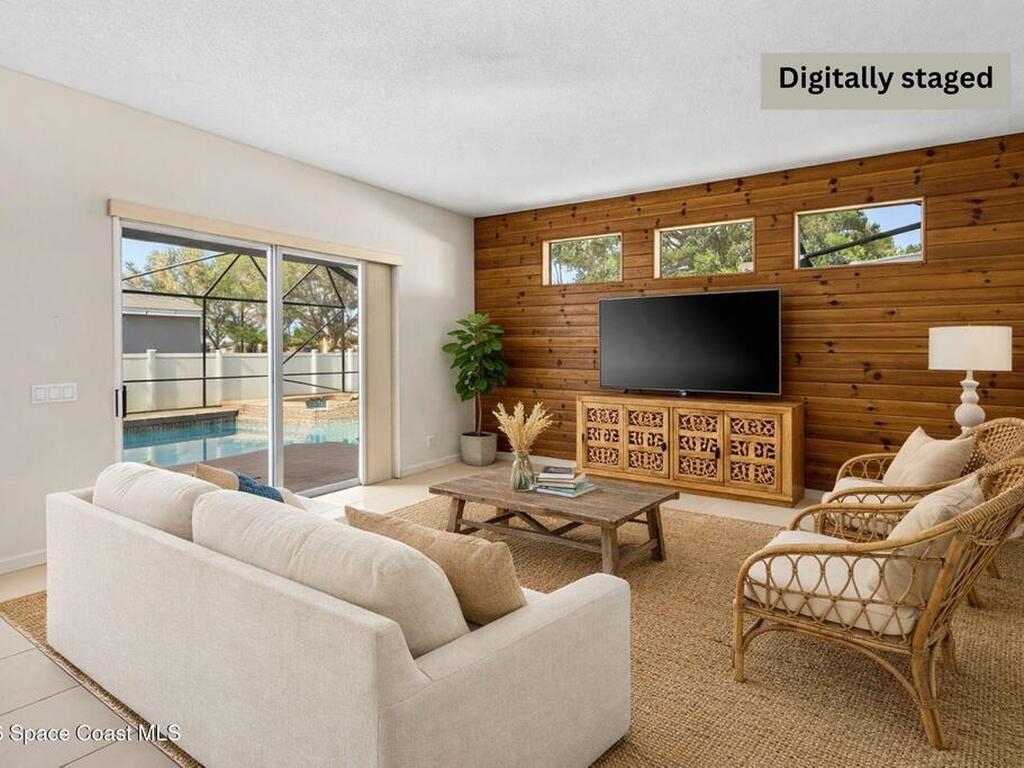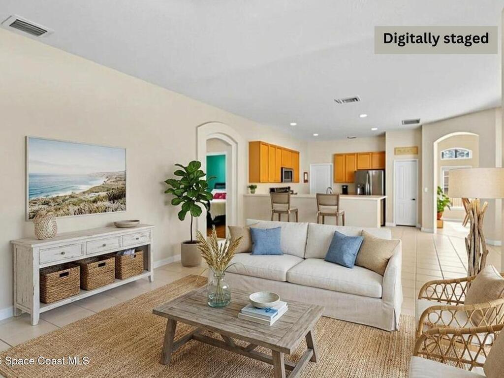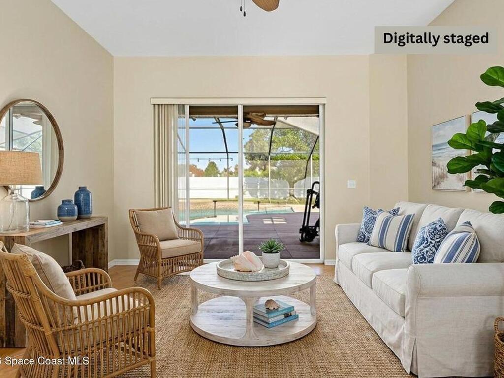 Experience inspired living & entertaining in this light-filled pool home nestled on .22-acre lot. A spacious open layout connects the FR & KIT, both overlooking a private backyard w/large screened pool & spa--perfect for gatherings or relaxed evenings.Neutral tile throughout for easy maintenance & a clean, timeless look-no carpet.The FR features a built-in entertainment center.The KIT is beautifully appointed w/ 42'' cabinets, pantry, center island, breakfast bar & nook overlooking the pool, complemented by smudge-proof black SS appliances for a sleek finish. A built-in desk adds work flexibility.The primary suite is generously sized w/ his & her walk-in closets & a well-appointed bath w/ soaking tub, dbl vanities & tiled shower. Archways & 10' ceilings. Guest bdrms offer comfort & versatility.Located w/in A-rated schools & just 6 min to the beach w/ easy access to major roadways, shops & dining. A move-in ready home w/ a smart value offering space, light & lifestyle every buyer seeks