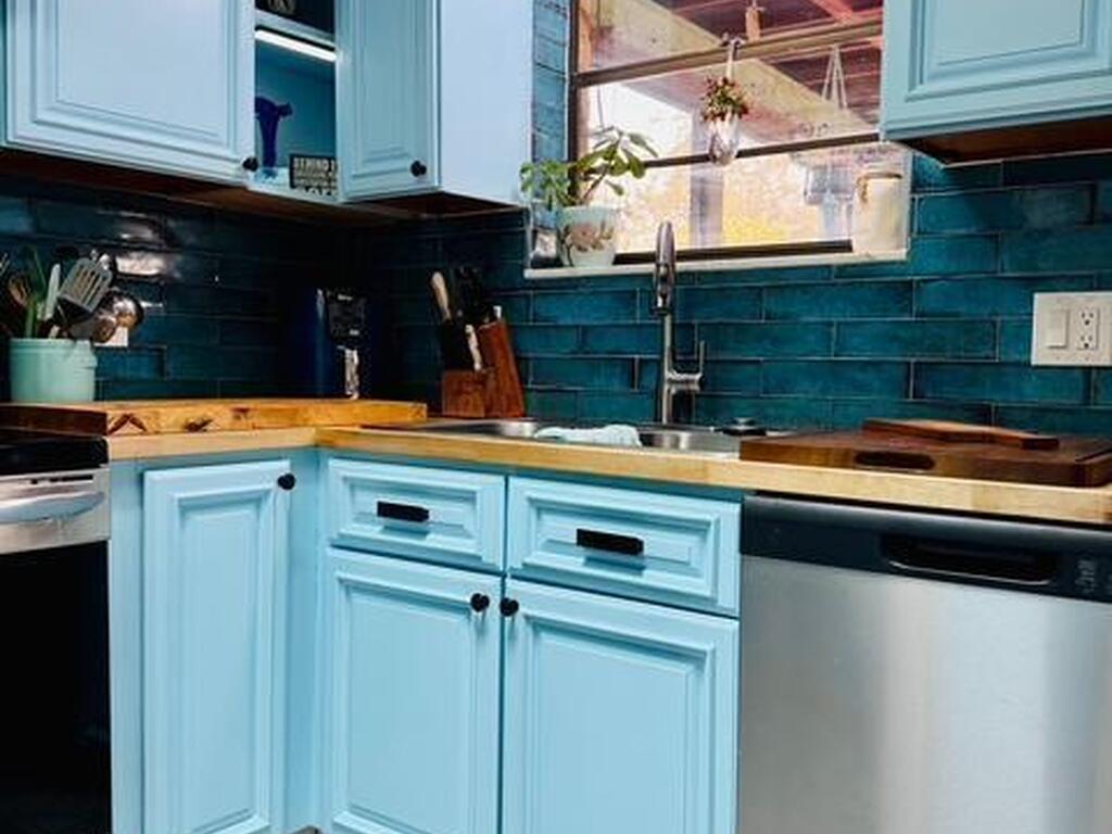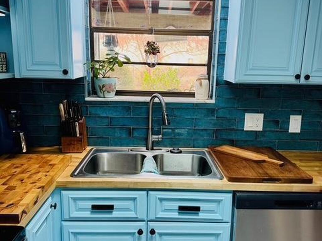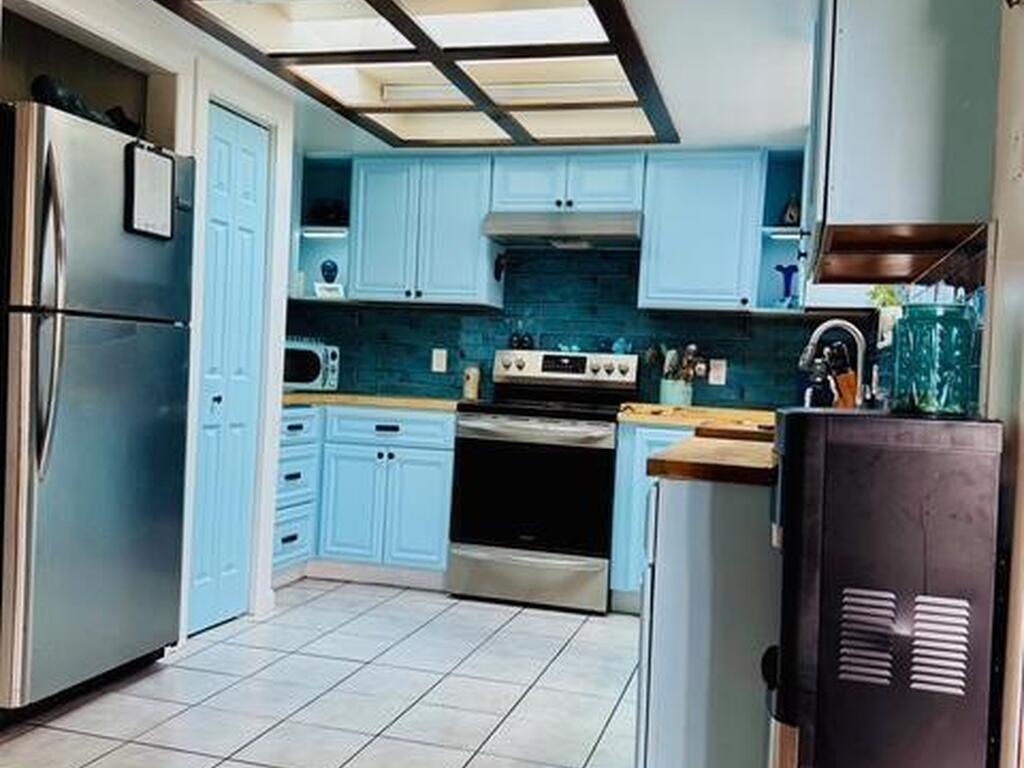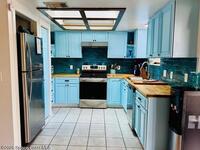Move-in ready 3BR/2BA brick home in Palm Bay! New metal roof (2023). Both bathrooms fully remodeled in 2023 with modern finishes and walk-in showers. Updated kitchen features new cabinets, butcher block countertops, and stainless steel refrigerator, stove, range hood, and dishwasher. Durable 12'' ceramic tile flooring throughout and fresh interior paint. Major updates include new A/C (2021) and new water heater (2025). Solid construction with stylish upgrades--don't miss this one!
