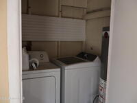 Great investment opportunity! This 2-bedroom, 1.5-bath home features a functional layout with wood-look flooring throughout the living areas and bedrooms. A half bath off the screened porch makes it perfect for expanding outdoor living or for easy access from a future pool. The dedicated laundry room adds everyday functionality. Conveniently located and full of opportunity!