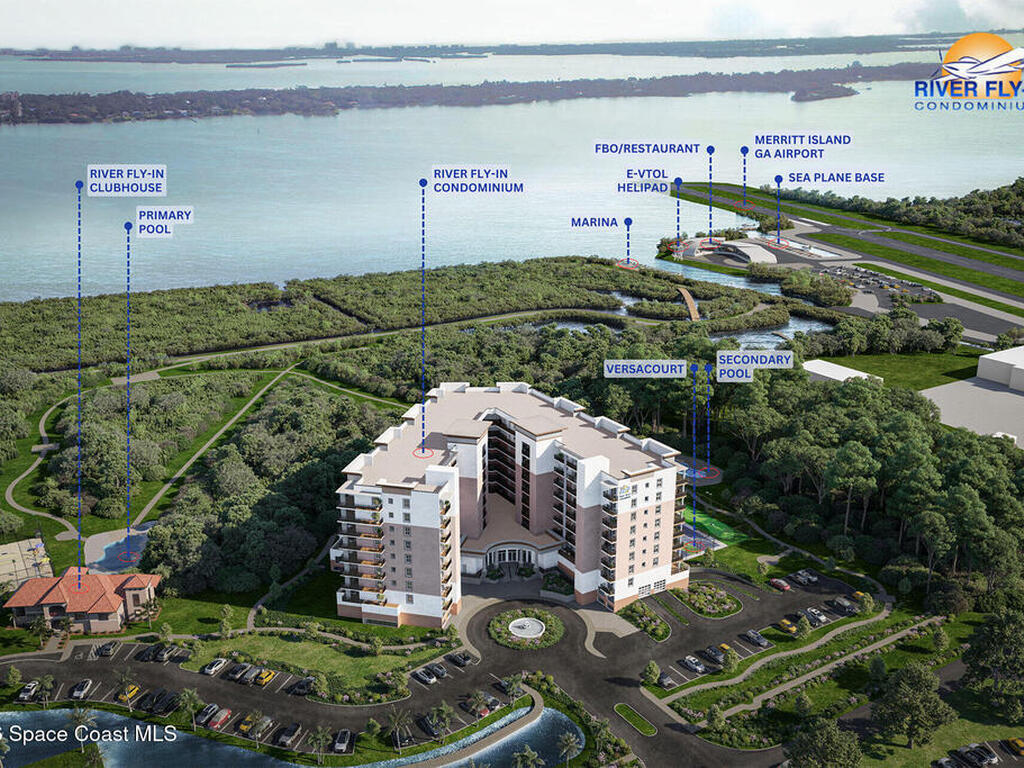 TOP FLOOR OPPORTUNITY - Brand new, high-end construction in a fabulous community.2BR/2BA luxury condominium offering 1, 334 SF in the prestigious gated River Fly-In community. This efficient floor plan features grey tile flooring throughout, white cabinetry, and elegant grey and white flecked granite countertops. Enjoy peaceful preserve views from your private balcony and a split-bedroom layout for added privacy. River Fly-In offers exceptional resort-style amenities including clubhouse, theater with 86-inch screen and surround sound, luxury massage seating, spa with hair salon, fitness center, outdoor fire pit, waterfall feature, tennis and pickleball courts. Located adjacent to Merritt Island Airport and minutes to Cocoa Beach, Port Canaveral, and Kennedy Space Center.