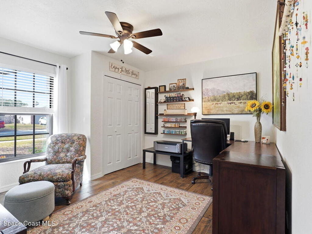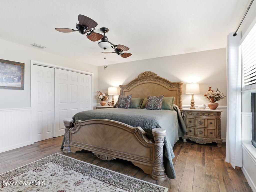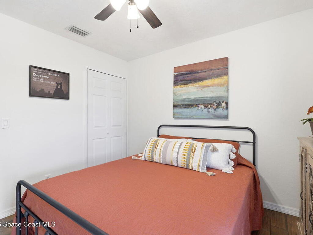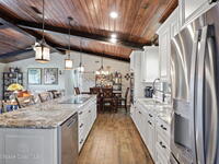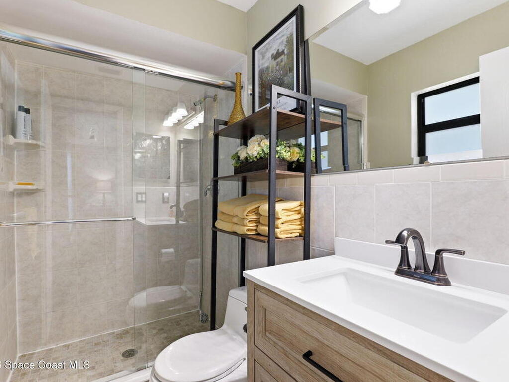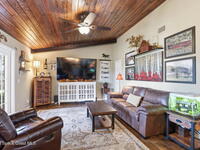This home exudes thoughtful style and design from the very moment you arrive. Vaulted tongue-and-groove ceilings with exposed beams create warmth, complemented by wood-look tile flowing seamlessly throughout the entire home. The impressive kitchen features 15-inch deep soft-close cabinetry, sleek induction cooktop, GE Profile appliances, and Waterdrop reverse osmosis filtration system that even filters water for ice cubes. Impact windows provide peace of mind, along with a 2024 roof, 2018 gas water heater, and a variable-speed AC system (2014) which is known for its longer-than-average lifespan. Screened porch and private fully fenced backyard offers premium cedar fencing (resistant to rot and insects), storage sheds, and double-gate yard access with potential to store a small trailer or boat. Ideally located near Publix, the Eau Gallie Arts District, and I-95. Schedule a showing today!