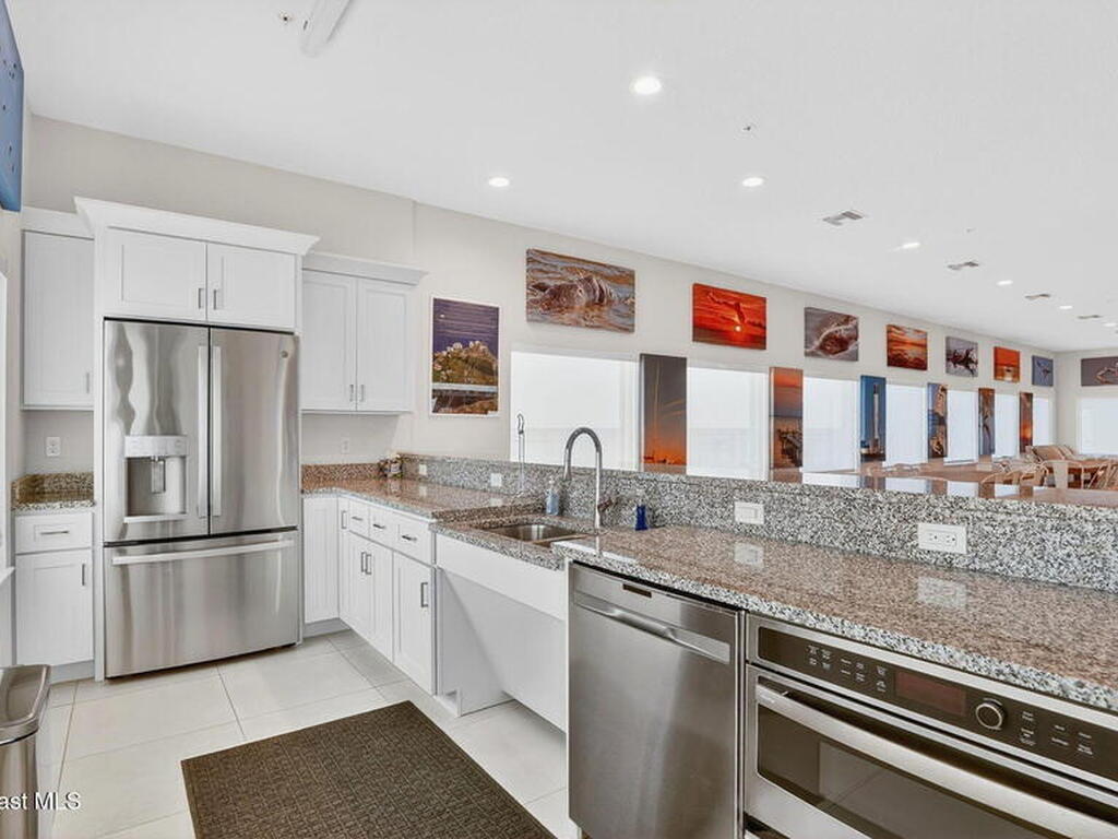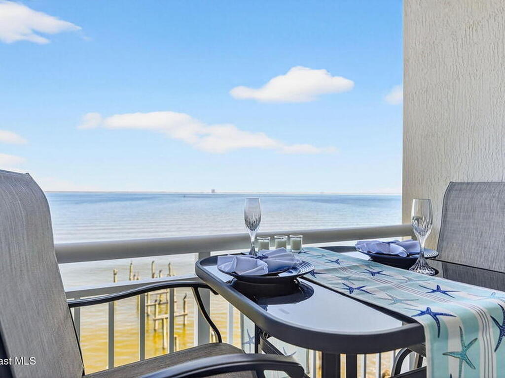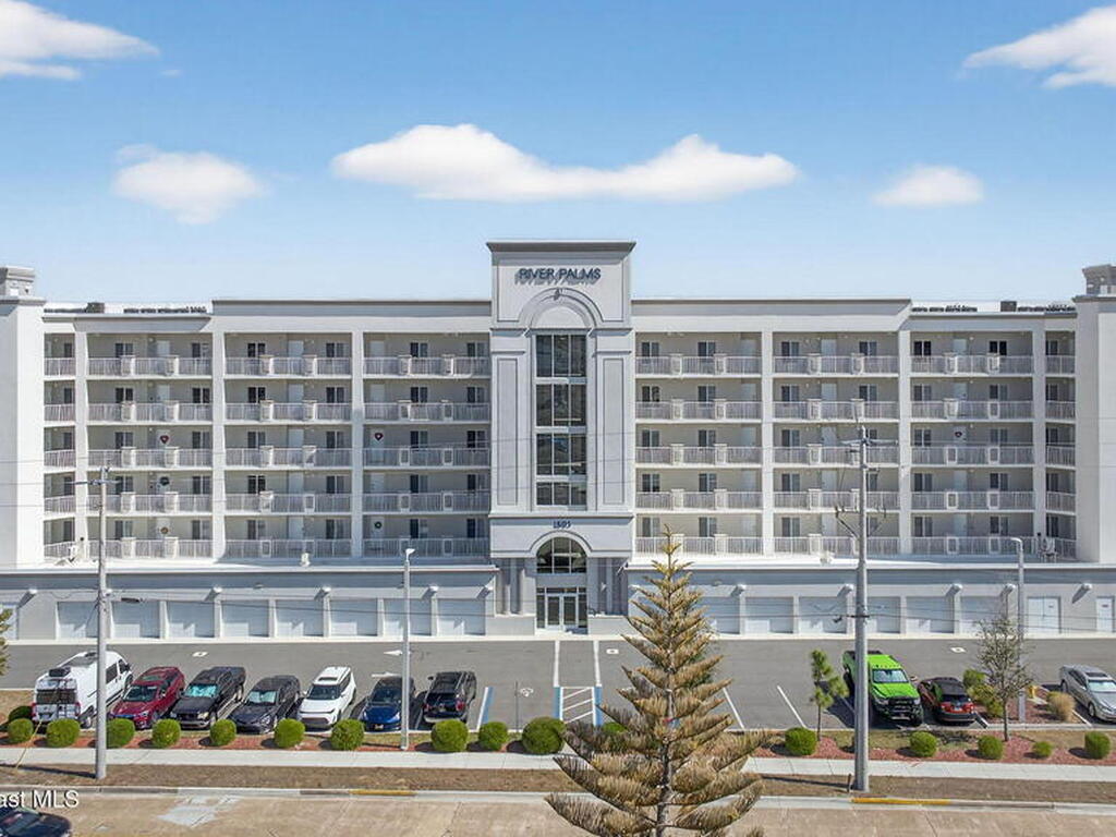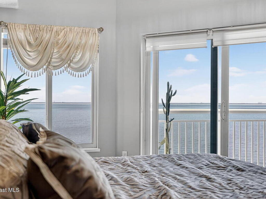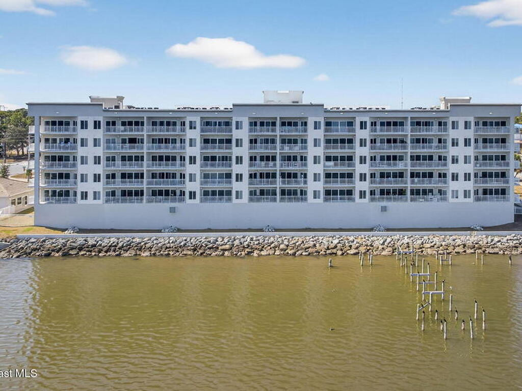 Built in 2023 & offering the 2nd Largest Floor Plan in River Palms, this Waterfront Condo delivers iconic Space Coast Views. Enjoy Impact Windows & a Private Balcony overlooking the Indian River & Kennedy Space Center for front row seats to Rocket Launches from the Living Room or the Primary. Inside, oversized Porcelain Tile runs throughout, paired w/ Granite Counters in the Kitchen & Baths. The Kitchen shines w/ SS Appliances, an Upgraded Double Oven, Farmhouse Sink, & Classic Subway Tile. A dedicated Laundry Room includes a Smart Front Load Washer/Dryer + Pedestals & Utility Sink. The Living & Dining areas are enhanced w/ Crown Molding. The Primary Suite features a Walk-in Closet & En Suite w/ Dual Sinks. Spot Manatees, Dolphins & Stingrays daily! Resort Style Amenities include a Waterfront Heated Pool, Clubhouse, Fitness Center, & Garage Parking. Maintenance Fee includes Water, Sewer, Trash, Internet & Cable. Minutes to Beaches, Dining, Shopping & SR 528.