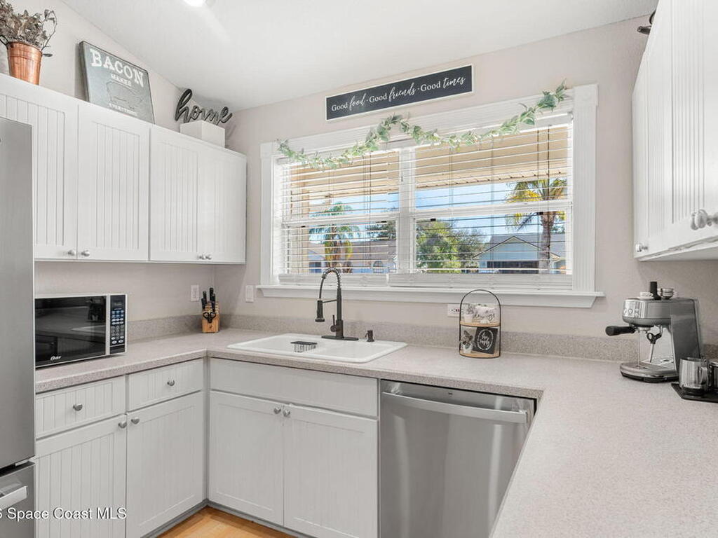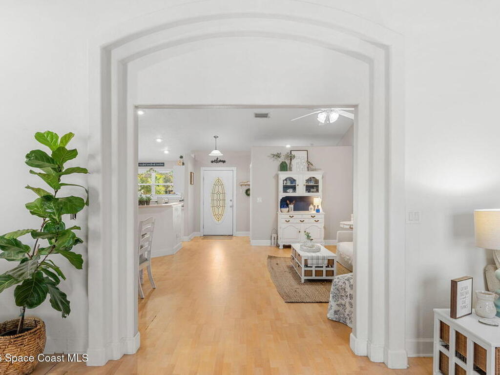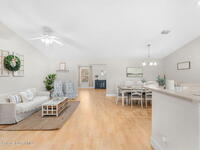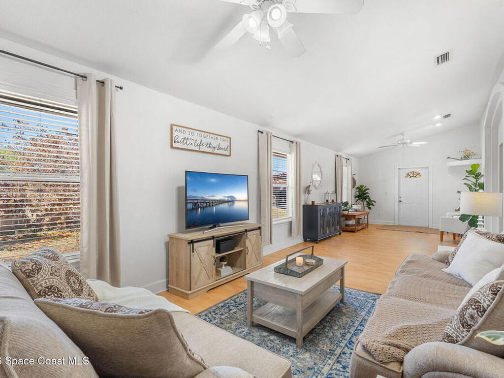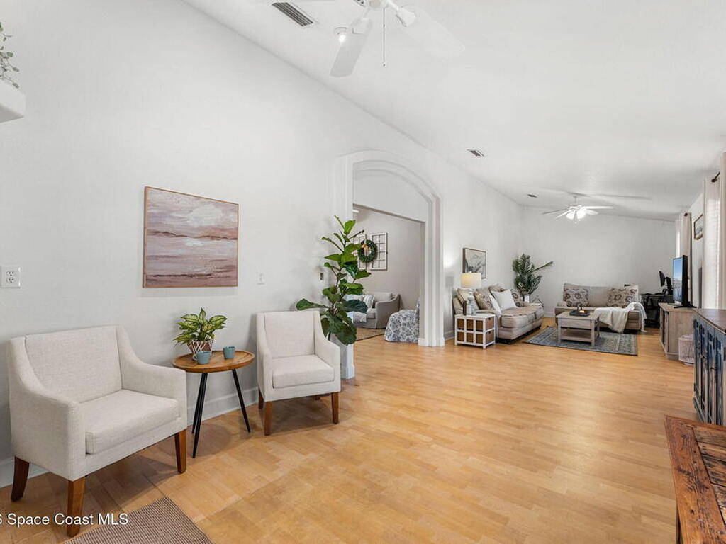 Welcome home to 449 Gilbert Drive NE in the heart of Central Palm Bay, where space, light, and comfort come together beautifully.Pulling up, you'll immediately notice the inviting curb appeal--mature palms, a wide driveway, and a side-entry two-car garage set on a generous .27-acre lot. This is the kind of property that gives you breathing room, with a fully fenced backyard and no HOA to limit your lifestyle.Step inside and you're greeted by soaring vaulted ceilings and warm wood-look laminate flooring that flows through the main living areas. The open floor plan creates an airy, expansive feel from the moment you enter. Rounded archways and soft natural light give the home character and warmth, while the layout offers flexibility for the way you live.The kitchen truly anchors the home. Crisp white cabinetry, new major kitchen appliances (May 2024), generous counter space, and a breakfast bar make it both functional and welcoming.