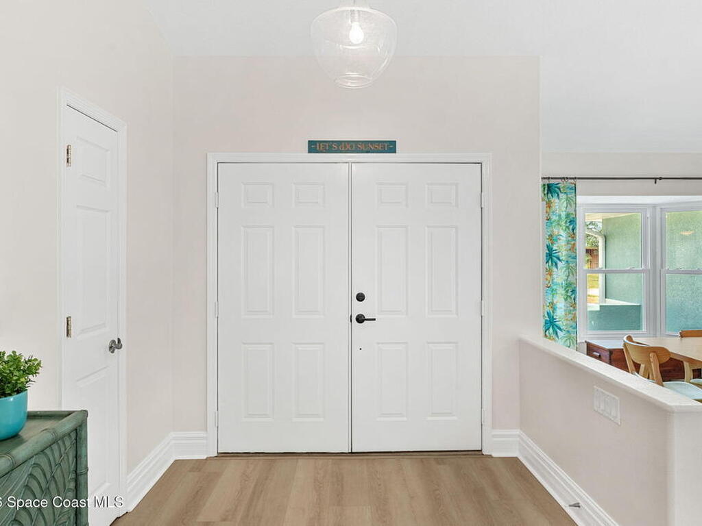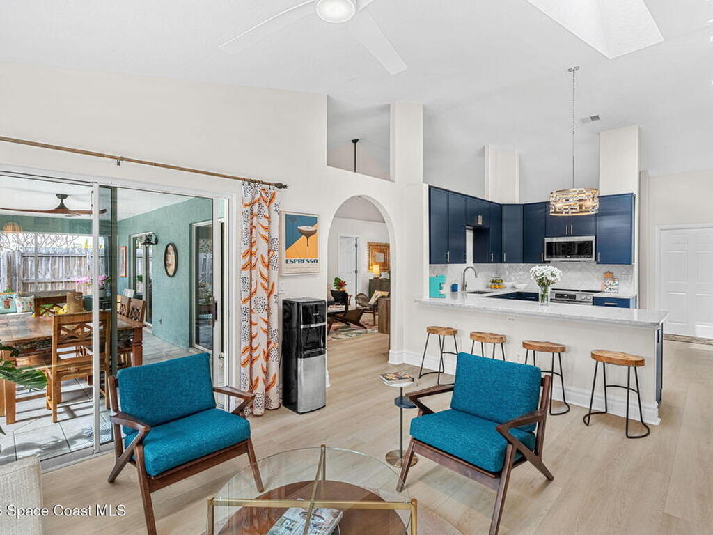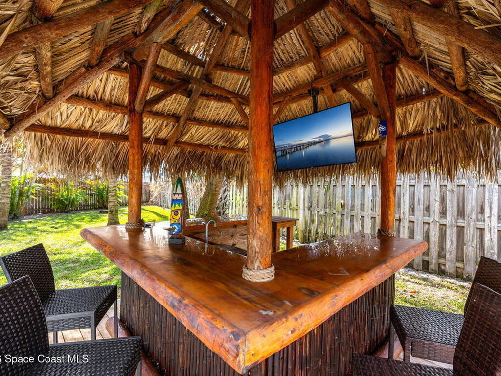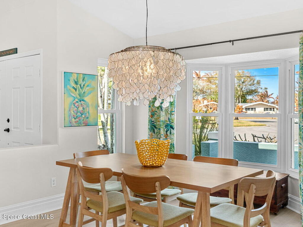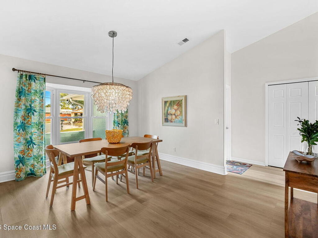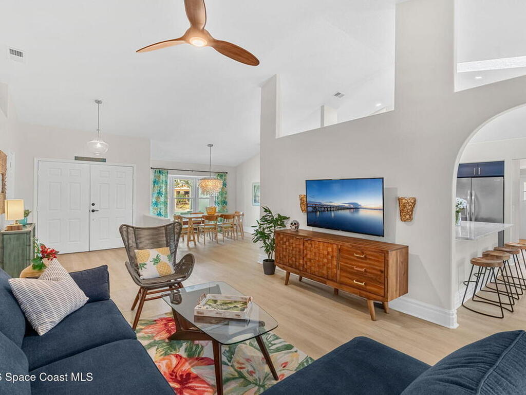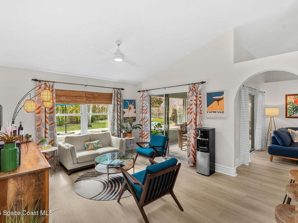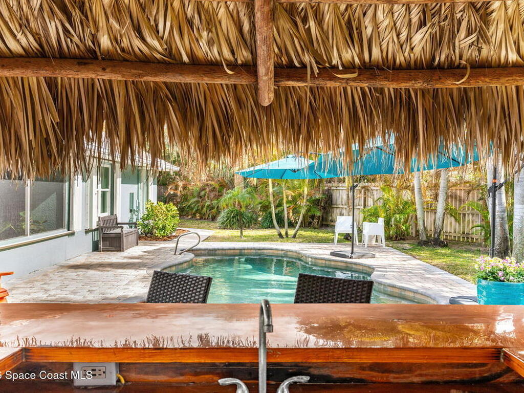 Welcome to your beachside retreat in the heart of Indialantic. Perfectly situated on a quiet cul-de-sac just blocks from the ocean, this meticulously maintained 3BR/2BA split floor plan offers the ultimate Florida lifestyle. Vaulted ceilings and abundant sliders fill the home with natural light, while new luxury vinyl plank flooring runs throughout. The new custom kitchen features quartz countertops, solid wood cabinetry, and an ideal layout for entertaining. The primary suite opens to a beautiful lanai, and the spa-like bath includes a soaking tub, double vanity, and walk-in closet. Step outside to your private backyard oasis with a sparkling pool, lush landscaping, tiki bar, fenced yard, and shed. New Impact windows, new hot water heater, and newer roof. The neighborhood is golf cart-friendly, close to the beach, shopping, dining, and the kids can walk or ride bikes to school. This is your opportunity to own the perfect Indialantic home.