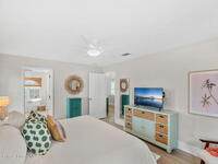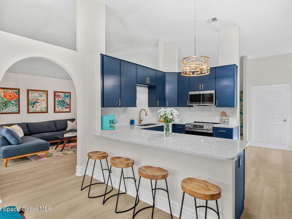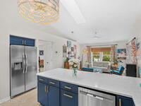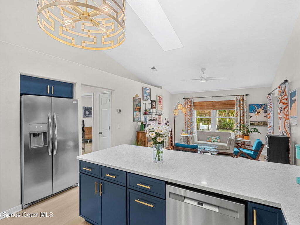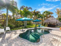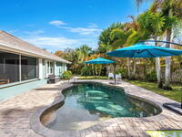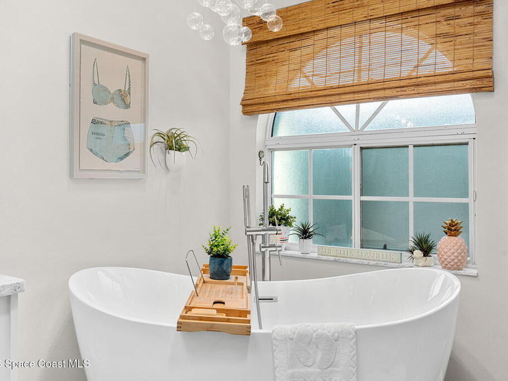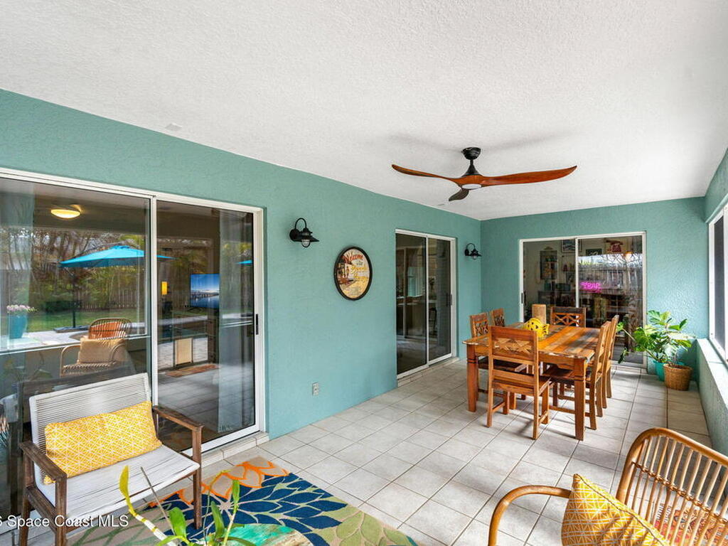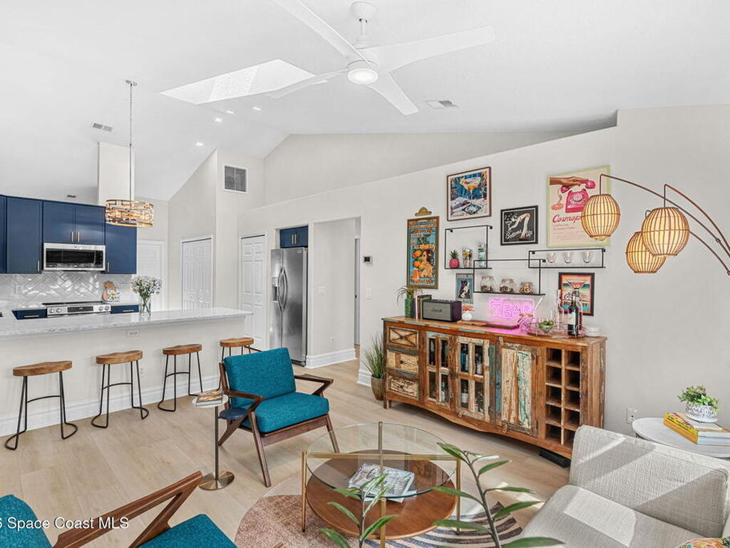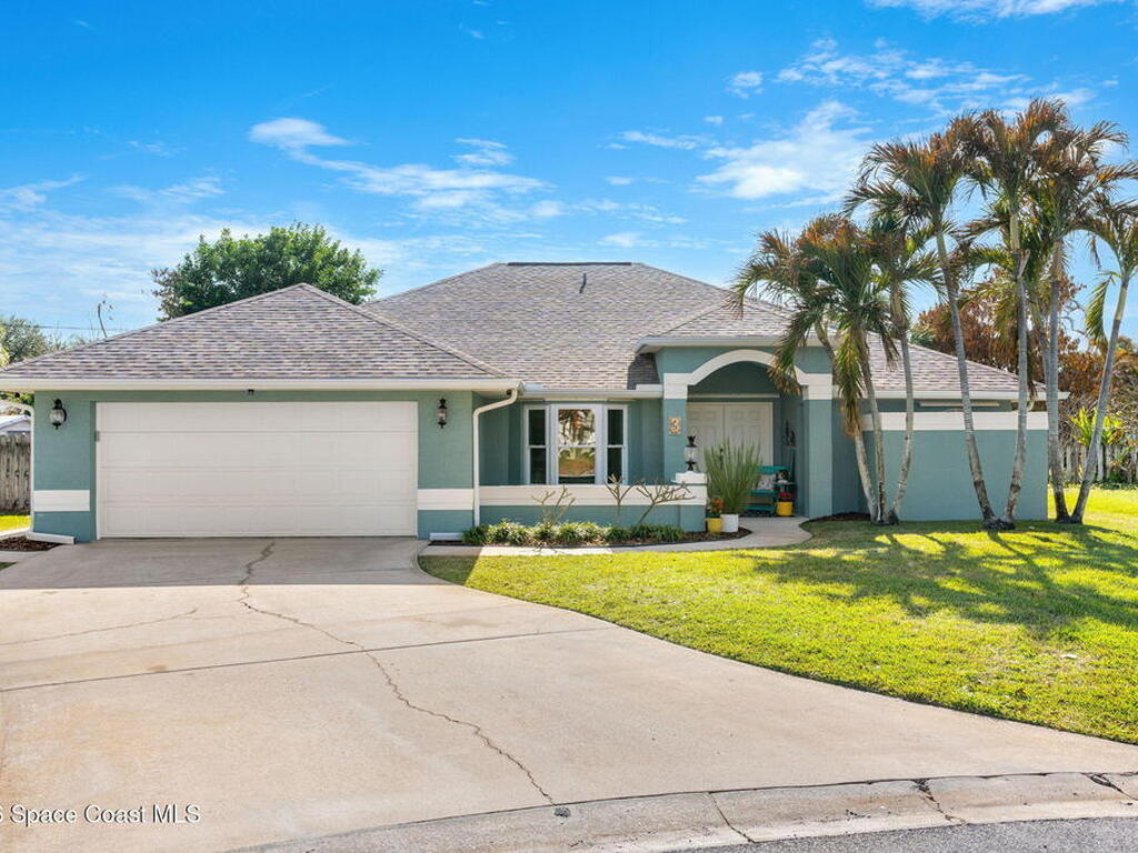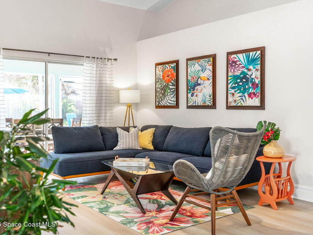 Welcome to your beachside retreat in the heart of Indialantic. Perfectly situated on a quiet cul-de-sac just blocks from the ocean, this meticulously maintained 3BR/2BA split floor plan offers the ultimate Florida lifestyle. Vaulted ceilings and abundant sliders fill the home with natural light, while new luxury vinyl plank flooring runs throughout. The new custom kitchen features quartz countertops, solid wood cabinetry, and an ideal layout for entertaining. The primary suite opens to a beautiful lanai, and the spa-like bath includes a soaking tub, double vanity, and walk-in closet. Step outside to your private backyard oasis with a sparkling pool, lush landscaping, tiki bar, fenced yard, and shed. New Impact windows, new hot water heater, and newer roof. The neighborhood is golf cart-friendly, close to the beach, shopping, dining, and the kids can walk or ride bikes to school. This is your opportunity to own the perfect Indialantic home.