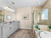 Built in 2014 and just steps from the ocean, this meticulously maintained 3-bedroom, 3-bathroom pool home in Cocoa Beach offers the rare combination of location, condition, and structural quality. With only one owner and lightly lived in, the home shows like new. No pets, no smoking, and no shoes worn inside reflect the exceptional level of care throughout. Inside, soaring ceilings create an open and airy feel. The home features 100% travertine flooring throughout -- including floors, showers, and full bath walls -- along with granite countertops, six-panel solid wood doors, solid vinyl plantation shutters, and a Kohler jetted garden tub in the primary suite. An alarm system is already in place for added security.