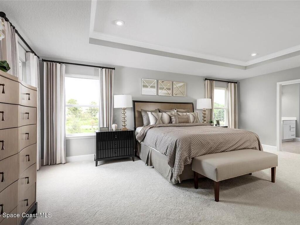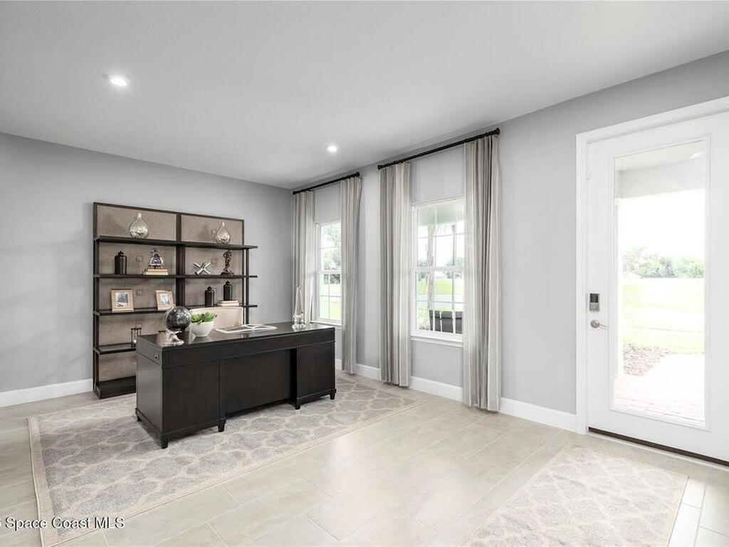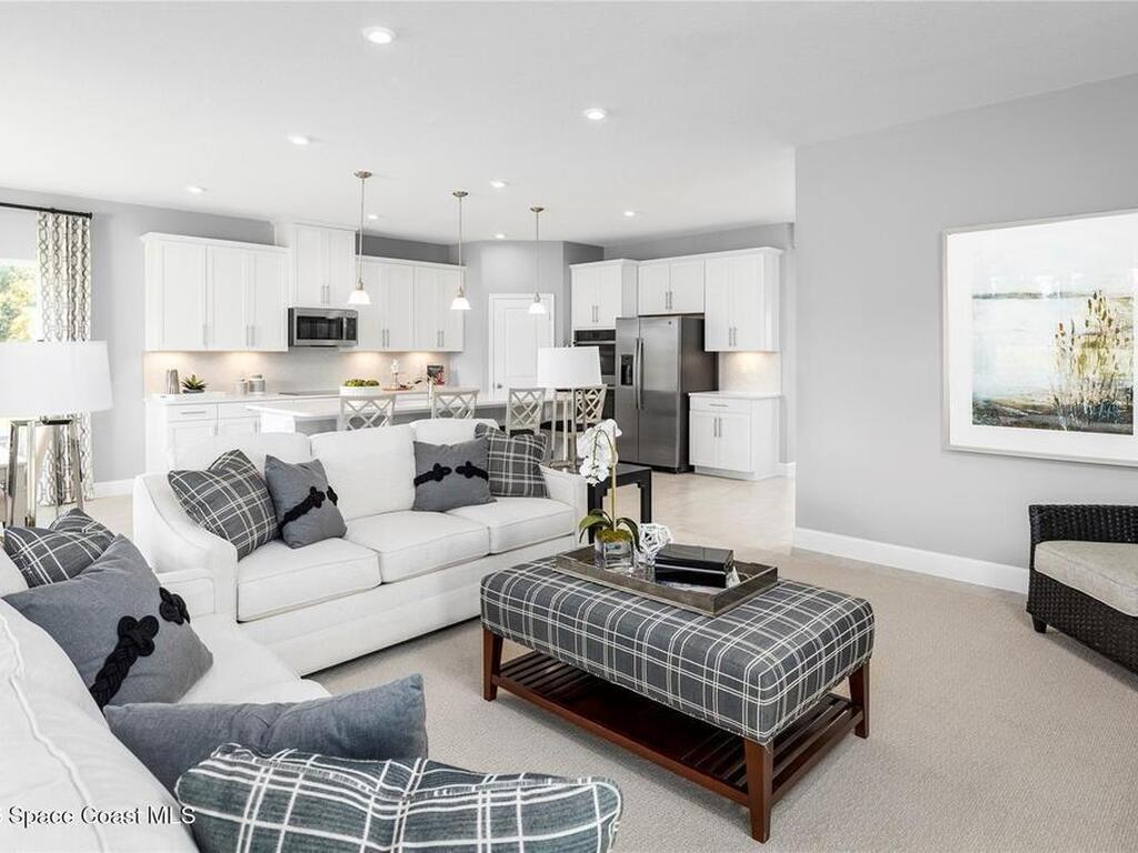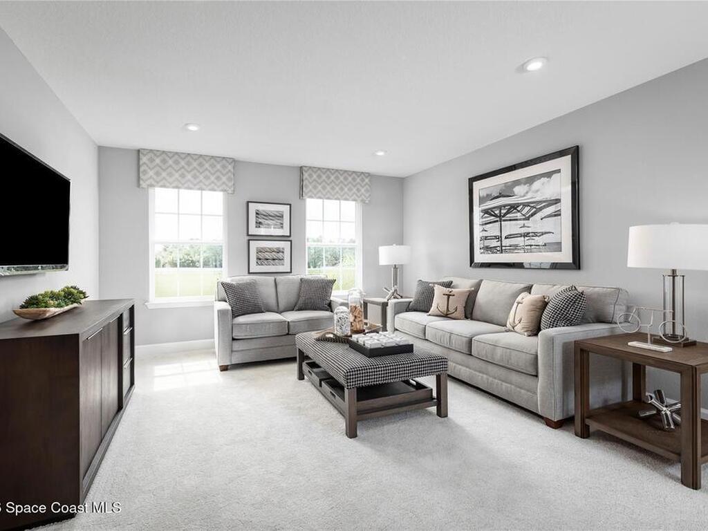 Brooks Landing. Close to area beaches, recreation & entertainment. Near Chain of Lakes Park, Indian River Lagoon, & Kennedy Space Center. The Lynn Haven single-family home lives up to expectations. Relax on your spacious front porch, then head inside, where you'll find a flex space that makes an ideal den, or add doors for a quiet study. Your foyer leads to the open family room and gourmet kitchen with an island, where favorite meals and memories will be made. Enjoy outdoor living on your extended lanai, and store seasonal items in your three-car garage. There's even more to love upstairs with a loft, three bedrooms, and a full bath. In your owner's suite, enjoy double vanities and a walk-in closet. WIFI-enabled garage opener and Ecobee thermostat. STOCK PHOTOS, PRICES SUBJECT TO CHANGE. Closing costs assistance with use of Builder's affiliated lender.