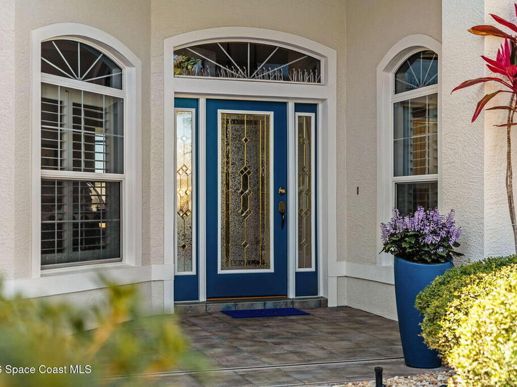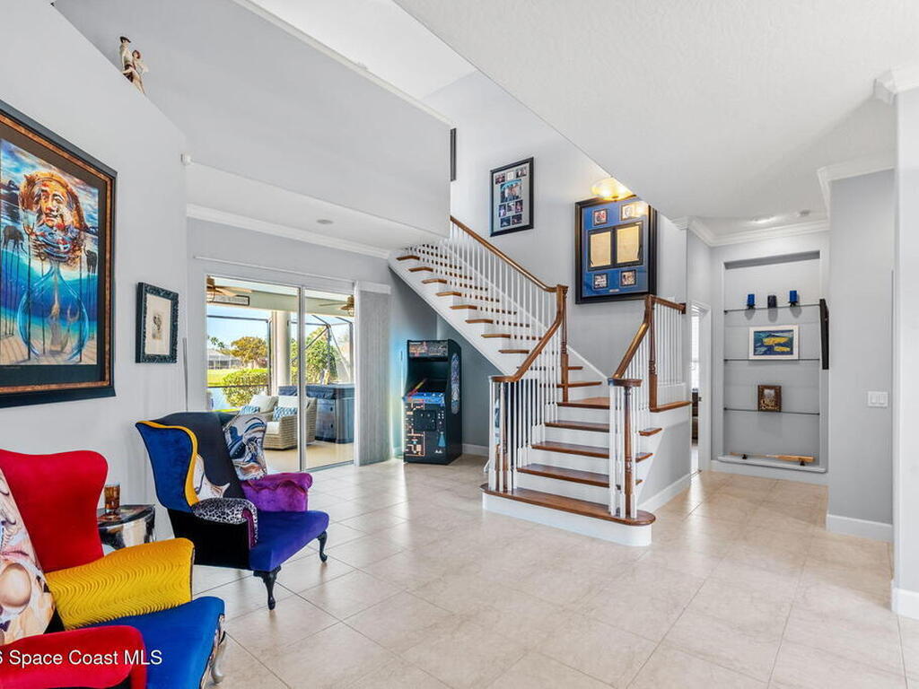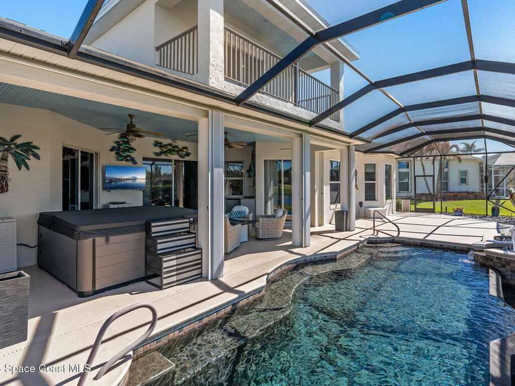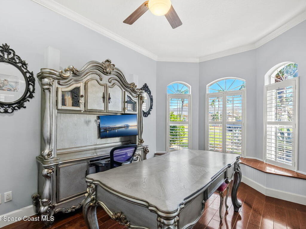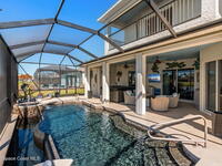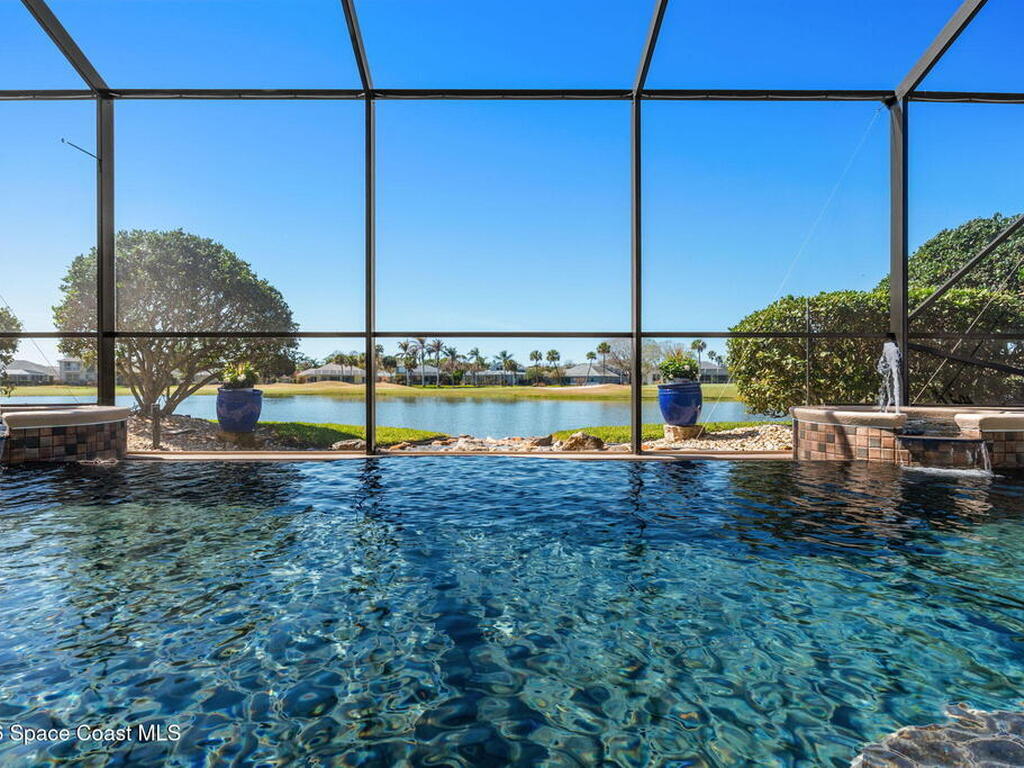 WELCOME to this STUNNING Merritt Island Golf Course Residence! A custom-built home that encompasses the best of impressive upgrades & builder touches. Tour this elegant 3 BED 2.5 BATH PLUS a private Office home that is beautifully appointed with soaring ceilings, a Chef's Kitchen, grand primary bedroom with 2 walk in closets with one transformed to a safe room. The spacious floor-plan also allows a separate upstairs OFFICE LOFT, complete with MILLION DOLLAR VIEWS from the covered balcony, perfect for the family that may be working remotely from home! The three car garage boosts oversized garage doors and a split entrance. Bask in the Florida sunshine as you swim laps in the INFINITY POOL, complete with fountains & a stone waterfall. After enjoying dinner at the summer kitchen, end the evening by relaxing by the cozy fire. Perfect proximity to NASA, the Space Coast Beaches & Orlando. This gorgeous home is not to be missed!