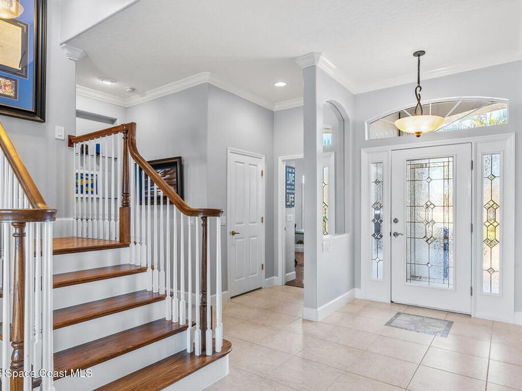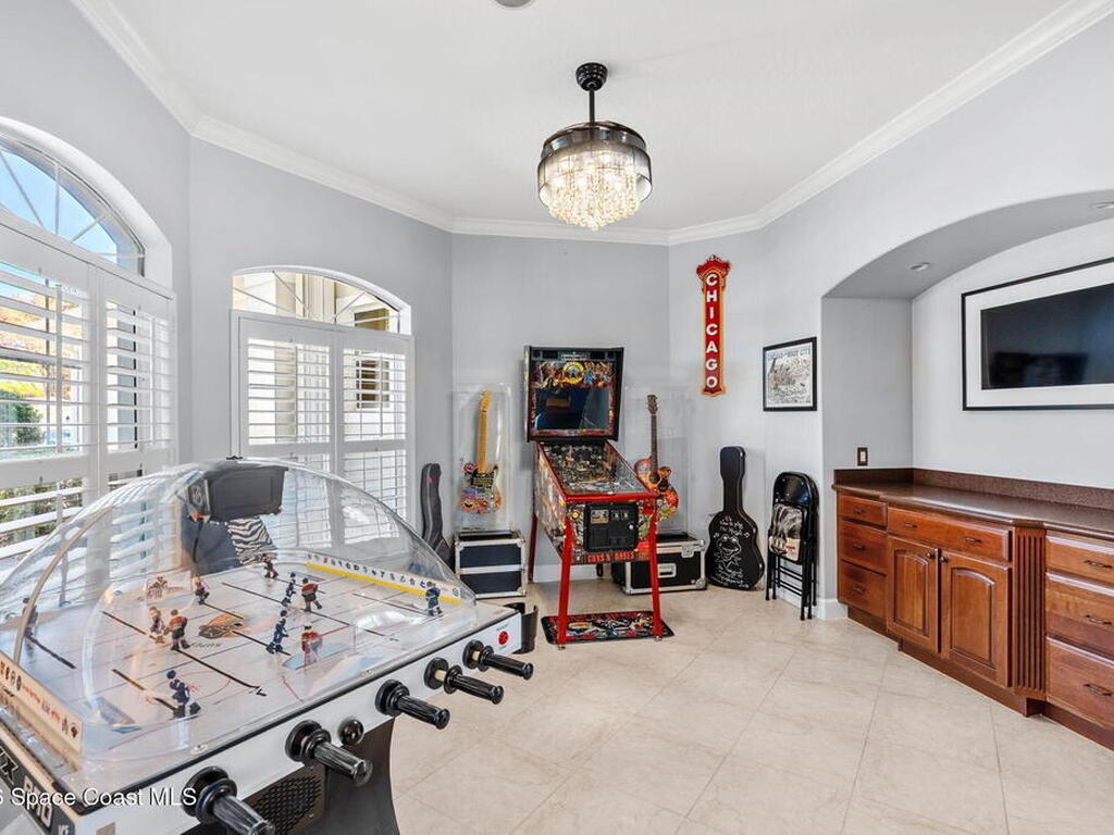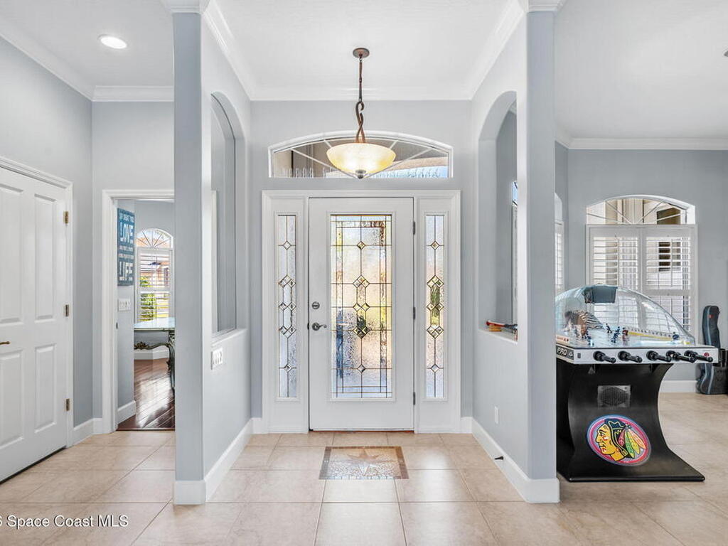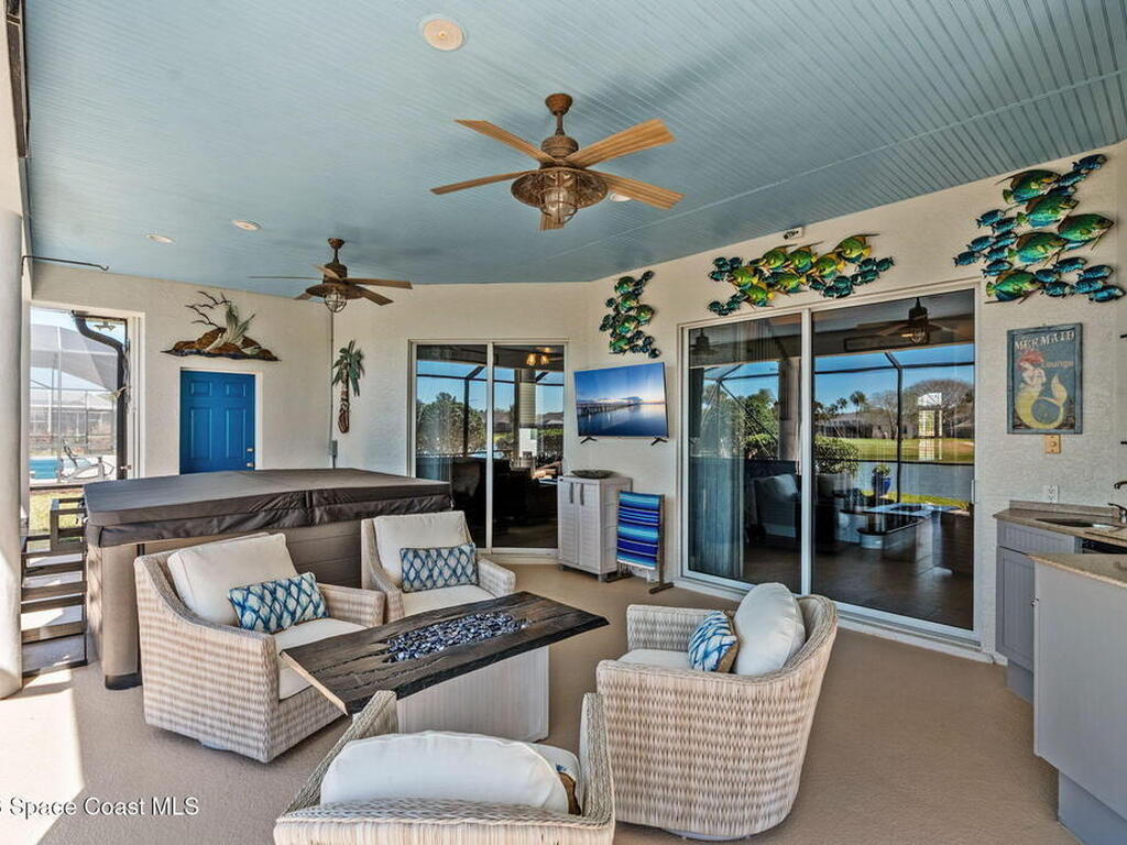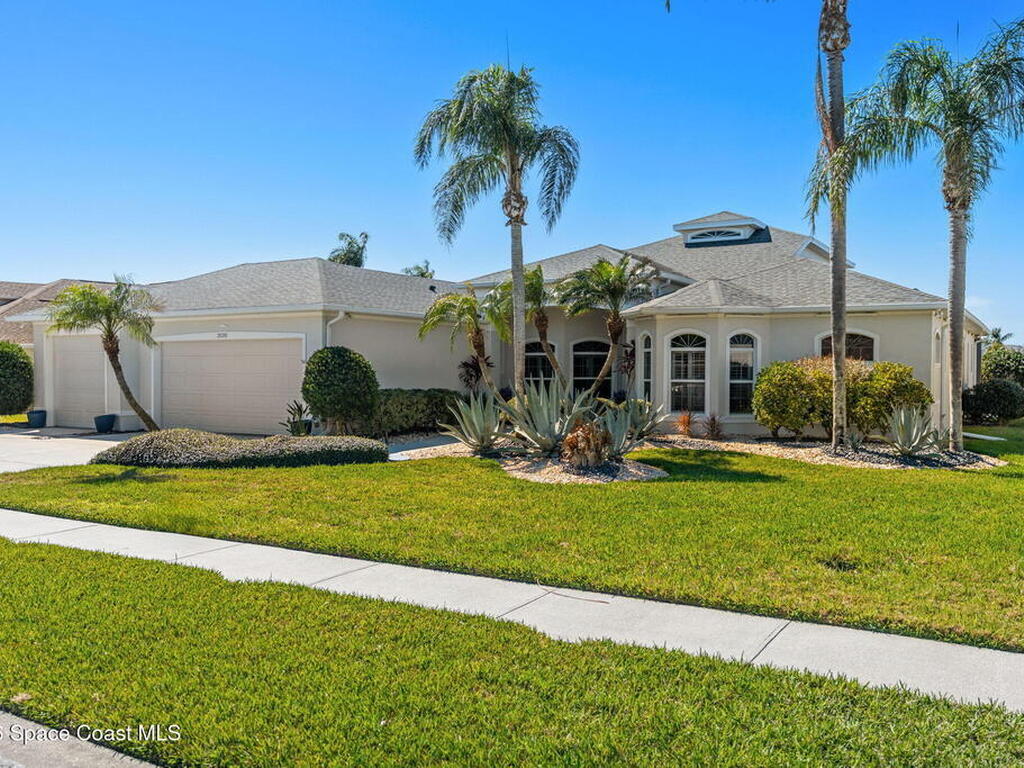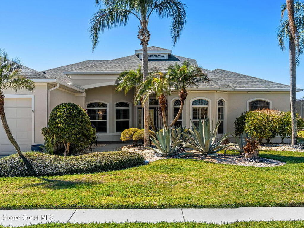 WELCOME to this STUNNING Merritt Island Golf Course Residence! A custom-built home that encompasses the best of impressive upgrades & builder touches. Tour this elegant 3 BED 2.5 BATH PLUS a private Office home that is beautifully appointed with soaring ceilings, a Chef's Kitchen, grand primary bedroom with 2 walk in closets with one transformed to a safe room. The spacious floor-plan also allows a separate upstairs OFFICE LOFT, complete with MILLION DOLLAR VIEWS from the covered balcony, perfect for the family that may be working remotely from home! The three car garage boosts oversized garage doors and a split entrance. Bask in the Florida sunshine as you swim laps in the INFINITY POOL, complete with fountains & a stone waterfall. After enjoying dinner at the summer kitchen, end the evening by relaxing by the cozy fire. Perfect proximity to NASA, the Space Coast Beaches & Orlando. This gorgeous home is not to be missed!