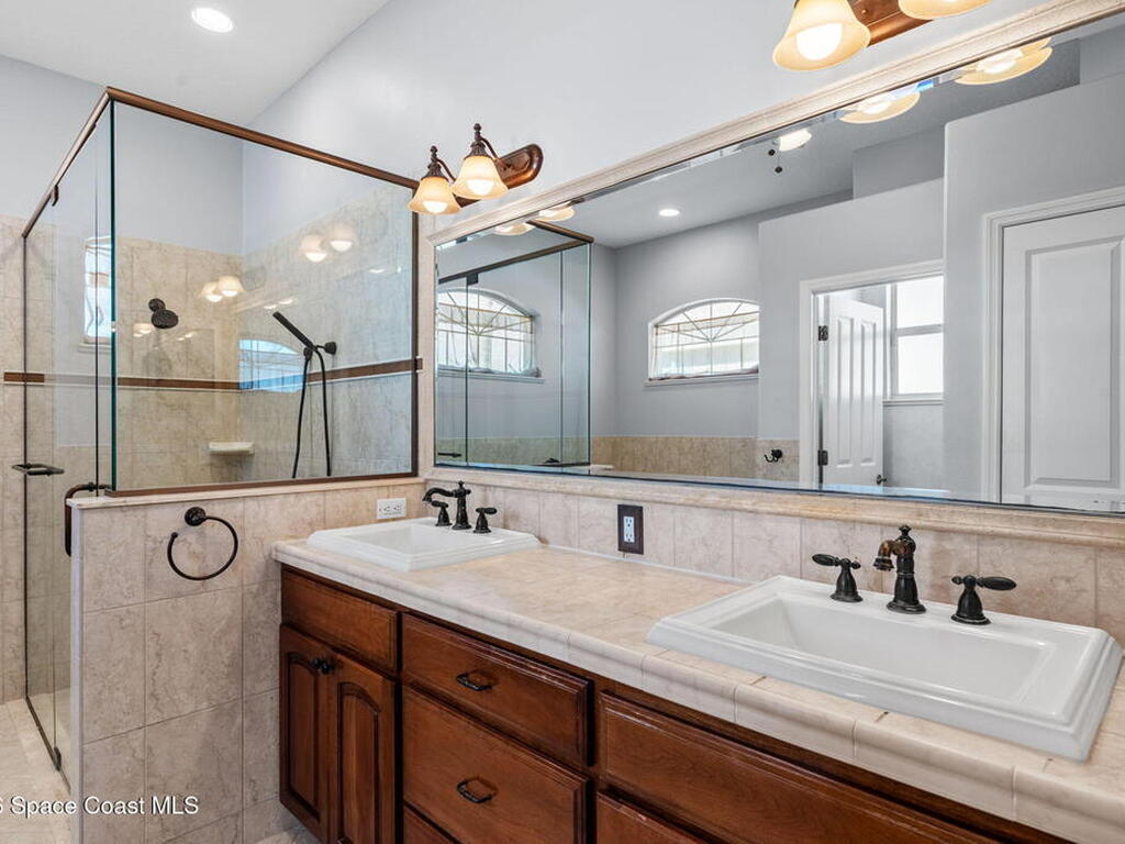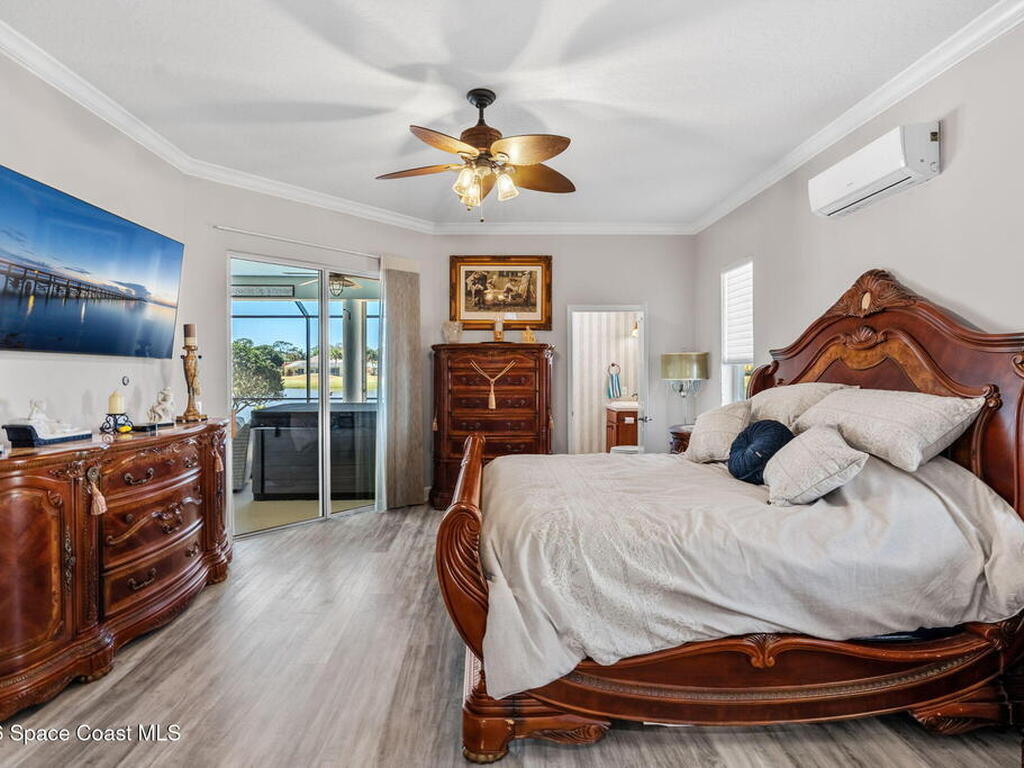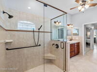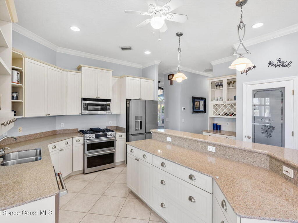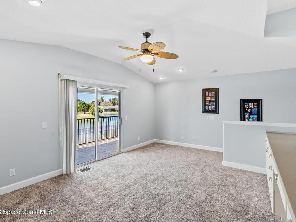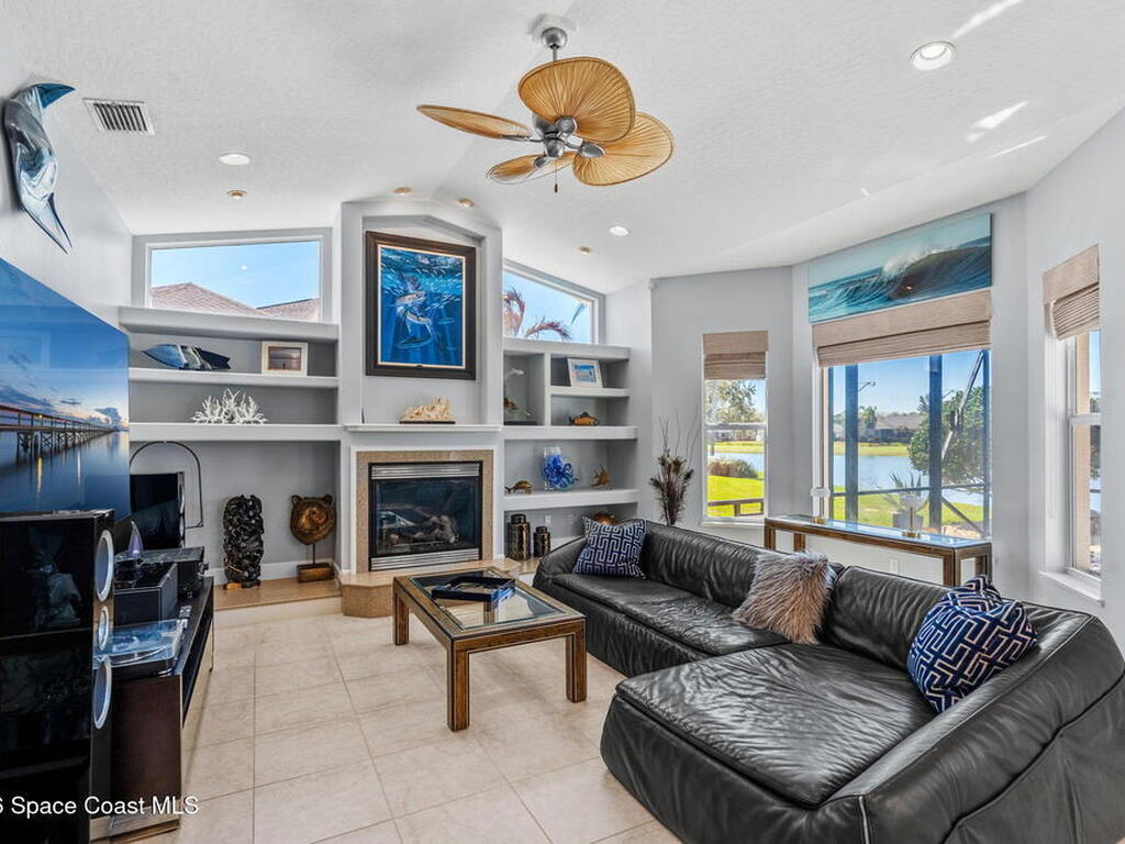 WELCOME to this STUNNING Merritt Island Golf Course Residence! A custom-built home that encompasses the best of impressive upgrades & builder touches. Tour this elegant 3 BED 2.5 BATH PLUS a private Office home that is beautifully appointed with soaring ceilings, a Chef's Kitchen, grand primary bedroom with 2 walk in closets with one transformed to a safe room. The spacious floor-plan also allows a separate upstairs OFFICE LOFT, complete with MILLION DOLLAR VIEWS from the covered balcony, perfect for the family that may be working remotely from home! The three car garage boosts oversized garage doors and a split entrance. Bask in the Florida sunshine as you swim laps in the INFINITY POOL, complete with fountains & a stone waterfall. After enjoying dinner at the summer kitchen, end the evening by relaxing by the cozy fire. Perfect proximity to NASA, the Space Coast Beaches & Orlando. This gorgeous home is not to be missed!