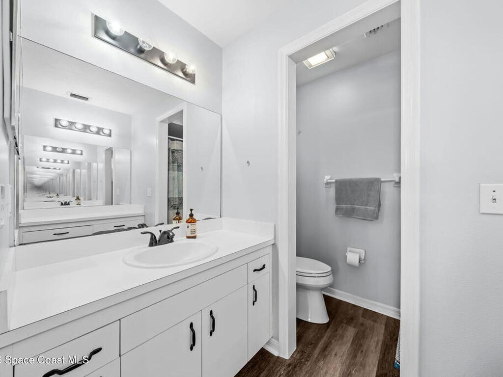 Located in a quiet Viera neighborhood, this home offers comfortable, convenient Florida living. The open living area features an eat-in kitchen and durable luxury vinyl plank flooring throughout. The spacious primary suite includes a walk-in closet and walk-in shower, and the fully updated guest bathroom adds modern appeal.Impact windows were installed in 2020 for added protection and efficiency. Enjoy the screened-in porch and private backyard for outdoor relaxation. The refrigerator, washer, and dryer all convey with the home.The community includes walking trails, lakes, and a playground. Just minutes from shopping, dining, A-rated schools, and only three minutes to I-95, this location makes commuting to Orlando and around Brevard County easy.Tour this one and make it yours!