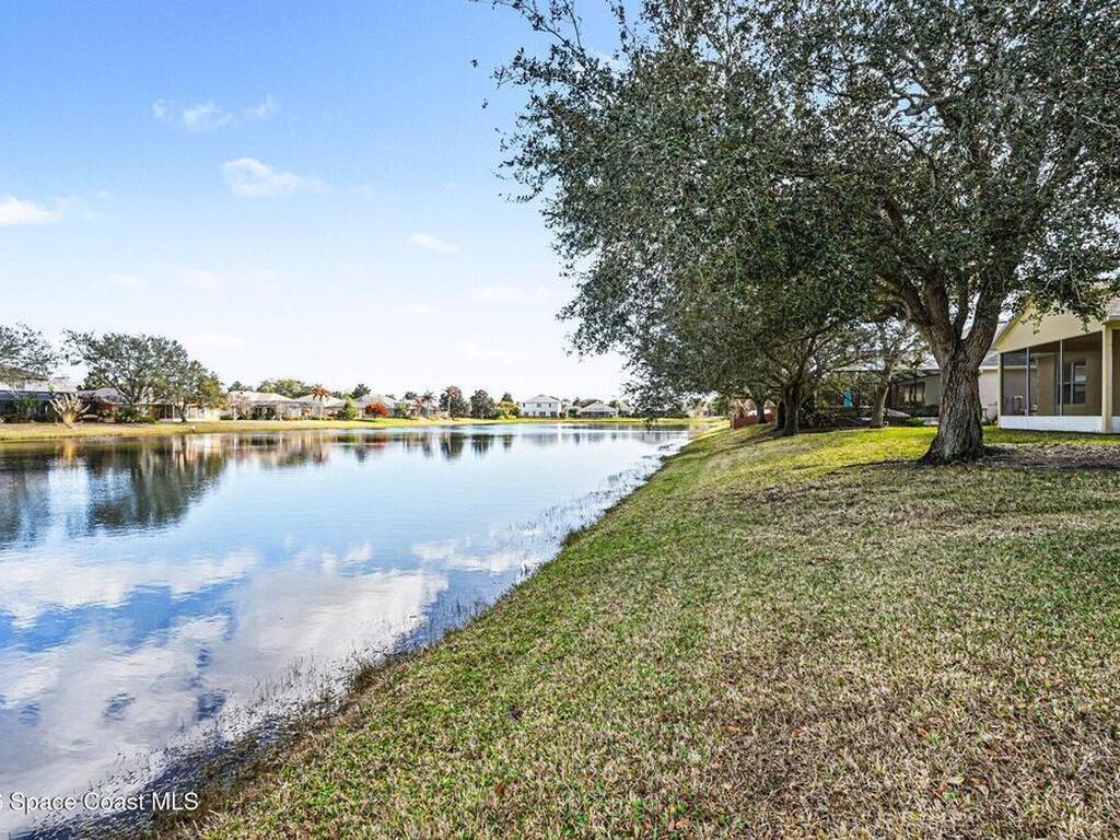 Beautifully maintained home with low annual HOA fees and numerous recent updates! Freshly painted inside and out -- including garage walls and floor -- this move-in ready property features new LVP flooring in the formal dining room, ceiling fans in every room, and a convenient inside laundry room. The open family room flows seamlessly from the kitchen, showcasing stainless steel appliances, Corian countertops, oak cabinetry with an island, abundant storage, recessed lighting, and a walk-in pantry. The spacious owner's suite offers dual sinks, a walk-in closet, glass shower, and relaxing Roman tub. Step outside to a large screened and covered lanai overlooking a tranquil neighborhood pond with fresh mulch and beautiful Oak tree. Major systems -- roof, HVAC, and water heater -- are all newer than fall of 2024. This home is located in Sandhill Trace in desirable Grand Haven off the Pineda Extension and perfect for I-95 travel, the new Costco, grocery markets, and other daily conveniences.