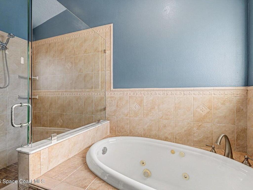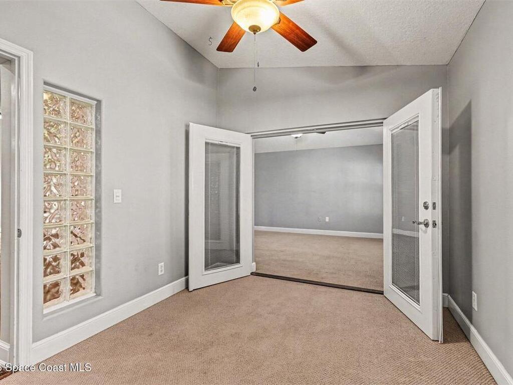 Spacious 3 bedroom, 2 bath townhome with private lot just steps from the beach, offering comfortable coastal living in a well-maintained 2006 construction. High vaulted ceilings and generous living areas create an open, airy feel, while the kitchen features granite countertops and wood cabinetry. Windows throughout include built-in wooden blinds for added style and convenience. The primary suite offers dual his-and-hers closets, an en-suite bath with a sunken tub, separate shower and vanity, plus an attached office ideal for remote work or flex space. Recent updates include 2021 HVAC, 2023 water heater. Feel secure. Built with comfort & resilience in mind, the home features a metal roof & hurricane shutters that adds peace of mind. The spacious backyard provides plenty of room for outdoor living with potential space for a future pool. No HOA. Located in desirable Satellite Beach near the ocean, shopping, dining, and local conveniences.