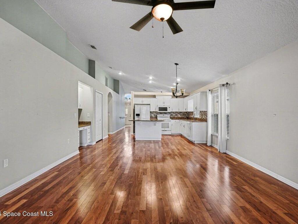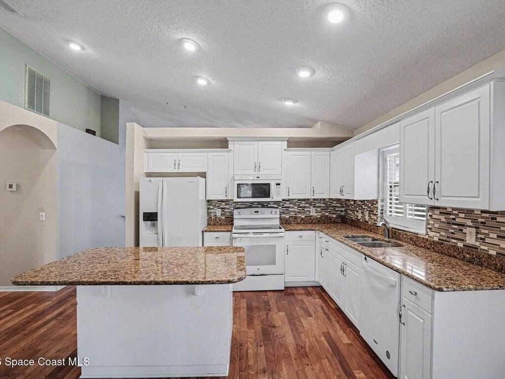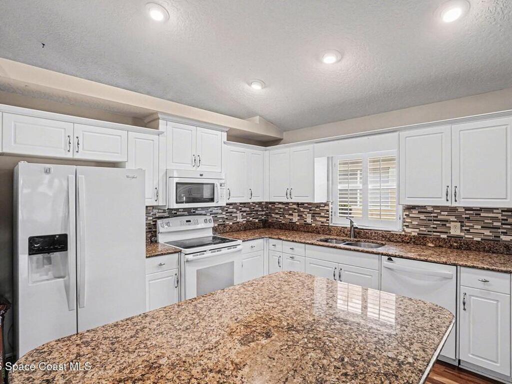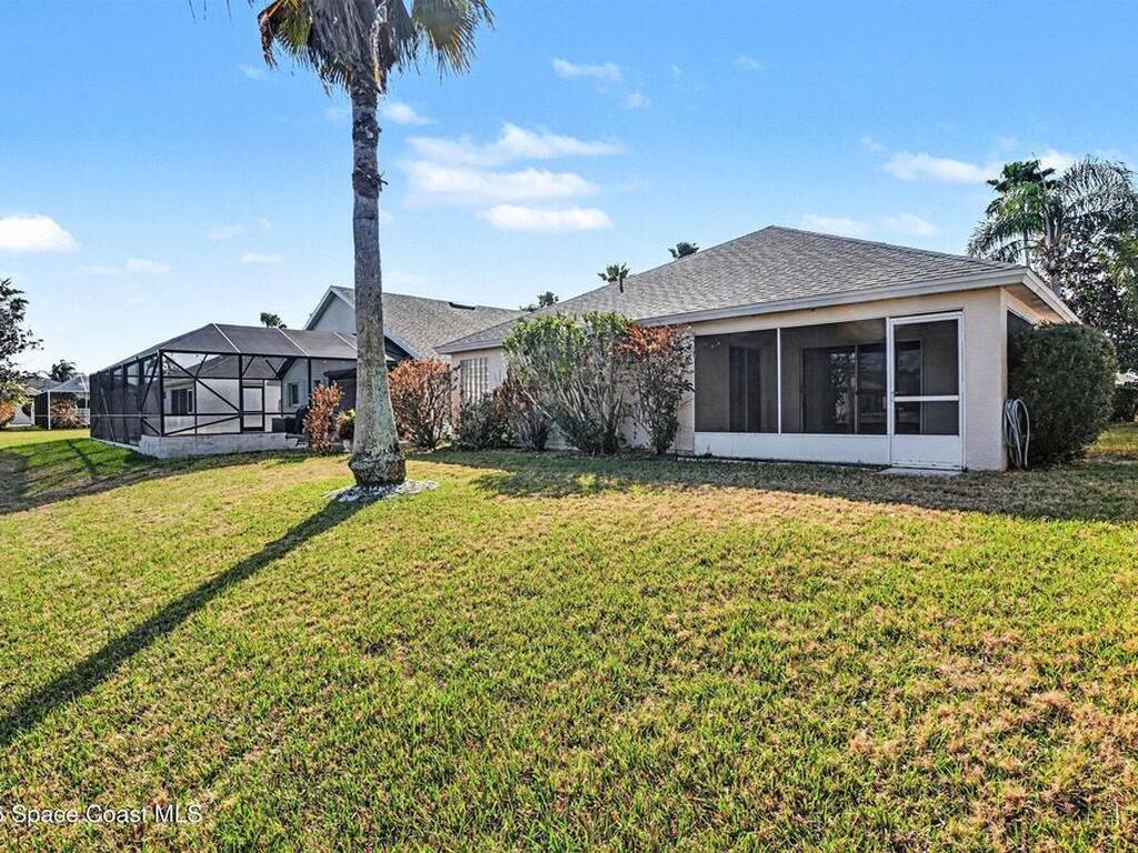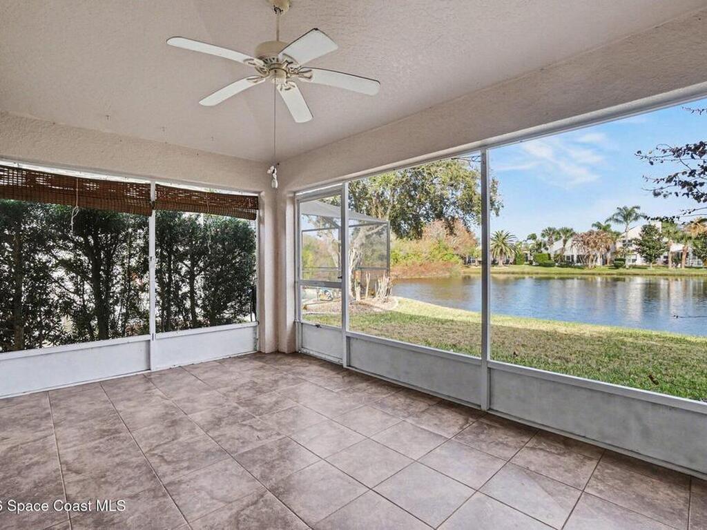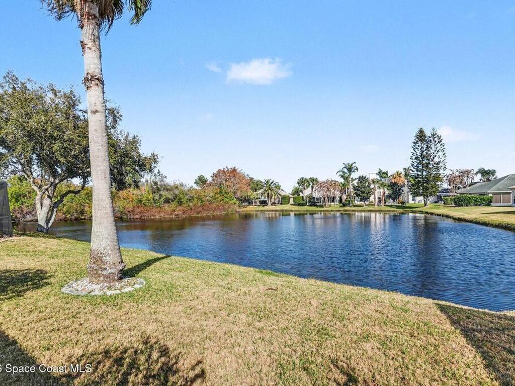Located in the highly sought-after Misty Creek community of Suntree, this well-maintained 3BR/2BA waterfront home offers a desirable floor plan with two separate living areas, providing flexible space for everyday living and entertaining. The open kitchen features granite countertops, an island with seating, and ample cabinetry, flowing seamlessly into the main living space.Sliding glass doors lead to a screened back porch overlooking the tranquil lake--perfect for relaxing and enjoying the water views. The private primary suite includes a versatile bonus flex space ideal for a home office, sitting area, nursery, or workout room, with direct access to the porch. Spacious en-suite bath and generous closet space complete the retreat. Two additional bedrooms and full guest bath are located on the opposite side for added privacy. Interior laundry includes a gas dryer. Roof 2016, A/C 2023. Community pool. Enjoy waterfront living!