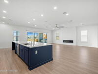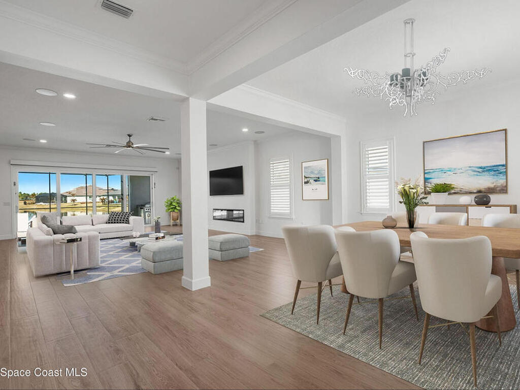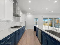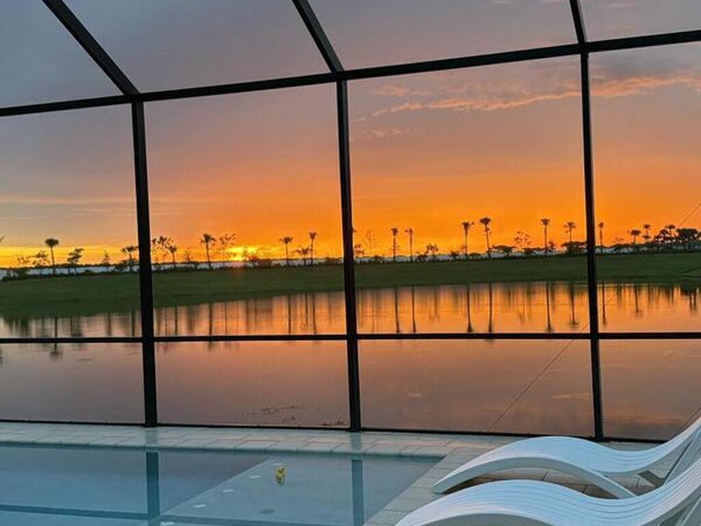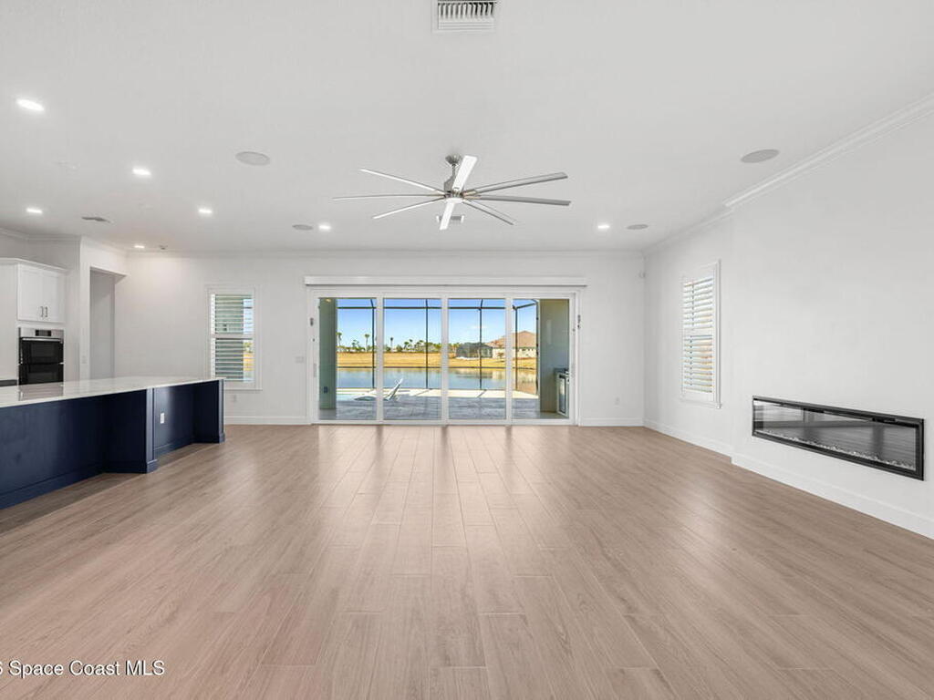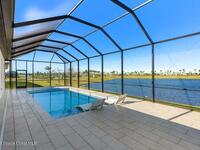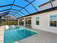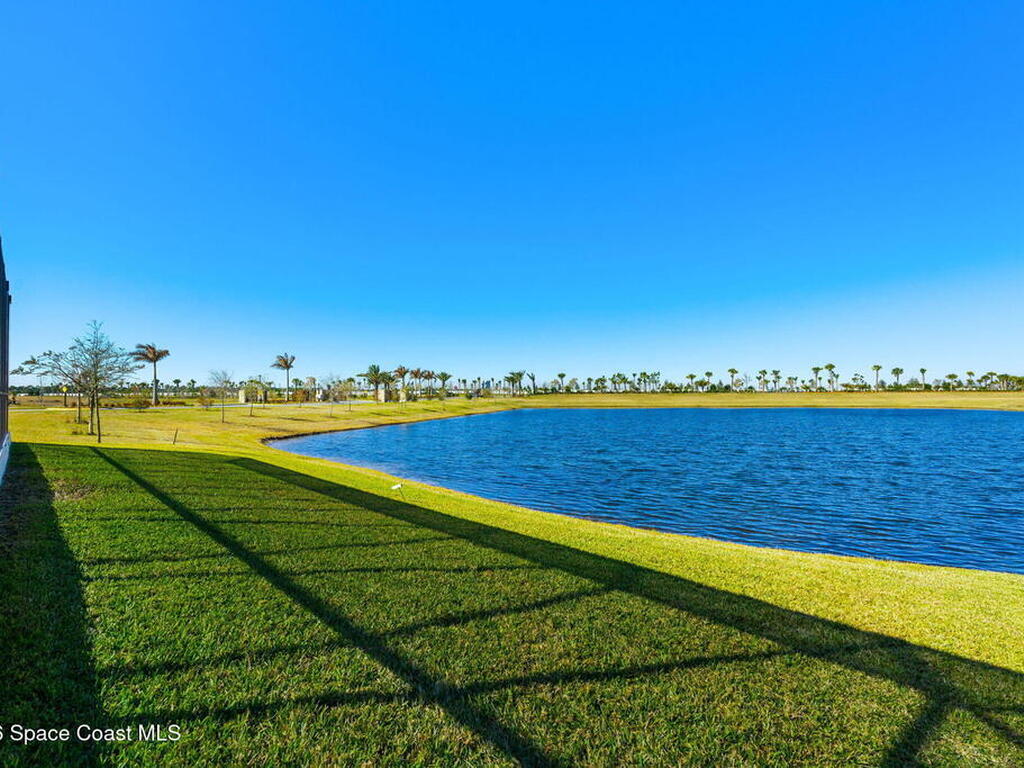 Beautiful, luxury home in Laurasia Viera's newest upscale community. Spectacular water views from this very open floor plan: heated salt water pool surrounded by spacious paver deck, covered lanai, summer kitchen, granite counters & grill. Upgrades:impact windows & sliders, plantation shutters, electric blinds for sliders, ceiling fans, surround sound inside & out, designer ceramic tile flooring. Gourmet kitchen:breathtaking 14 ft Cambria island & countertops, tons of cabinets, tile backsplashes, stainless steel appliances, opens to a huge living room with electric fireplace, TV hookup & spacious dining room. Dreamy primary bedroom; custom closet, bath in clean white: ample cabinets, double sink counter, luxurious tiled walk-in shower with glass panels. Just off the main area 2nd bedroom/office & bathroom.3rd bedroom, bath & custom closets. Downstairs laundry. UPSTAIRS:oversized bonus room, bedroom, full bath, closet, storage space. Too many upgrades to list, Come live the dream.