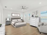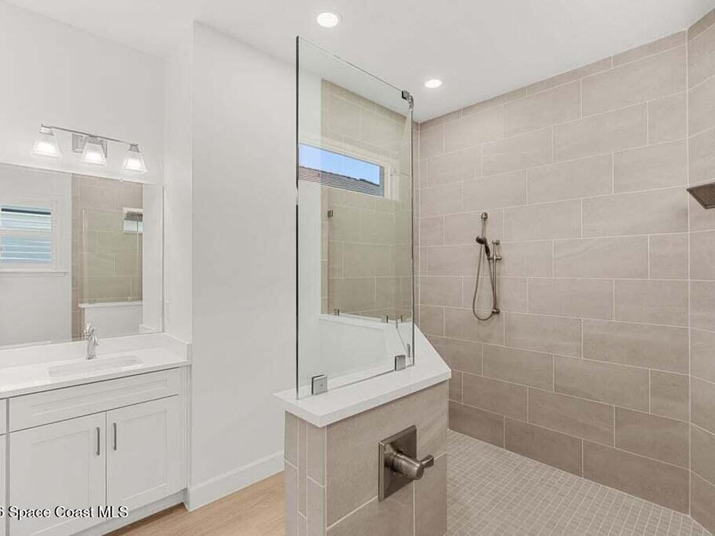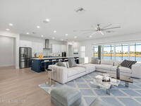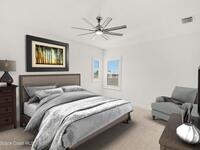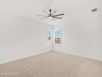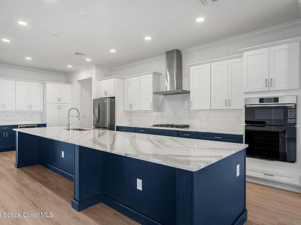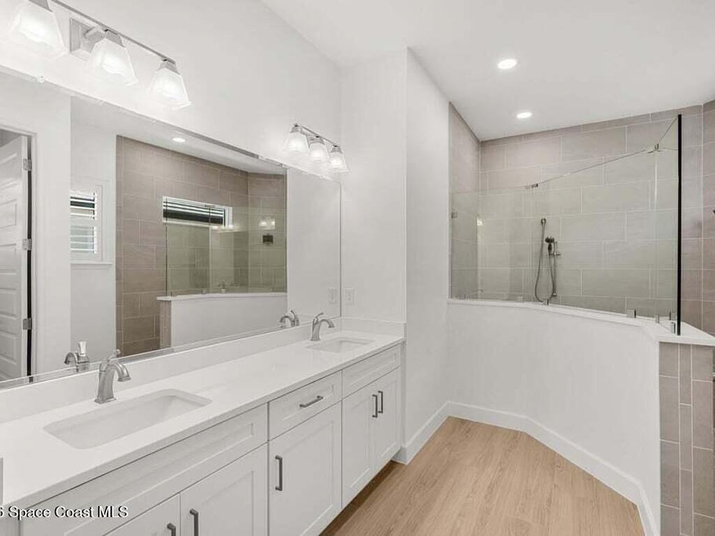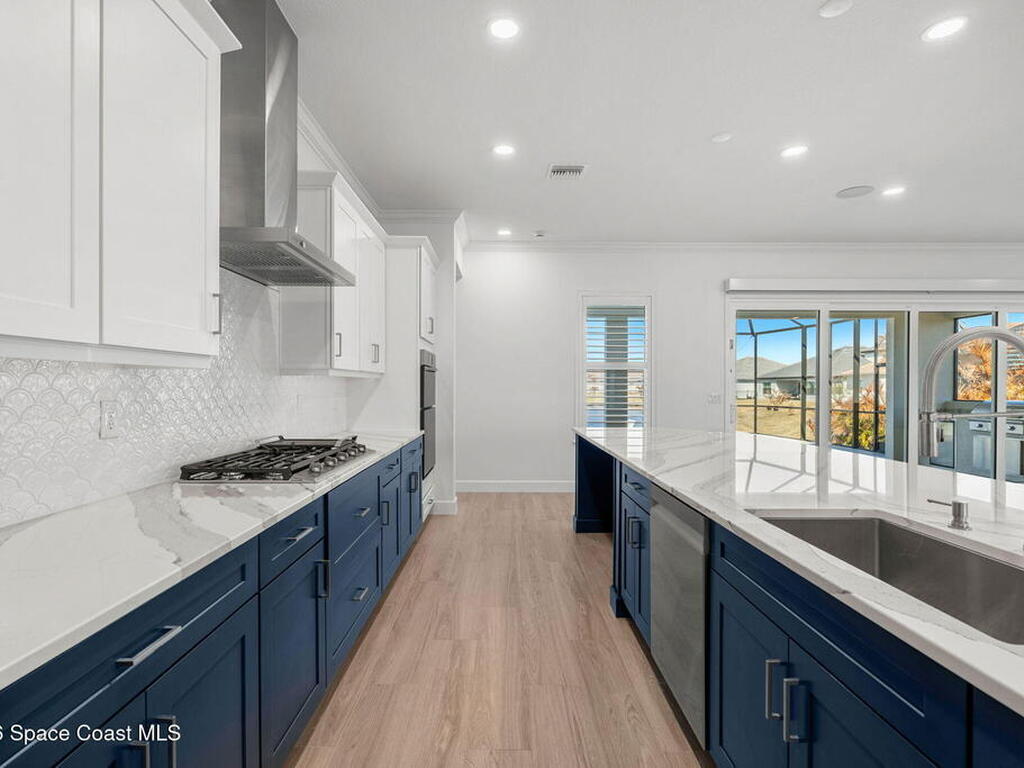 Beautiful, luxury home in Laurasia Viera's newest upscale community. Spectacular water views from this very open floor plan: heated salt water pool surrounded by spacious paver deck, covered lanai, summer kitchen, granite counters & grill. Upgrades:impact windows & sliders, plantation shutters, electric blinds for sliders, ceiling fans, surround sound inside & out, designer ceramic tile flooring. Gourmet kitchen:breathtaking 14 ft Cambria island & countertops, tons of cabinets, tile backsplashes, stainless steel appliances, opens to a huge living room with electric fireplace, TV hookup & spacious dining room. Dreamy primary bedroom; custom closet, bath in clean white: ample cabinets, double sink counter, luxurious tiled walk-in shower with glass panels. Just off the main area 2nd bedroom/office & bathroom.3rd bedroom, bath & custom closets. Downstairs laundry. UPSTAIRS:oversized bonus room, bedroom, full bath, closet, storage space. Too many upgrades to list, Come live the dream.