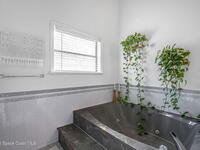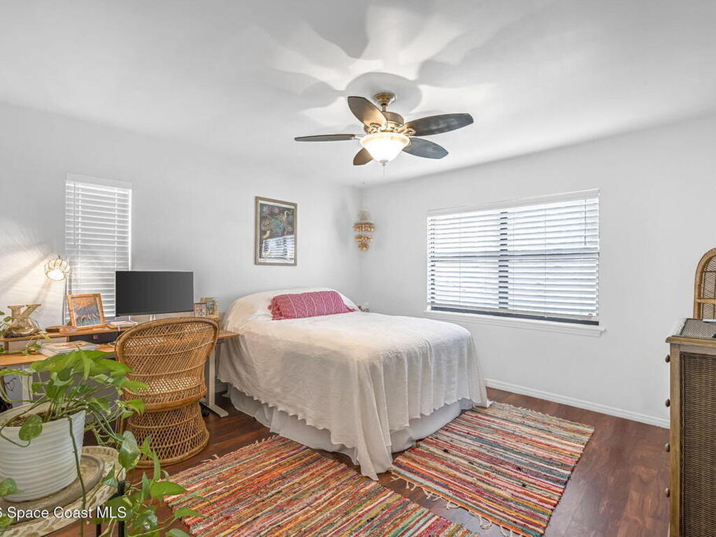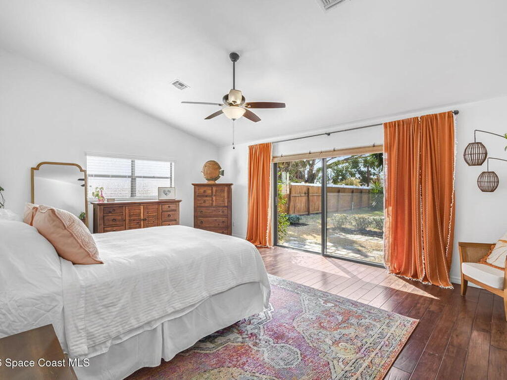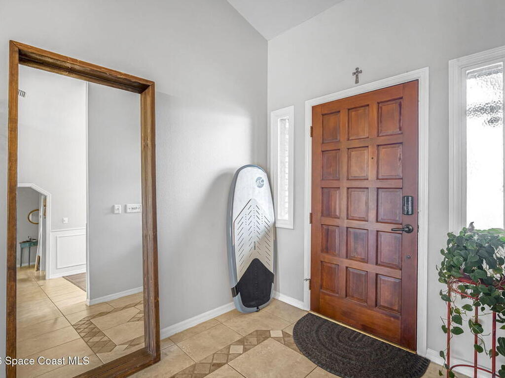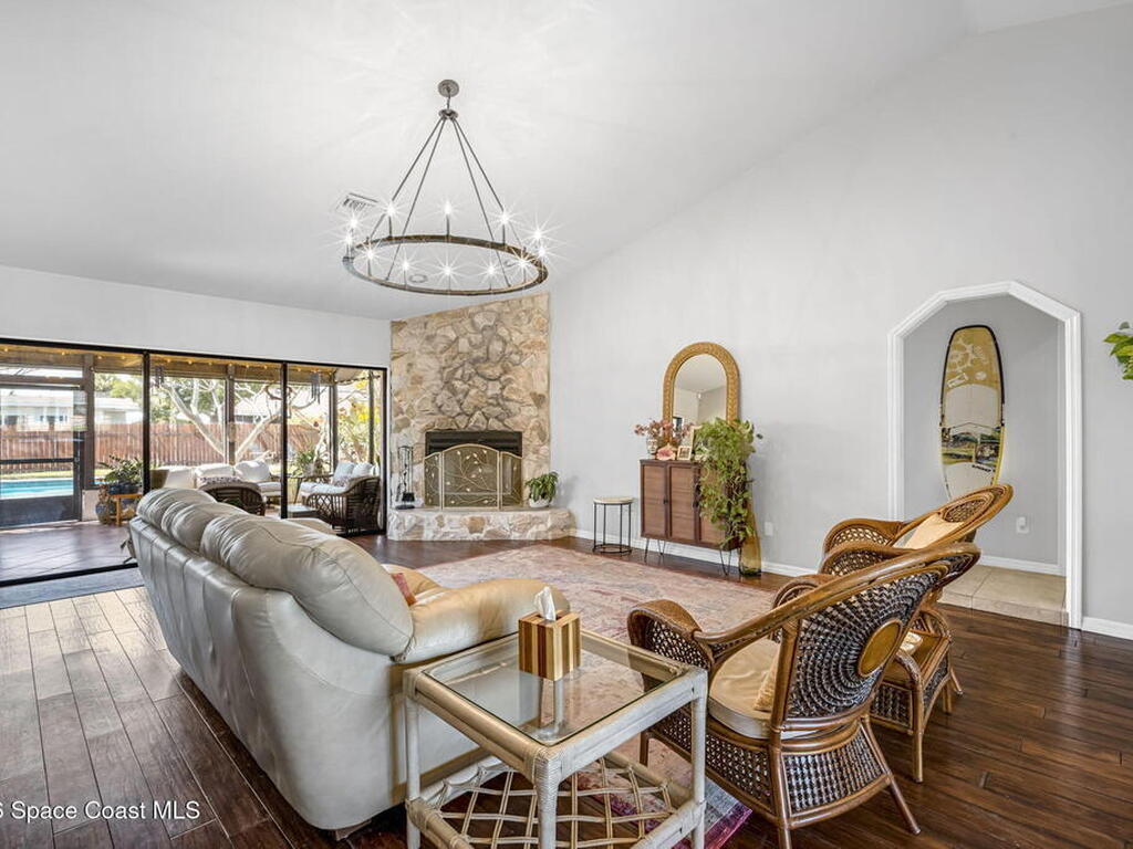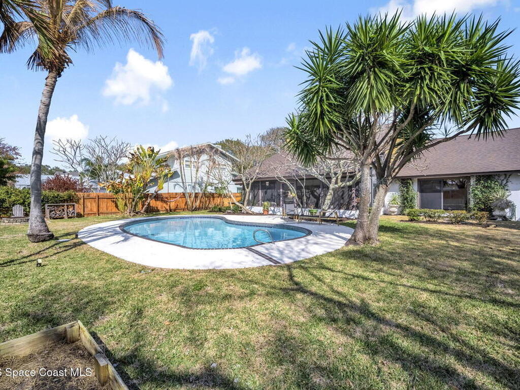 Still showing for backup offers . . .Beautifully built 3-bedroom, 2-bath pool home located on a quiet cul-de-sac, just four blocks from the beach and minutes from downtown Cocoa Beach. Zoned for top-rated schools, this home offers an ideal combination of comfort, location, and long-term value. A brand-new roof and fresh exterior paint provide peace of mind and a move-in-ready feel, while vaulted ceilings and a light-filled split floor plan create an open, functional layout designed for privacy and everyday living. Inside, the home features a stone fireplace, quality wood flooring, and tile throughout. The kitchen offers ample cabinet and counter space and opens to a breakfast nook with views of the pool and newly landscaped backyard. The primary suite includes a jetted tub, walk-in shower, and walk-in closet. With no HOA restrictions and included plans for an attached ADU, this property offers excellent flexibility for income.