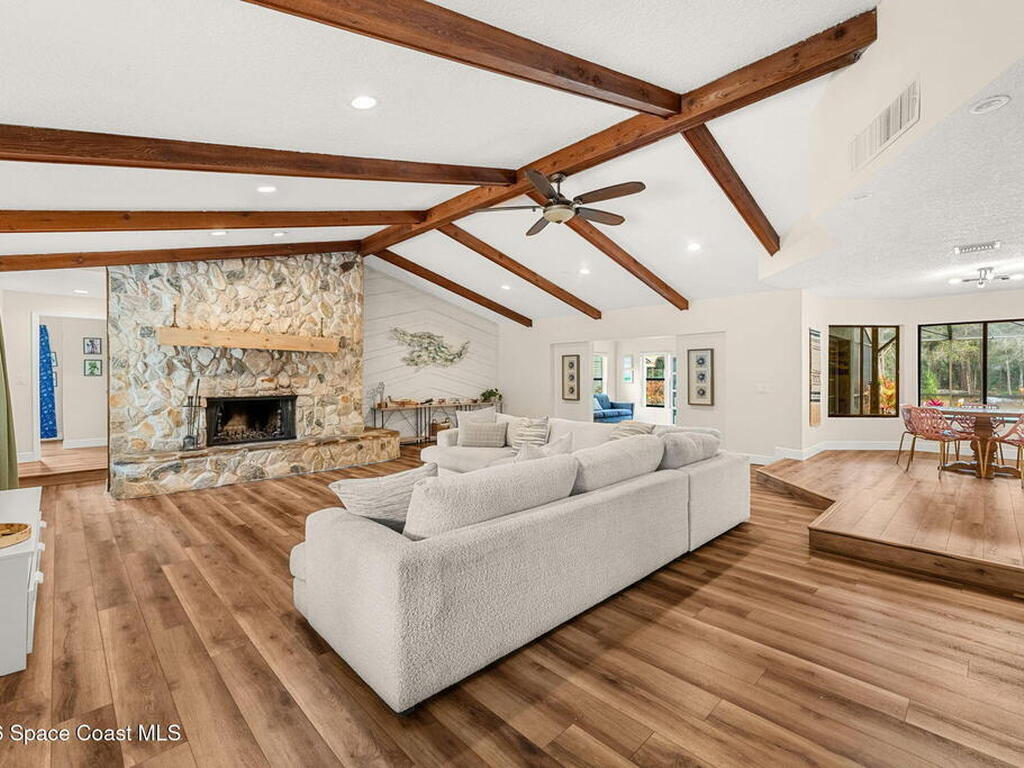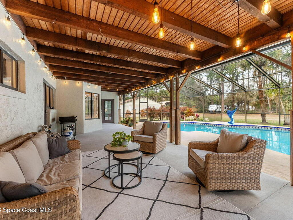 MOVE-IN READY- Single-family home- with a PRIVATE POOL and a large screen enclosed pool area. Situated on a large 1.45-acre lot- this home offers 3 bedrooms, 2 full baths, 2 garages and 1 carport- an attached 2-car garage, a detached 2-car garage/workshop. Plenty of ROOM FOR RV AND BOAT STORAGE.The home includes multiple living areas with a spacious living room, separate family room, and an updated kitchen that opens to the main living spaces. Interior features include vinyl plank flooring, granite countertops, a walk-in closet, and a wood-burning fireplace.Major updates include: 2020 roof, 2025 AC, 2025 pool heater, two water heaters, and a 2025 whole-house water filtration system. Additional features include RV hookup with 30-amp service, a well for irrigation, and natural gas available for hookup.Conveniently located near Cocoa Beach, Viera, Brevard Zoo, the Kennedy Space Center, Melbourne and Orlando International Airports, Disney World, and other attractions.