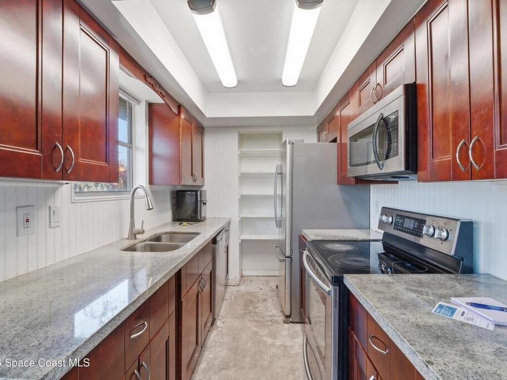 * Bed / bath: 3/2* Sq Ft: 1, 020* Kitchens: Has stainless steel oven, microwave and refrigerator. The counter tops are granite with cherry wood cabinets.* Bathrooms: The master has a standing shower and the guest bath has a tub/shower.* Plumbing replaced 5 years ago.