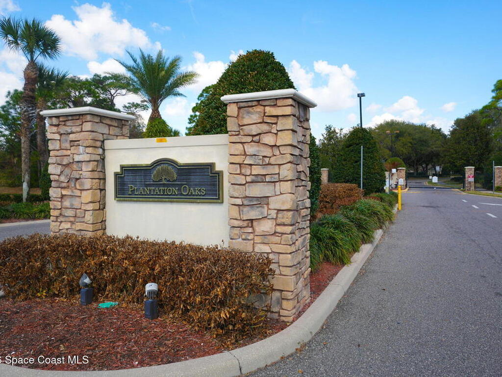 Behind the gates of Plantation Oaks, opportunity meets atmosphere. This 4-bedroom, 3-bath home sits confidently on a corner lot with space to spread out and a layout that simply makes sense. The split-bedroom design offers privacy where you want it, while vaulted ceilings create an open, airy feel from the moment you walk in. The kitchen island anchors the heart of the home - ideal for casual mornings, weeknight dinners, and gathering with friends. A blend of carpet, laminate, and tile adds comfort and functionality throughout. The primary suite features His and Hers closets and room to truly relax. Step outside to a large screened porch overlooking a fenced backyard - perfect for Florida evenings. And when launch day arrives, enjoy rocket views right from home!