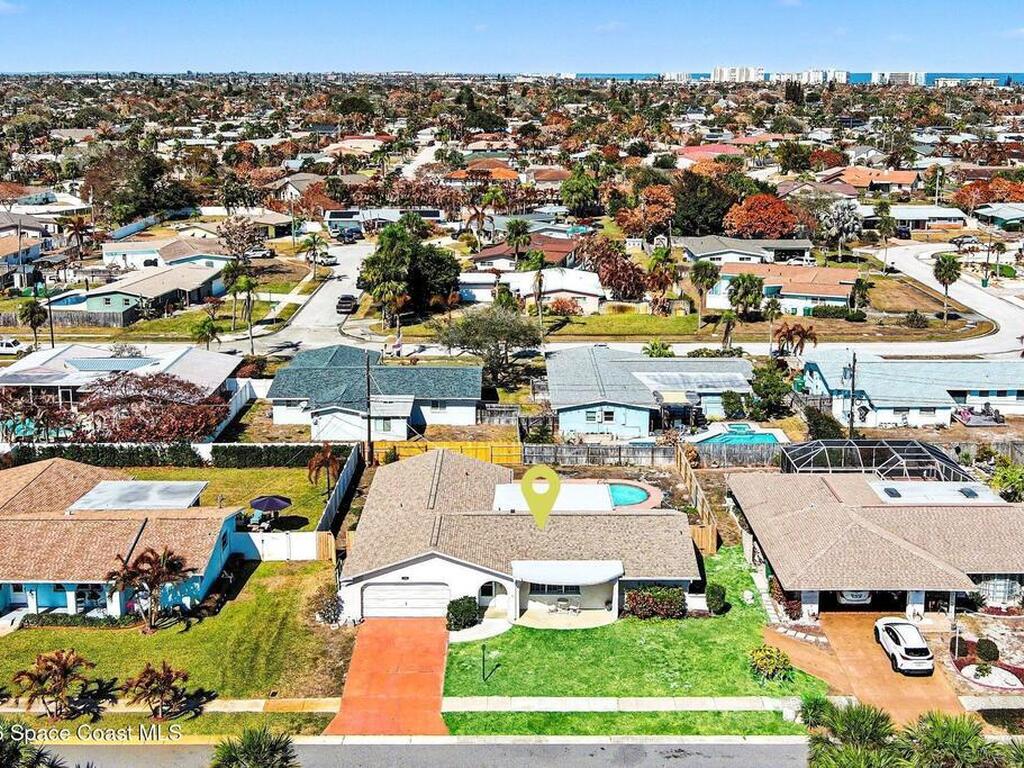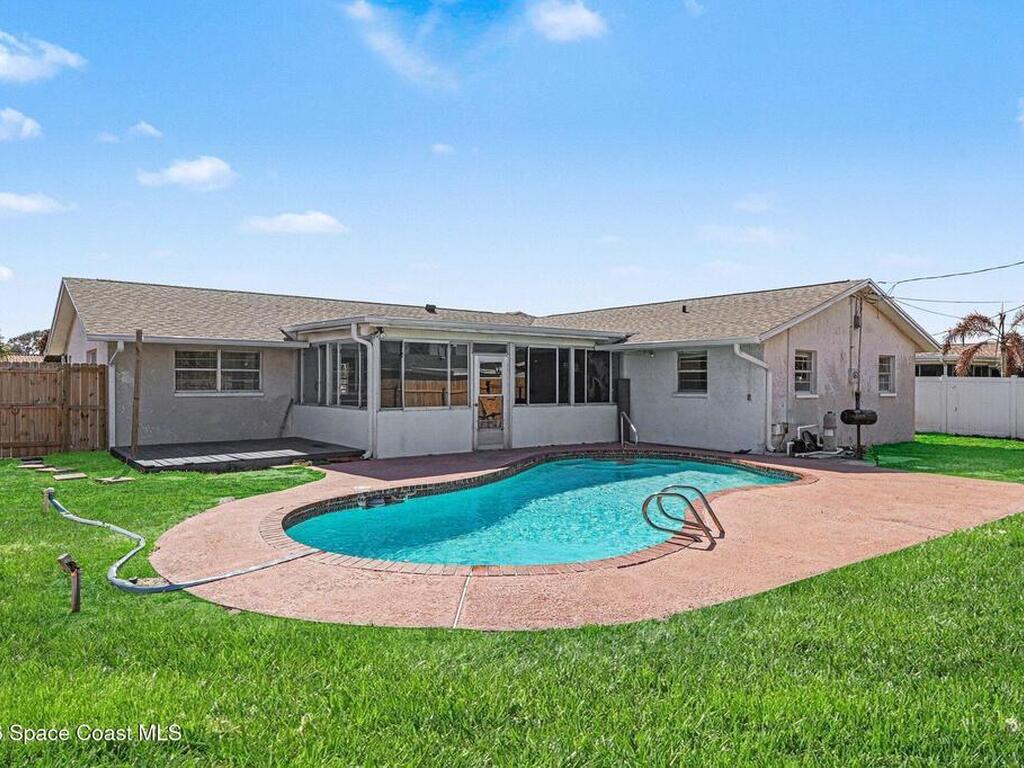 SPREAD OUT in this four-bedroom, two full bathrooms, two car garage, concrete block, pool home located in one of the most desirable neighborhoods in Satellite Beach.. and BTW, NO HOA! This classic ranch style, open, split bedroom plan is looking for a new owner and a little TLC. Step into the large living dining great room with sliders framing a large, covered patio overlooking the freeform pool perfect for family fun or entertaining! A separate family room off the kitchen with breakfast bar and nook area. Large, fenced backyard providing a multitude of relaxing days in the Florida sun. New roof in 2023, HVAC in 2021 and Water Heater in 2018. Located close to everything! Pristine beaches, Indian river access, great parks, A* rated schools, shopping, restaurants, DRS community center and the causeway. We both know this one won't last long.