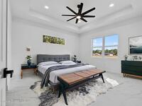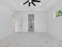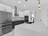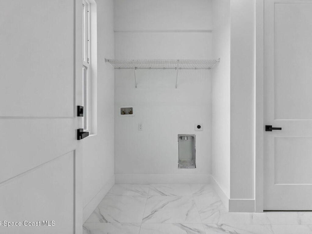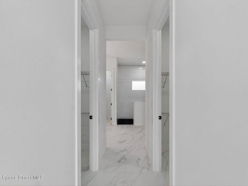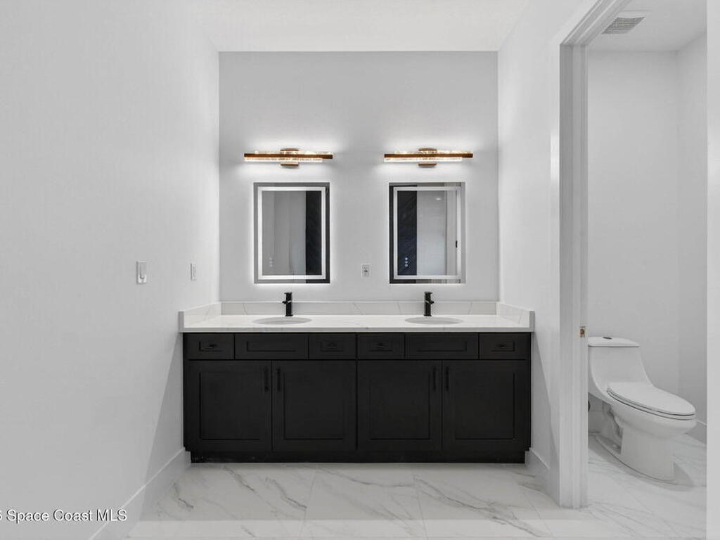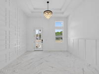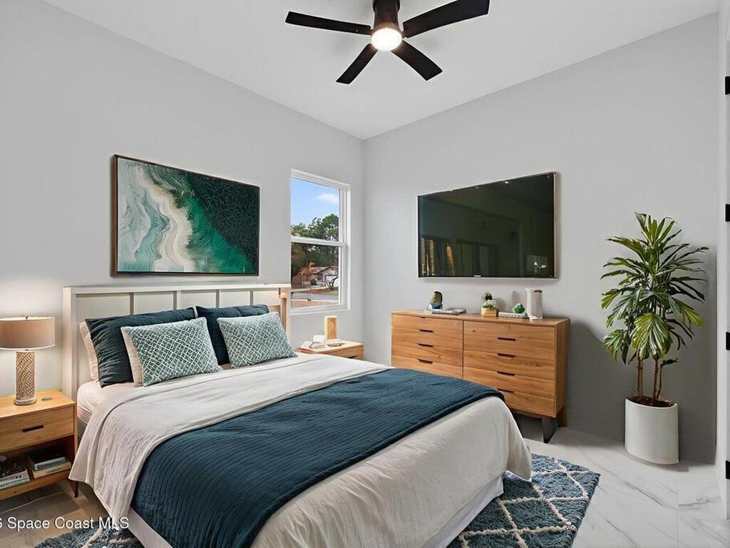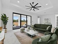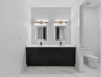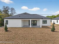A rare canal-front new construction offering elevated modern living in Northwest Palm Bay. This 2, 350 sq ft residence features true 10-foot ceilings with dramatic double tray details, creating a grand architectural presence. Designer 24'' x 24'' tile flooring flows seamlessly throughout, complementing the home's refined contemporary aesthetic.The gourmet kitchen features a wall oven and high end appliance package, ideal for entertaining and everyday living. The spa-inspired primary suite offers a freestanding soaking tub and spacious walk-in shower.Enjoy a covered patio overlooking the tranquil canal, providing privacy and a peaceful outdoor setting. Additional highlights include a luxury paver driveway, paver patio, smart lock system, Impact windows, and modern energy-efficient construction. A rare opportunity to own a thoughtfully designed canal-front residence built for comfort, prestige, and lasting value.