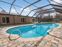 Fully renovated and truly move-in ready! A stunning double-sided stone fireplace is the centerpiece of the bright, open living and gathering areas, creating a warm and welcoming feel. The spacious layout and large rooms in this 4-bedroom home add comfort and a touch of everyday luxury. New vinyl plank flooring runs throughout, along with new ceiling fans, modern light fixtures, fresh paint, and updated baseboards. Step outside to enjoy the Florida lifestyle in your newly resurfaced, screened-in pool, surrounded by a brand-new paver deck--perfect for relaxing or entertaining. A new paver driveway adds great curb appeal to this solid concrete block home with Mediterranean style. Impact windows and freshly cleaned and sanitized air ducts provide added comfort. Conveniently located near shopping, dining, entertainment, and highly rated schools. Come, see it today, and make it yours.