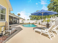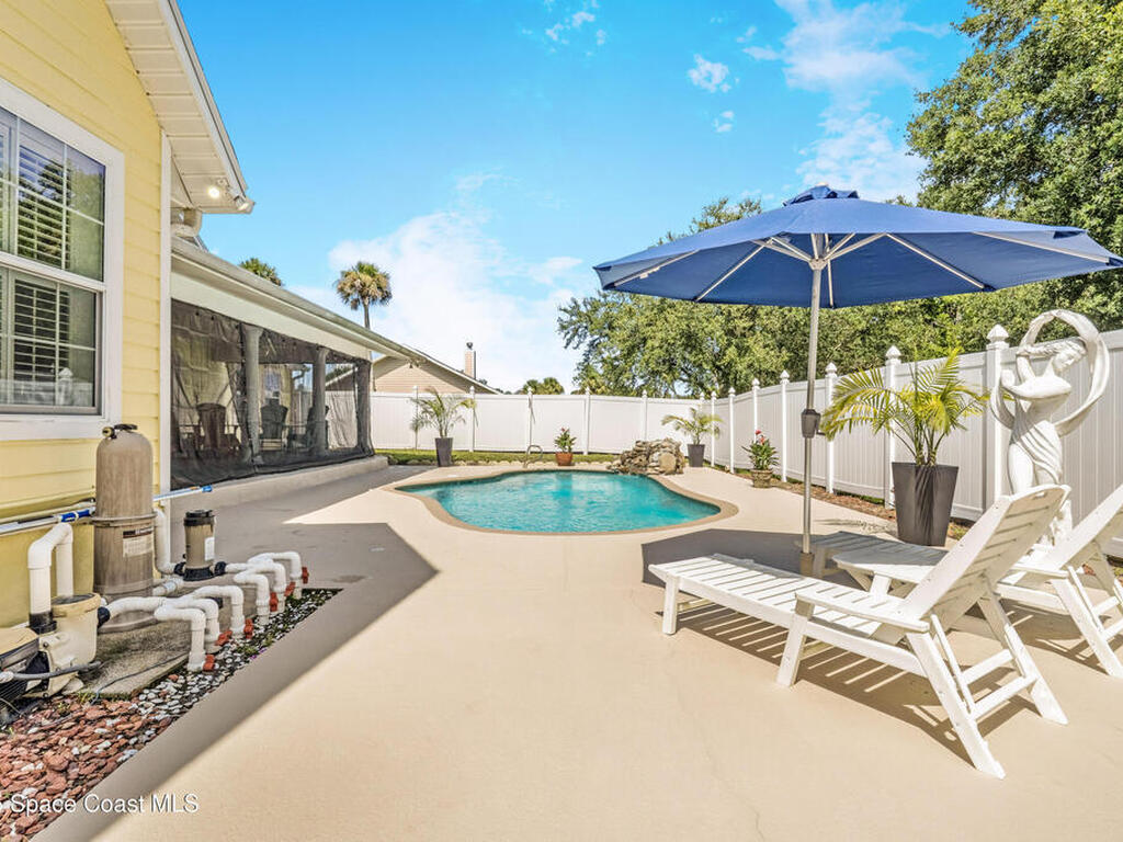This beautifully maintained home offers the perfect blend of comfort, style, and functionality. Featuring 3 spacious bedrooms, 3 updated baths, and a 422 sq. ft. bonus room upstairs that could easily serve as a 4th bedroom, this home is designed to meet your needs now and in the future. The heart of the home is the inviting kitchen, complete with maple cabinetry, Silestone countertops, a built-in wine cooler, and a cozy breakfast nook overlooking the sparkling pool. The expansive primary suite boasts a garden tub, separate shower, and walk-in closet, while the two guest rooms are generously sized for family or visitors. Step outside to your own private retreat. A resurfaced inground pool with waterproof speakers, and brand-new cool decking. The porch w/screening offers a built-in cabinet with icemaker and LED lighting, creating the perfect entertaining space. Roof 12/23, Water heater 2022, Trane A/C 1/20. Covered RV parking w/ 50 amp receptacle for hookup.