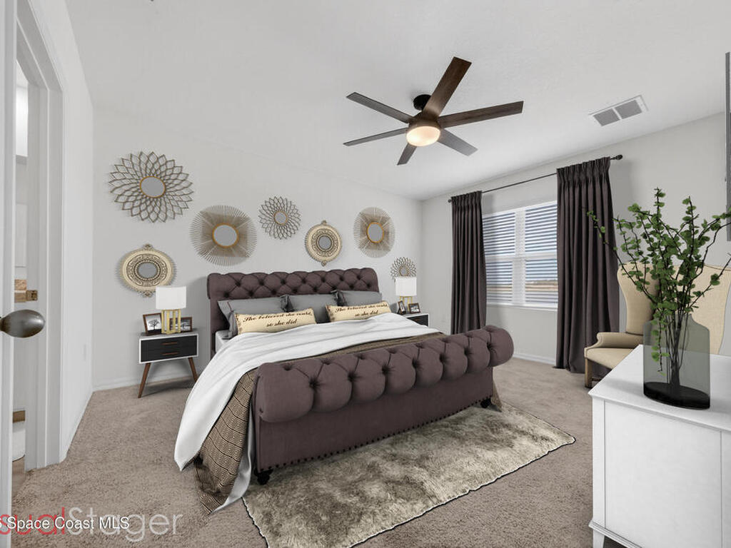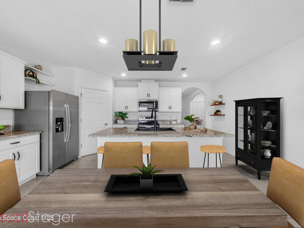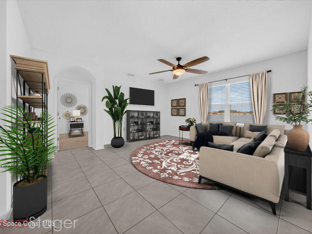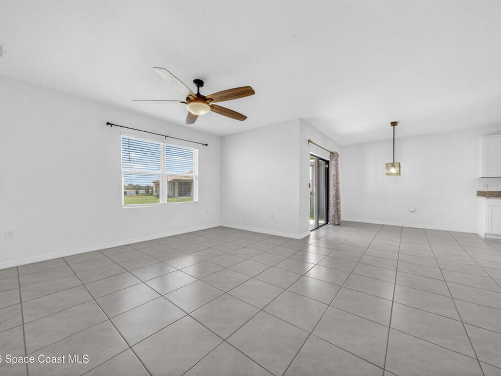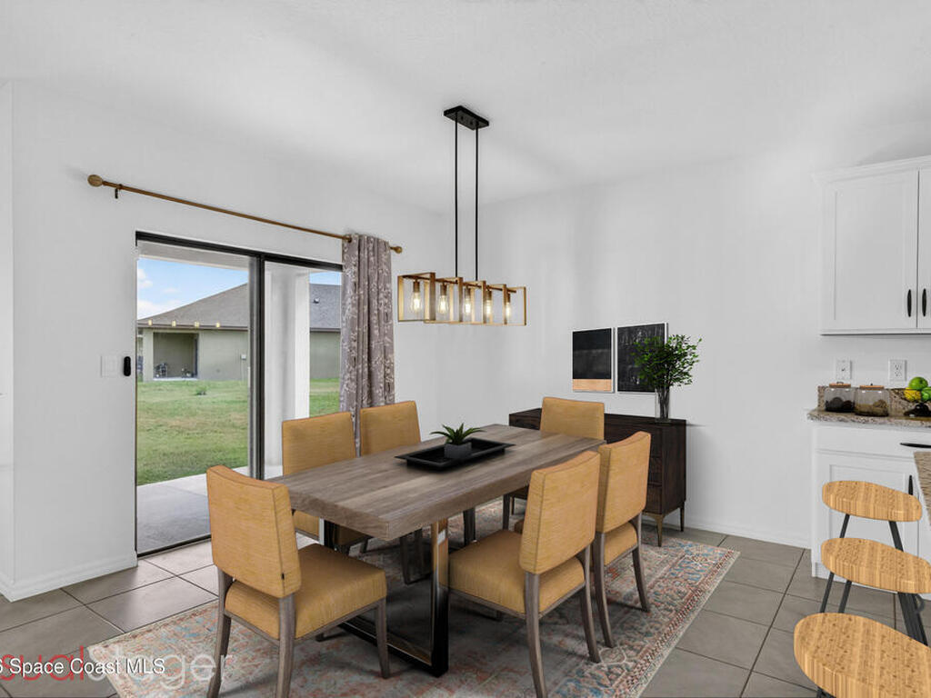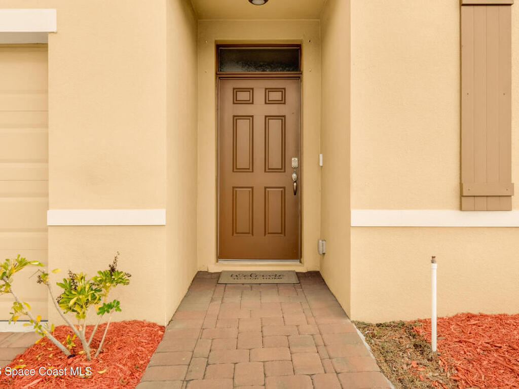 Don't wait for new construction to be completed. This 2023-built home is move-in ready. Offering 4 bedrooms and a thoughtfully designed split floorplan, the layout provides functional separation while maintaining an open flow between the kitchen, dining, and living areas. Natural light fills the space, and peaceful pond views can be enjoyed from the main living areas. The kitchen features upgraded finishes, including a newer sink, and overlooks the central gathering spaces. Neutral interior tones create a clean, move-in-ready environment. Located within a gated community in Southeast Palm Bay, residents have access to community amenities, including a pool and park area, all within a short distance from the home. Convenient access to major roadways, shopping, dining, and everyday services.