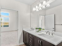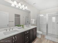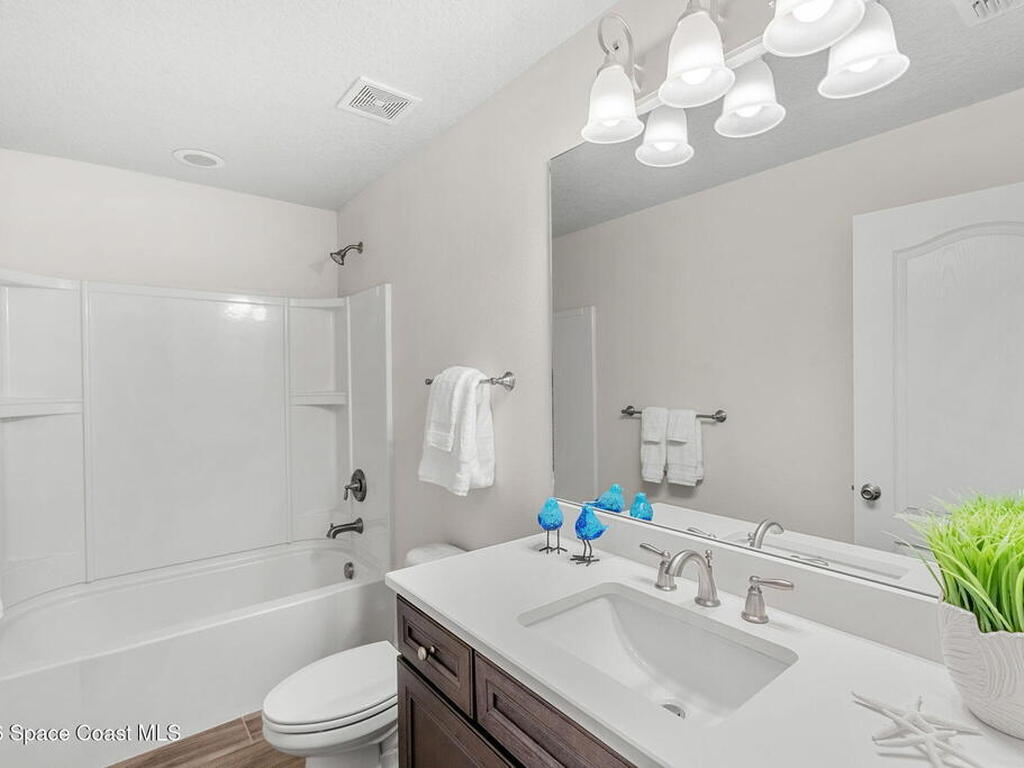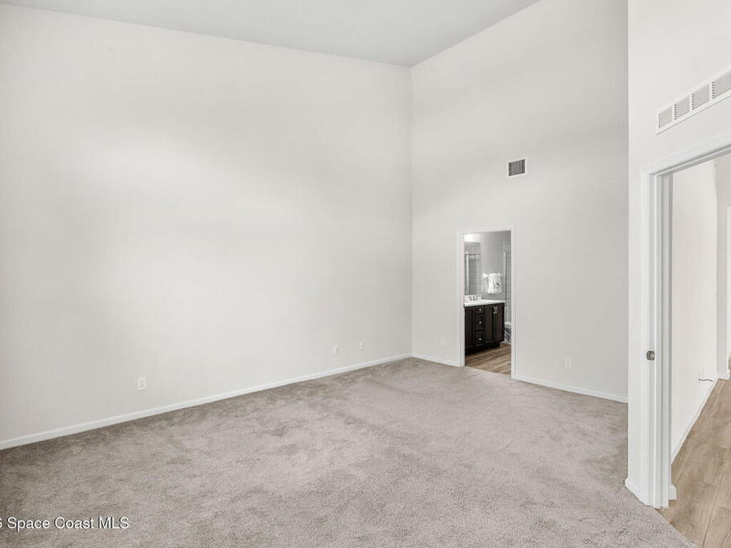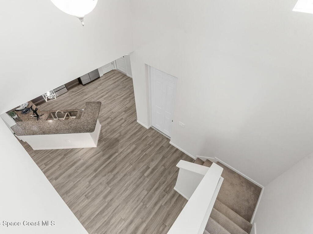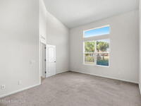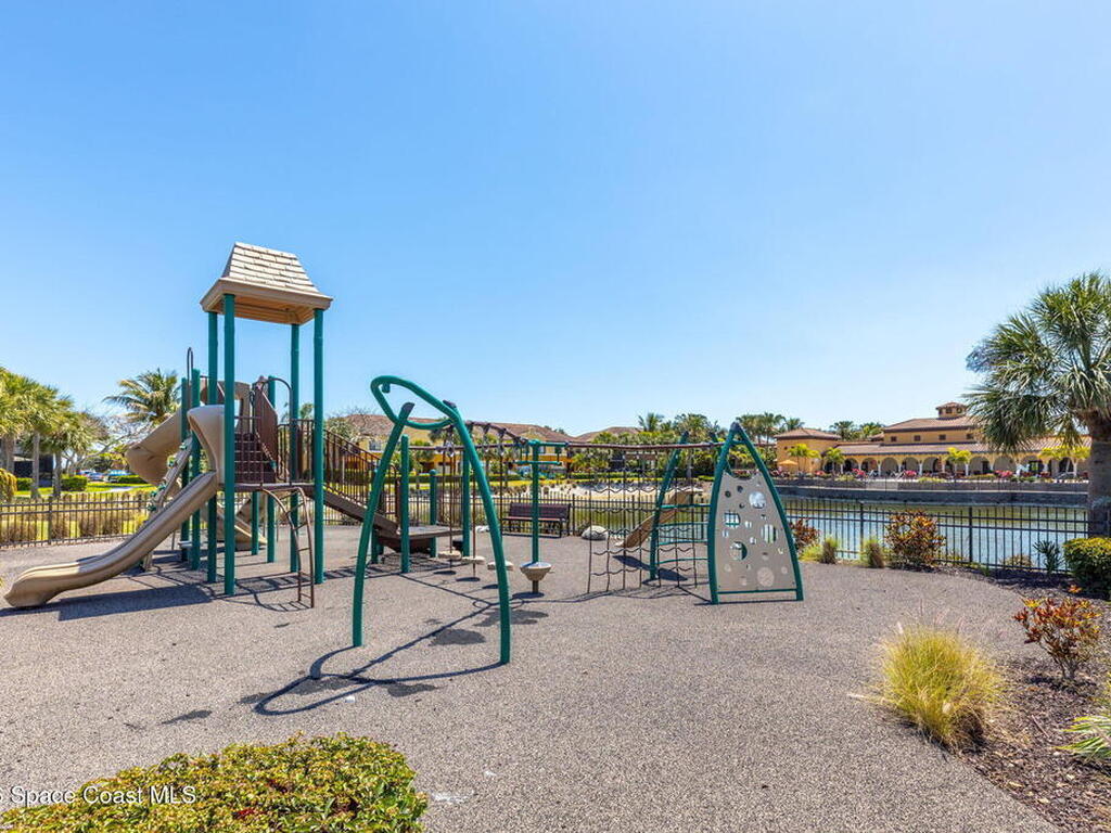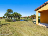 BIG lakefront, end-unit townhome in Montecito, Satellite Beach just steps to the ocean! Built in 2019 with a 4-foot full side extension, this extra-wide home offers over 2, 400 SF of bright, open living space with soaring vaulted ceilings. First-floor primary suite features lake views, vaulted ceiling, double vanities, and a walk-in shower. Upstairs includes 2 bedrooms and a HUGE loft. Enjoy a 2-car garage, downstairs laundry, powder room, and abundant storage. Wood-look tile floors, gorgeous kitchen, and open-concept design make this home impressive. Interior freshly painted. Covered porch overlooking the lake. Montecito is a Mediterranean-inspired seaside community w/ resort-style amenities: clubhouse, pool, fitness center, playground. Golf cart to nearby public beach access, restaurants, Publix, and the Indian River. Minutes to Costco, Trader Joe's, top schools, Pineda Cswy, and I-95. Close to Northrop Grumman, L3Harris, KSC, Blue Origin, SpaceX. LOW HOA:$239/quarter! Move right in!